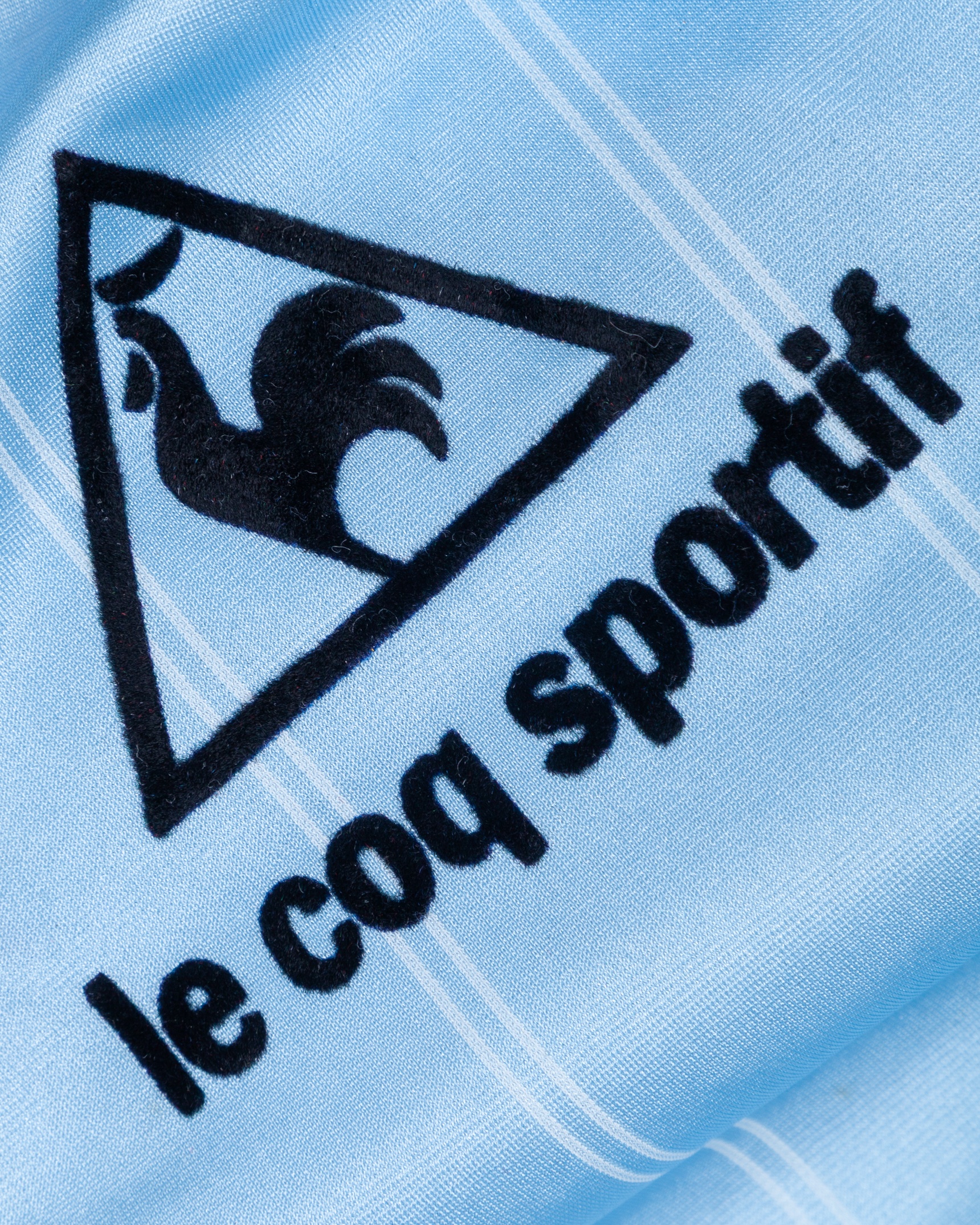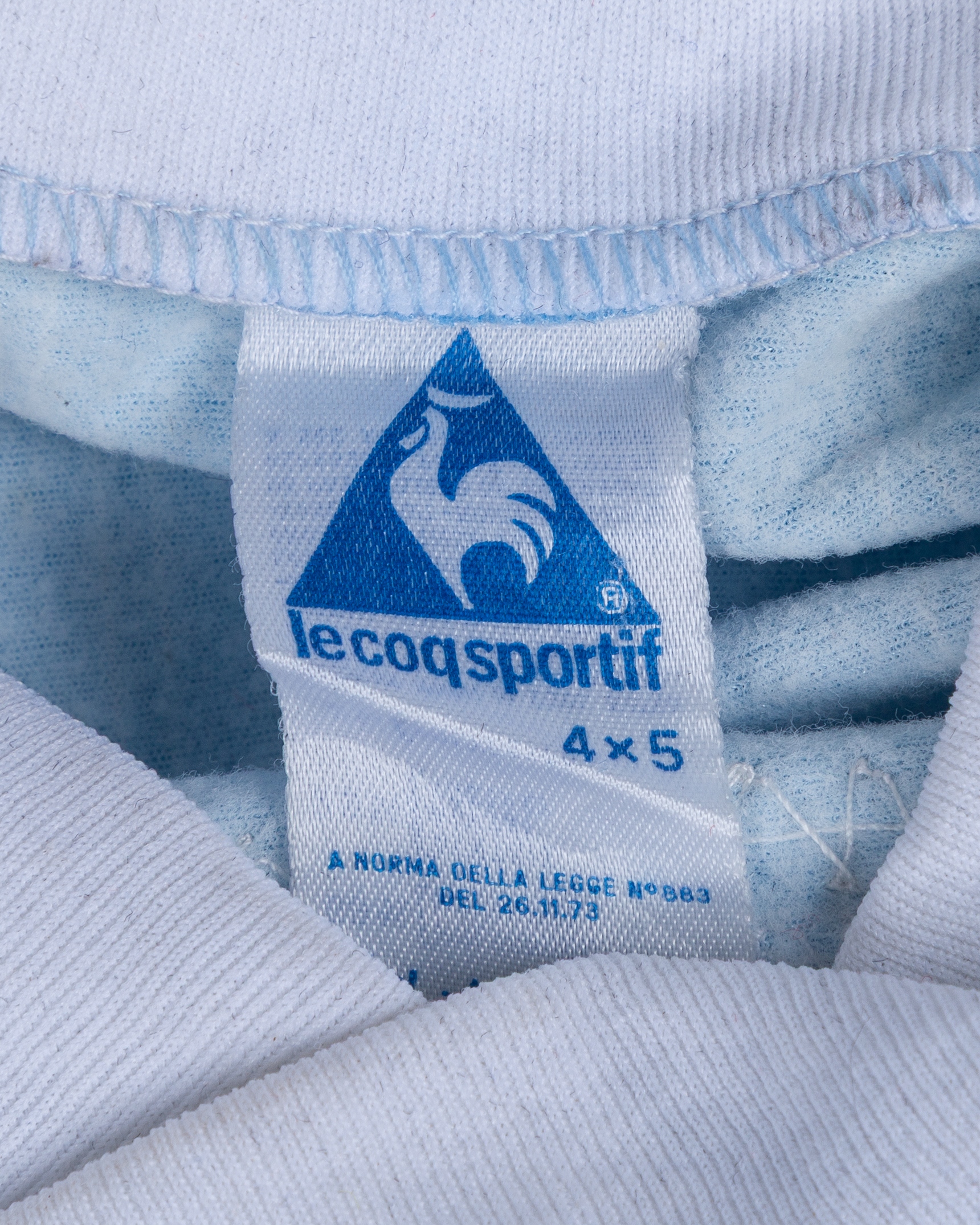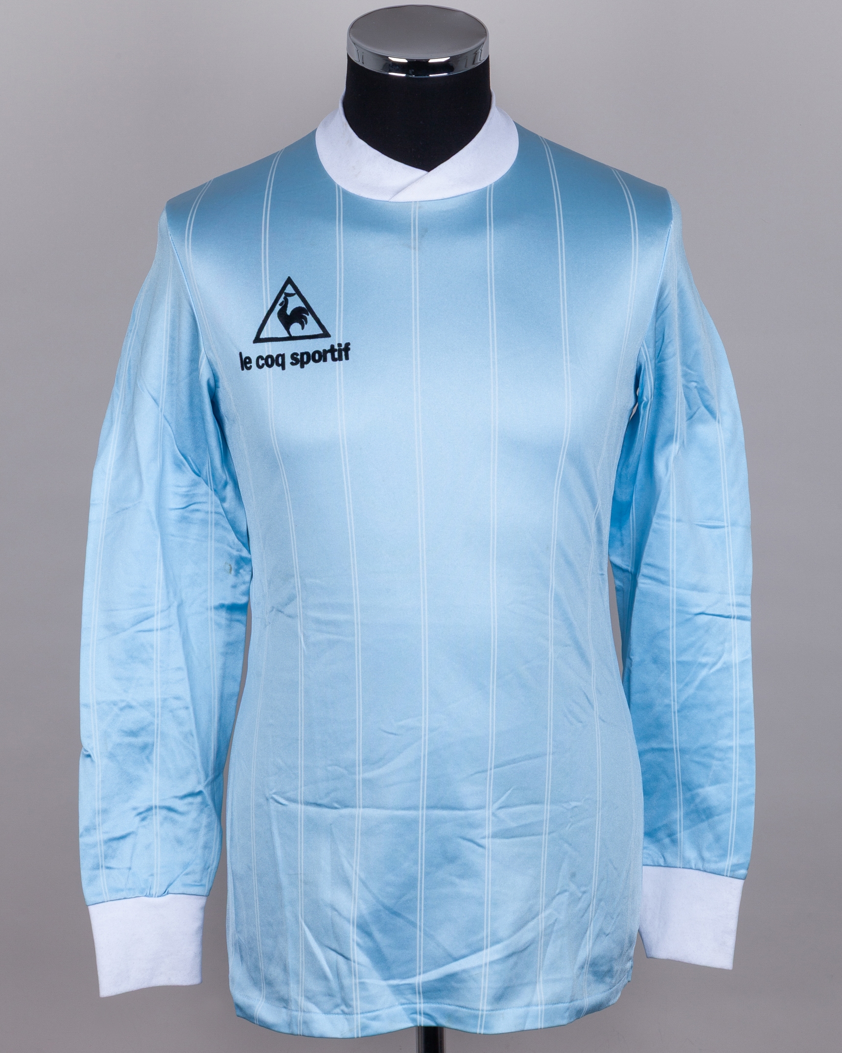 Sky blue and white No.19 Uruguay v. England long-sleeved shirt, 1984, Le Coq Sportif, with v-neck collar