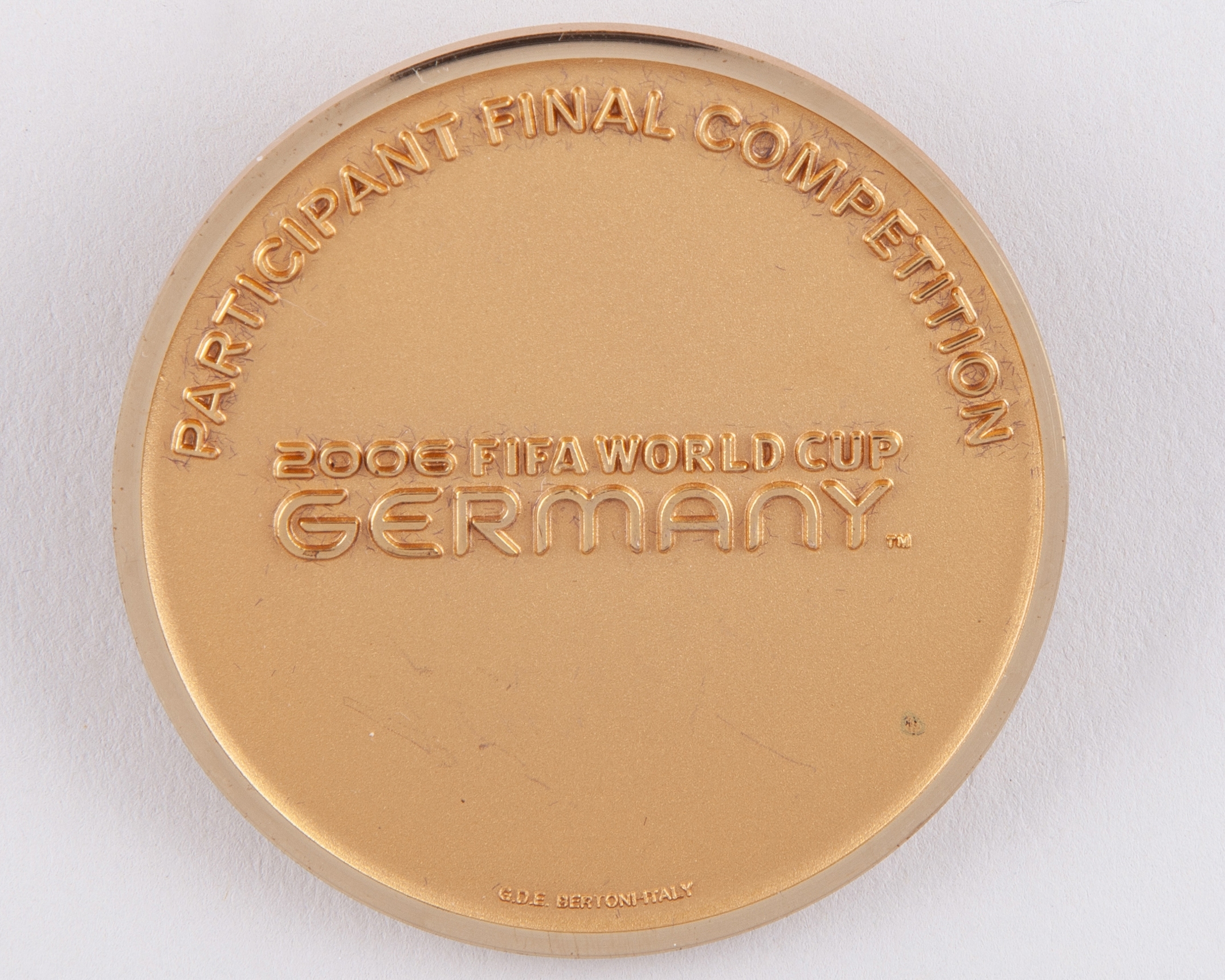 Sammy Lee gilt-metal, 2006 World Cup Participant medal, the obverse with the World Cup trophy, the reverse inscribed 2006 FIFA WORLD CUP, GERMANY, PARTICIPANT FINAL COMPETITION, in original fitted case