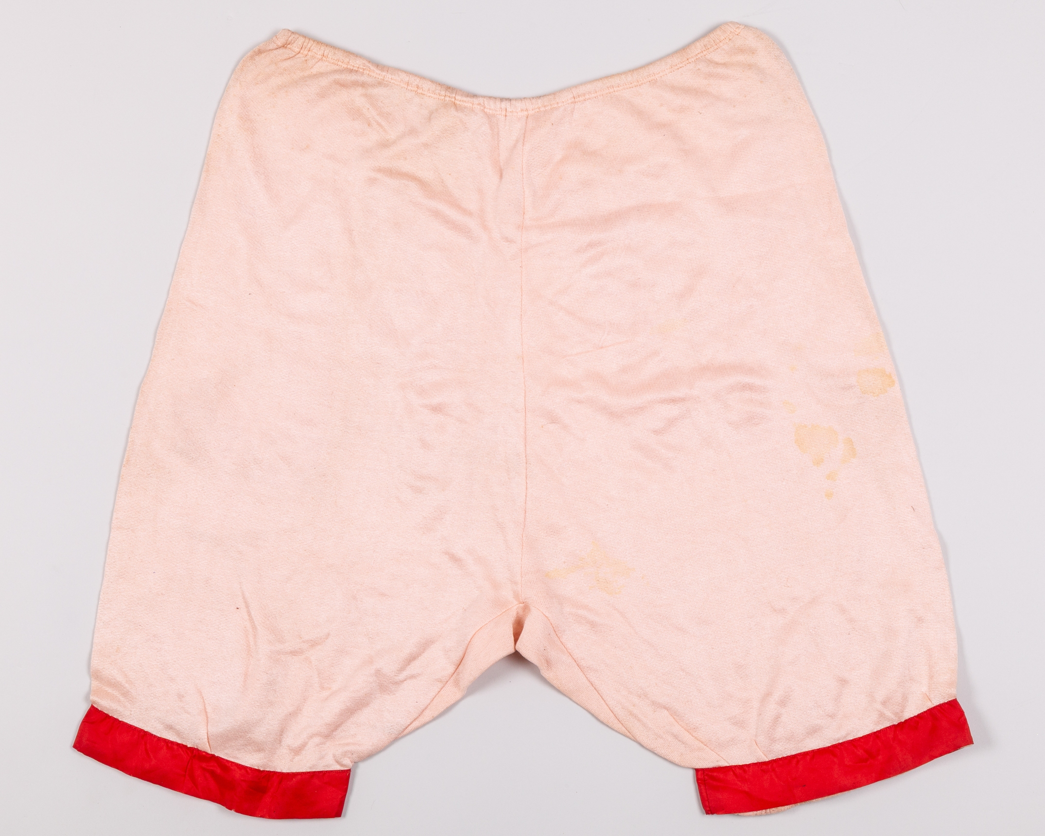 Billy Walker a pair of commemorative Nottingham Forest 1959 F.A.Cup shorts, inscribed NFFC, with rosettes, colour run
