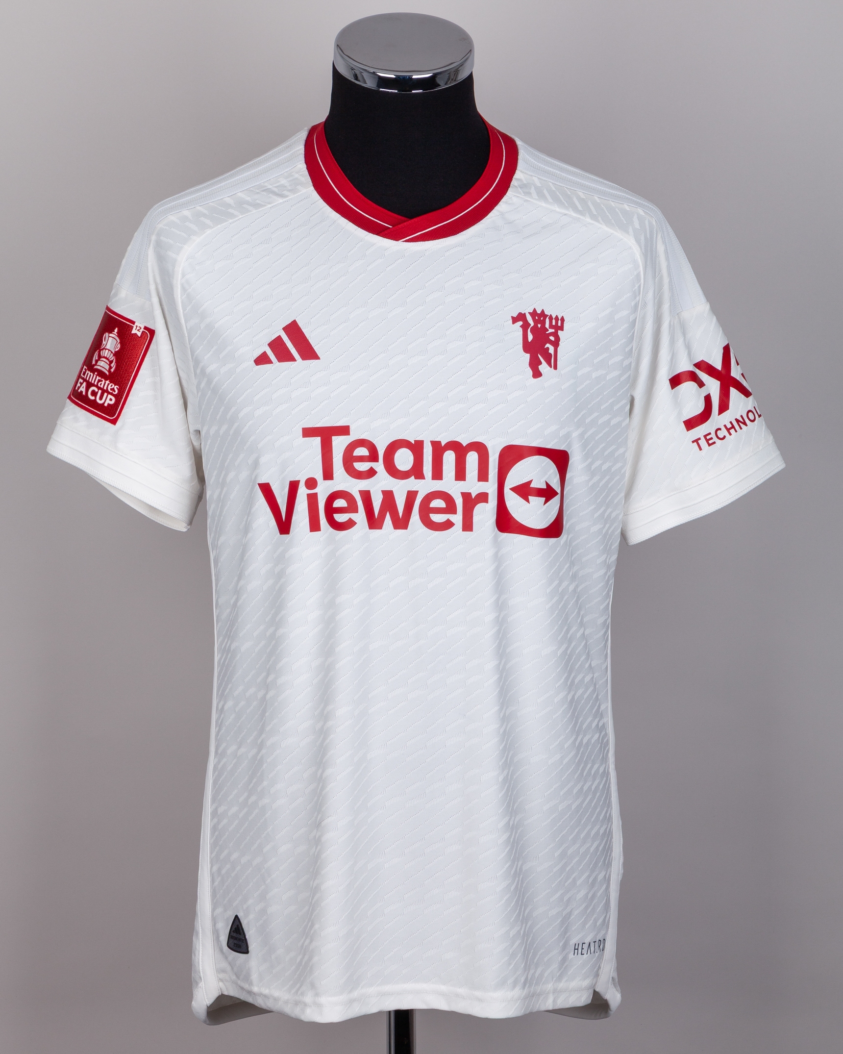 The shirt was issued to Hojlund for the F.A.Cup 4th round match against Newport County played on 28th January 2024, United defeating Newport 4-2