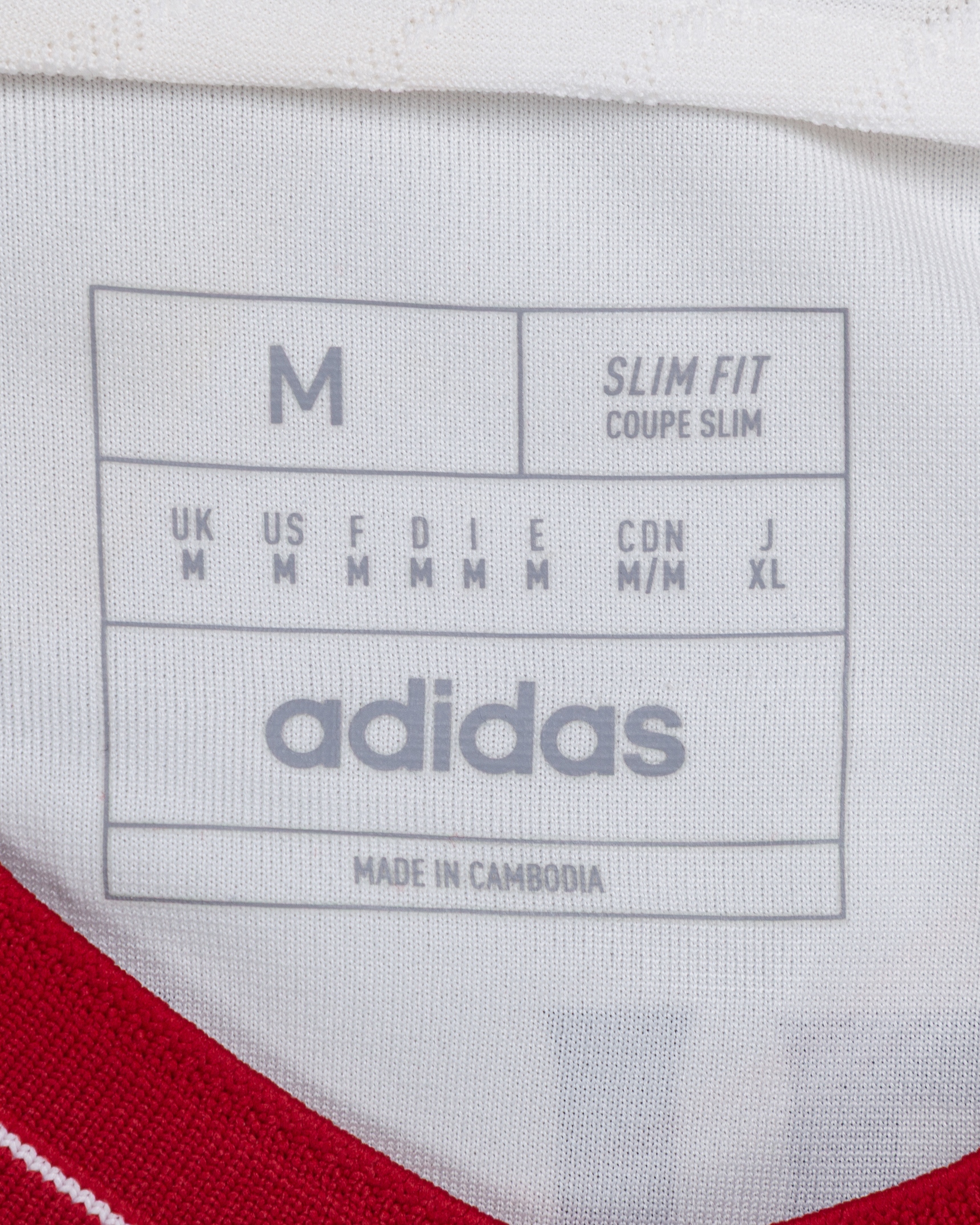 Rasmus Hojlund white and red No.11 Manchester United v. Newport County match issued short-sleeved shirt, 2024, Adidas, M, with crew-neck collar and printed badge, the reverse lettered HOJLUND, the right sleeve with Emirates FA CUP 12 flash