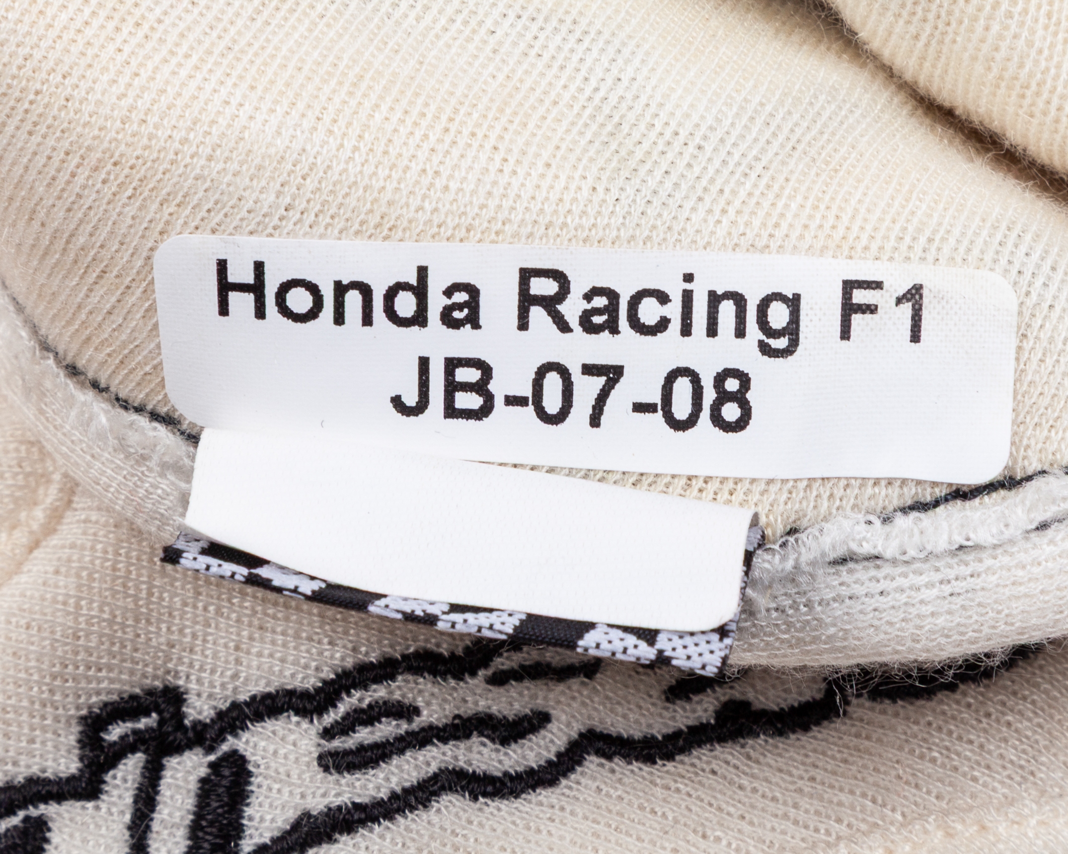 Both inside white labels on the gloves read: Honda Racing F1 / JB-07-08.