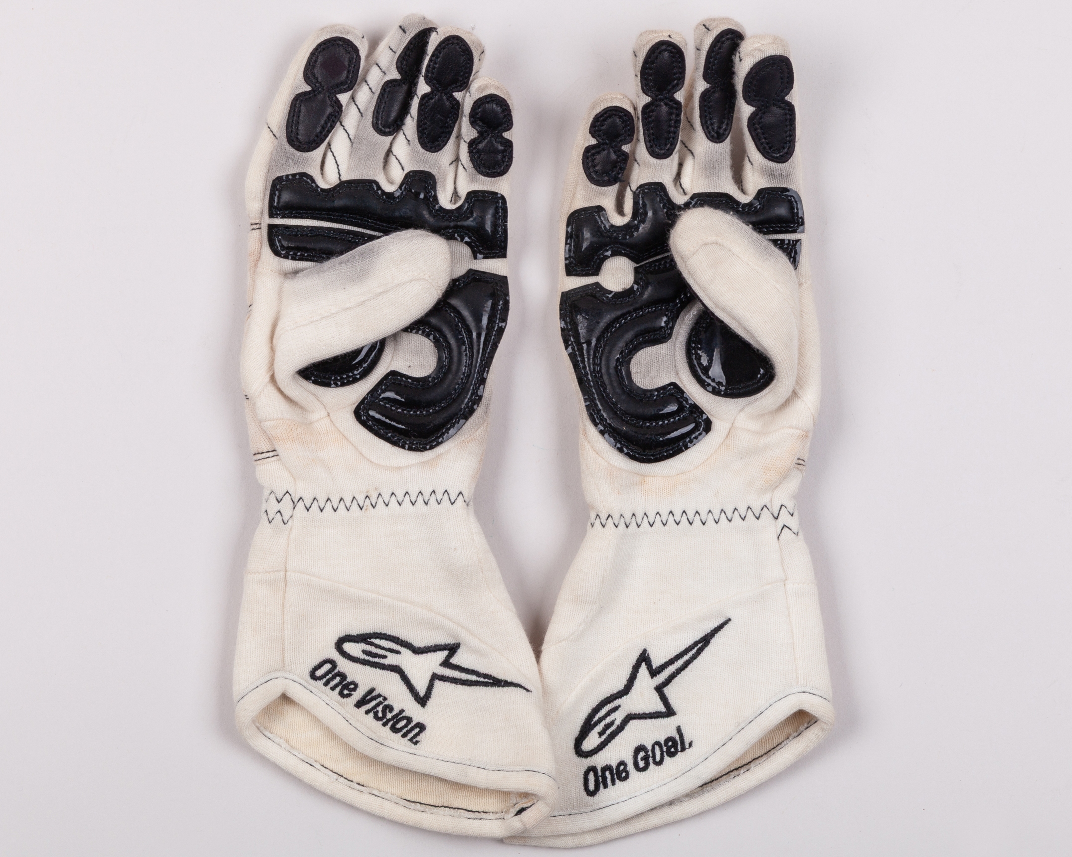 These pair of gloves have been worn by F1 World Champion, Jenson Button, during the 2008 Formula One season.