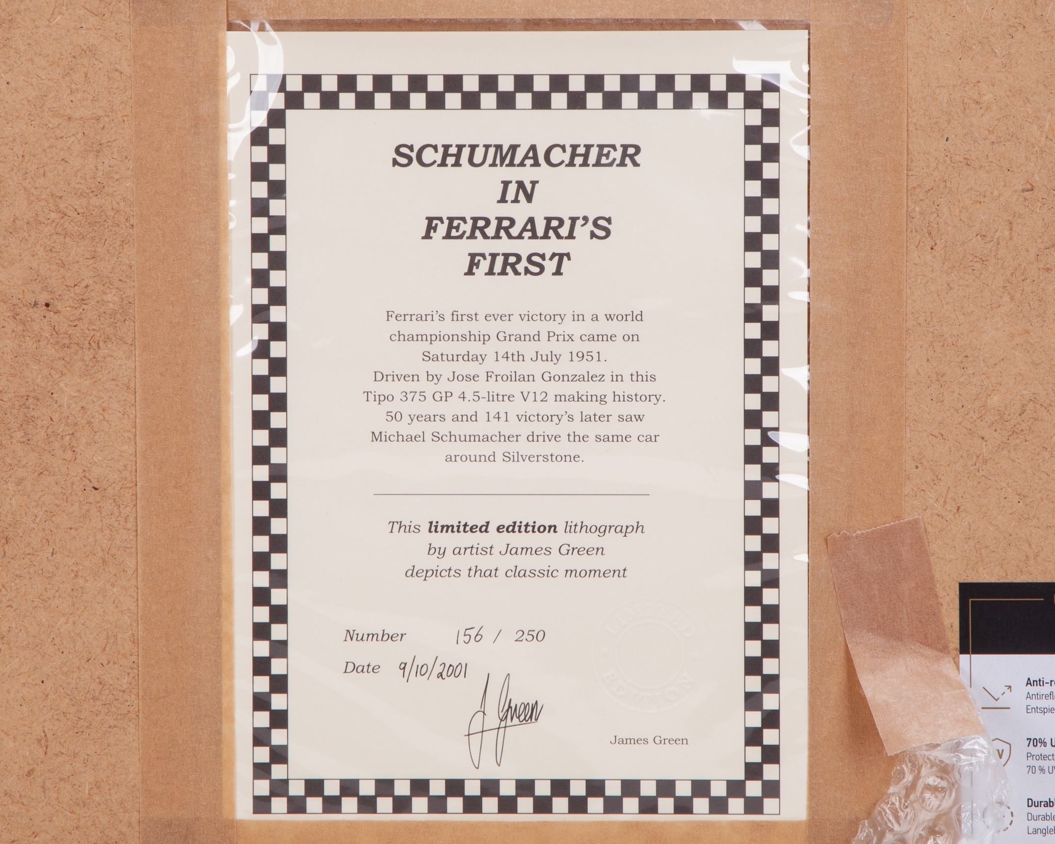 “Schumacher in Ferrari's First” by James Green - Framed Limited Edition Print.