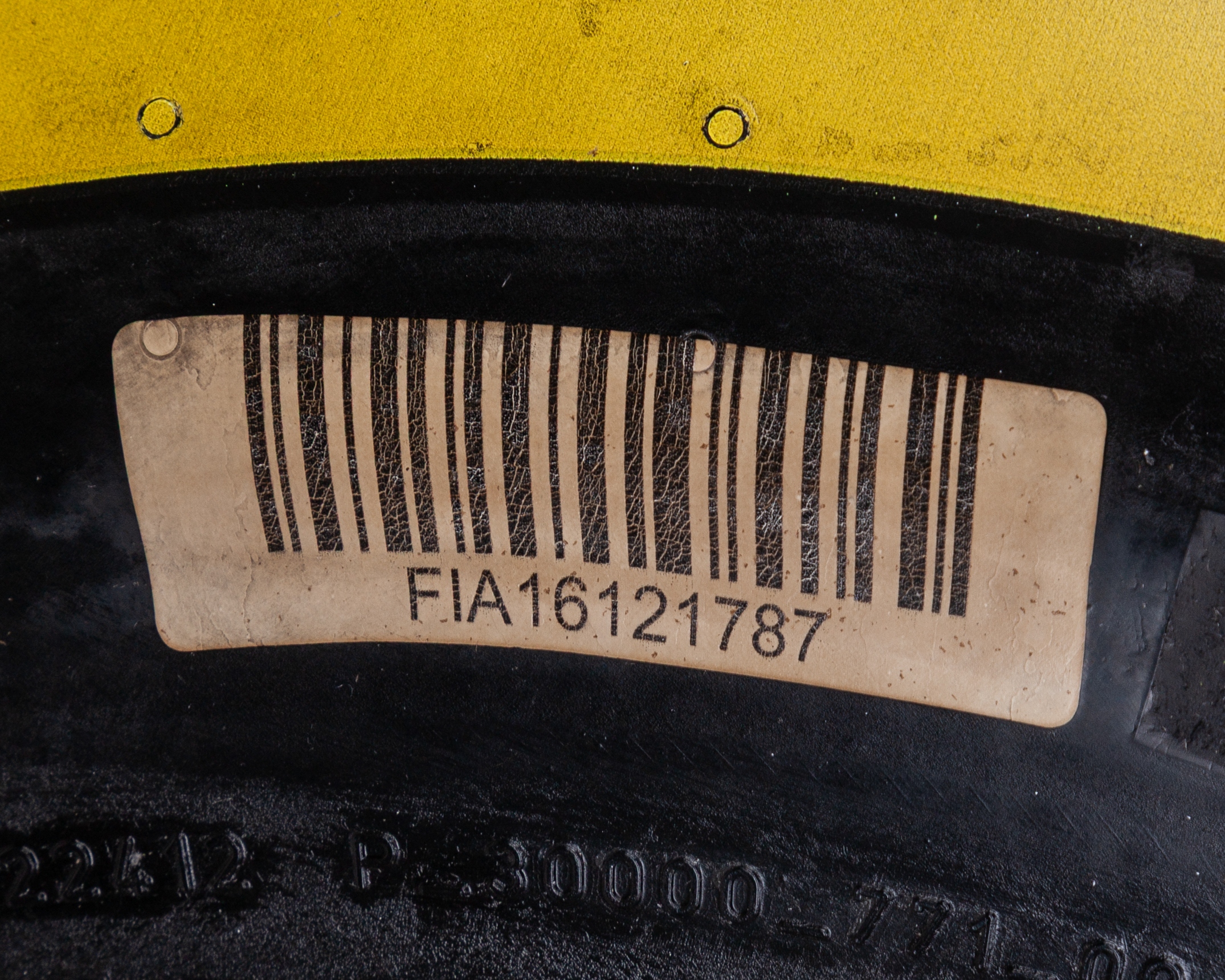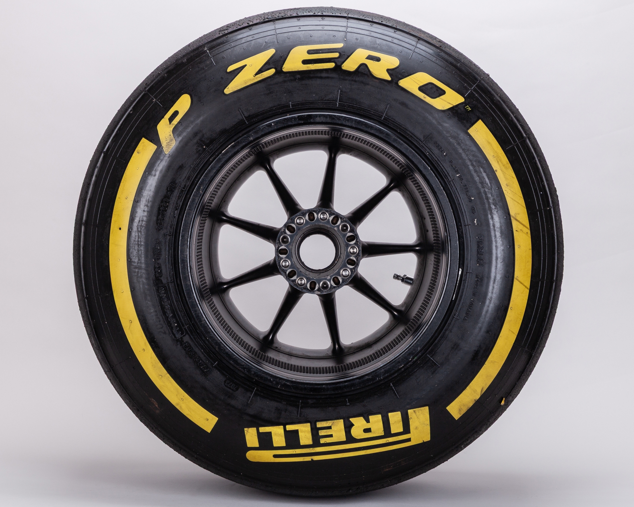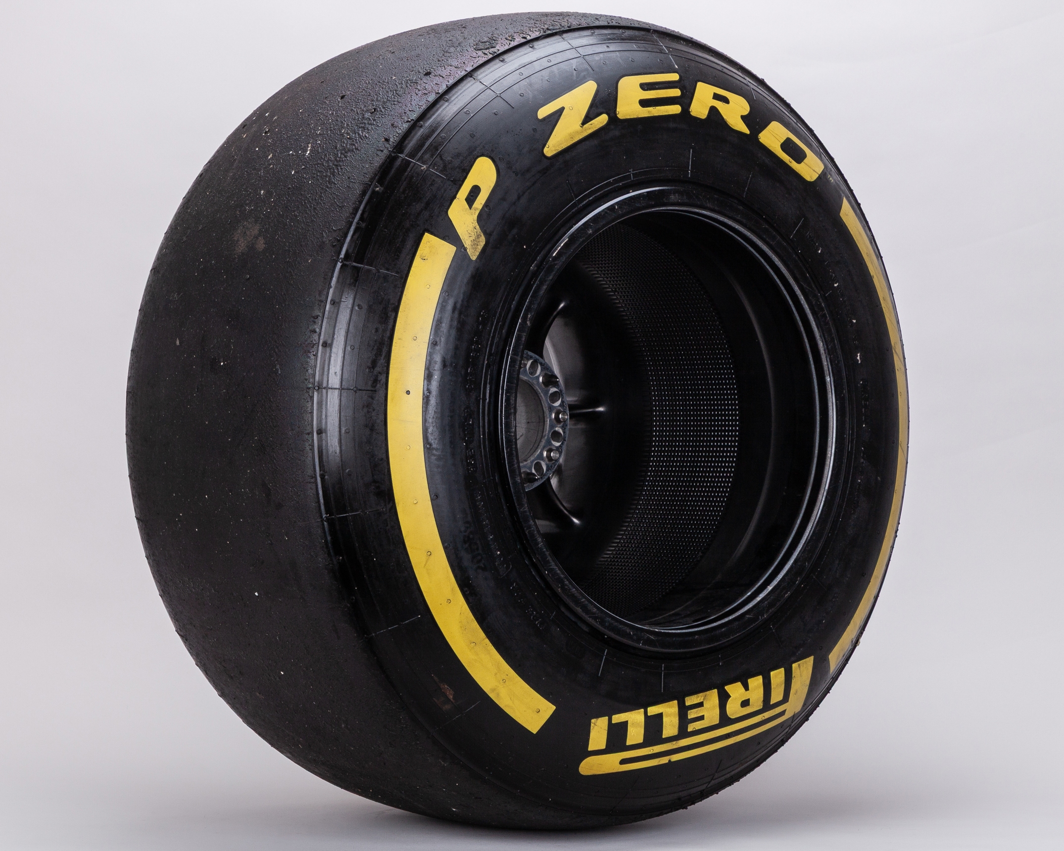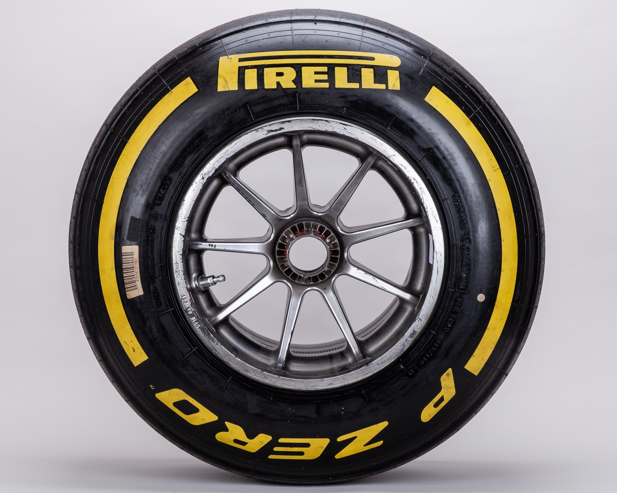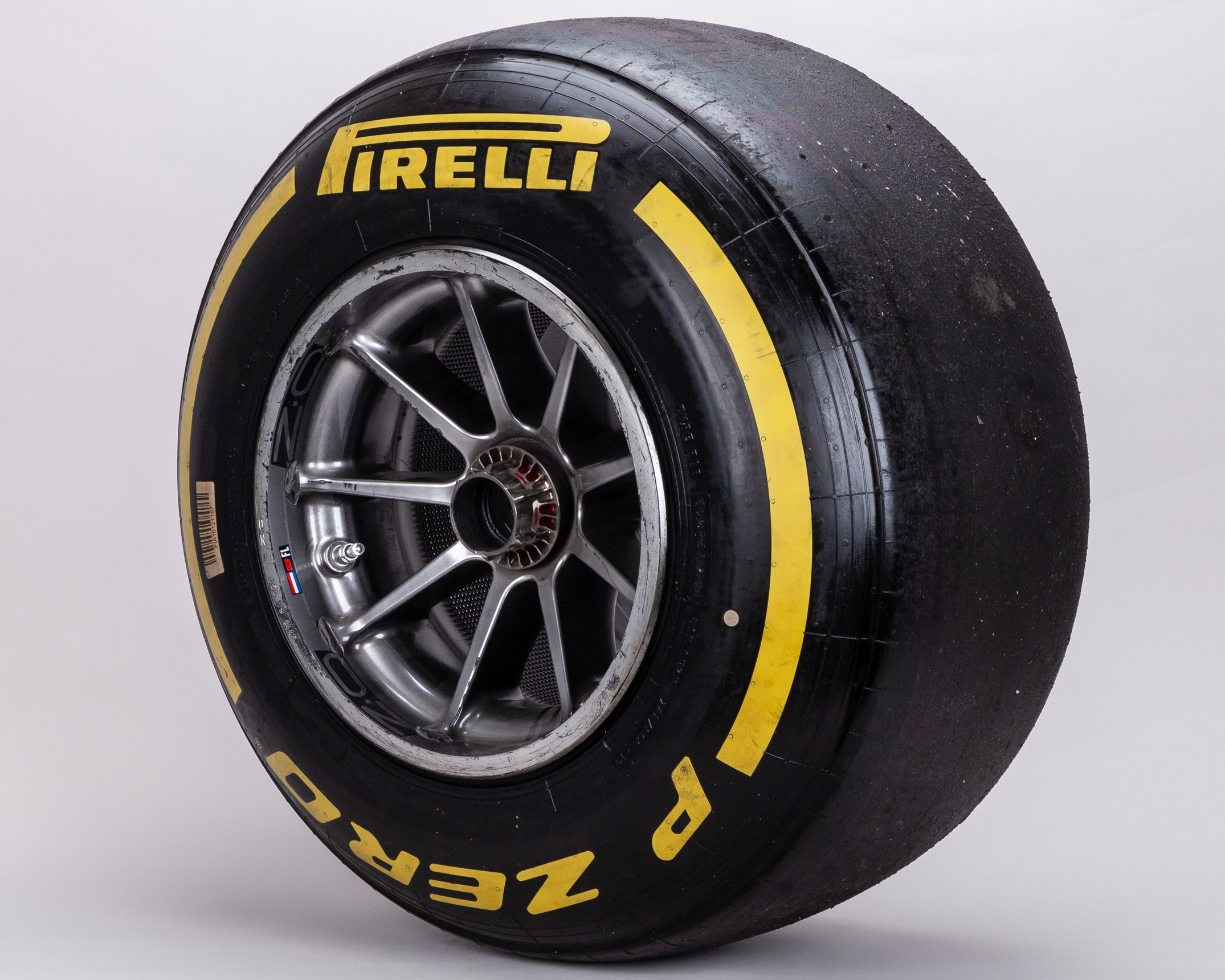 Manufactured by Pirelli. The FIA label on the tyre reads: FIA16121787.