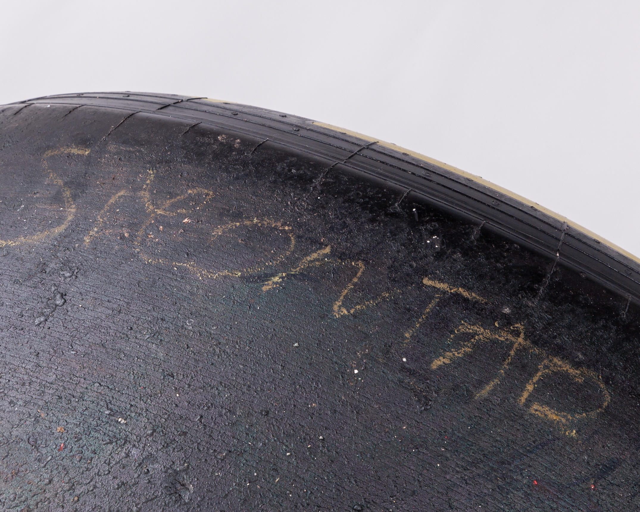 This is an authentic used wheel and tyre from Max Verstappen’s 2021 World Championship winning season with Red Bull Racing.