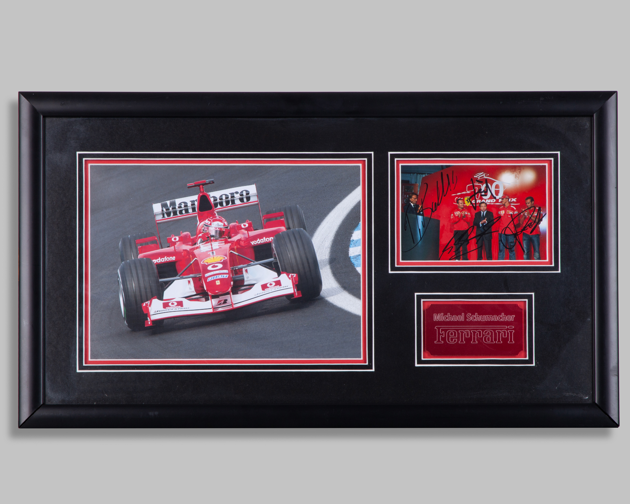 Michael Schumacher Signed Ferrari Framed Photo Display.