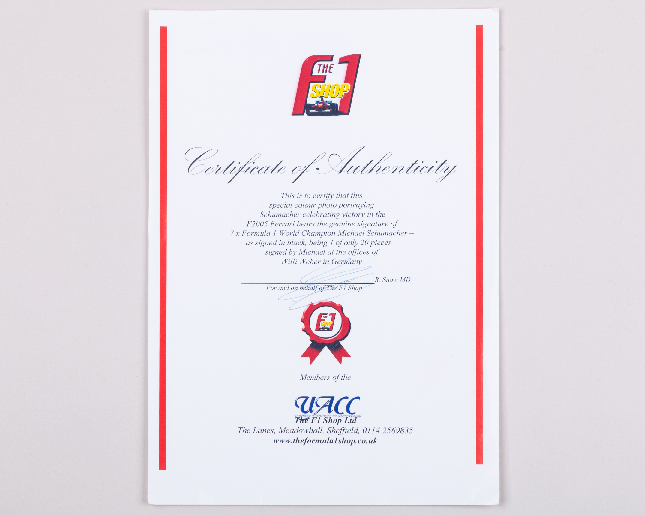 Michael Schumacher Signed Ferrari Framed Photo Display