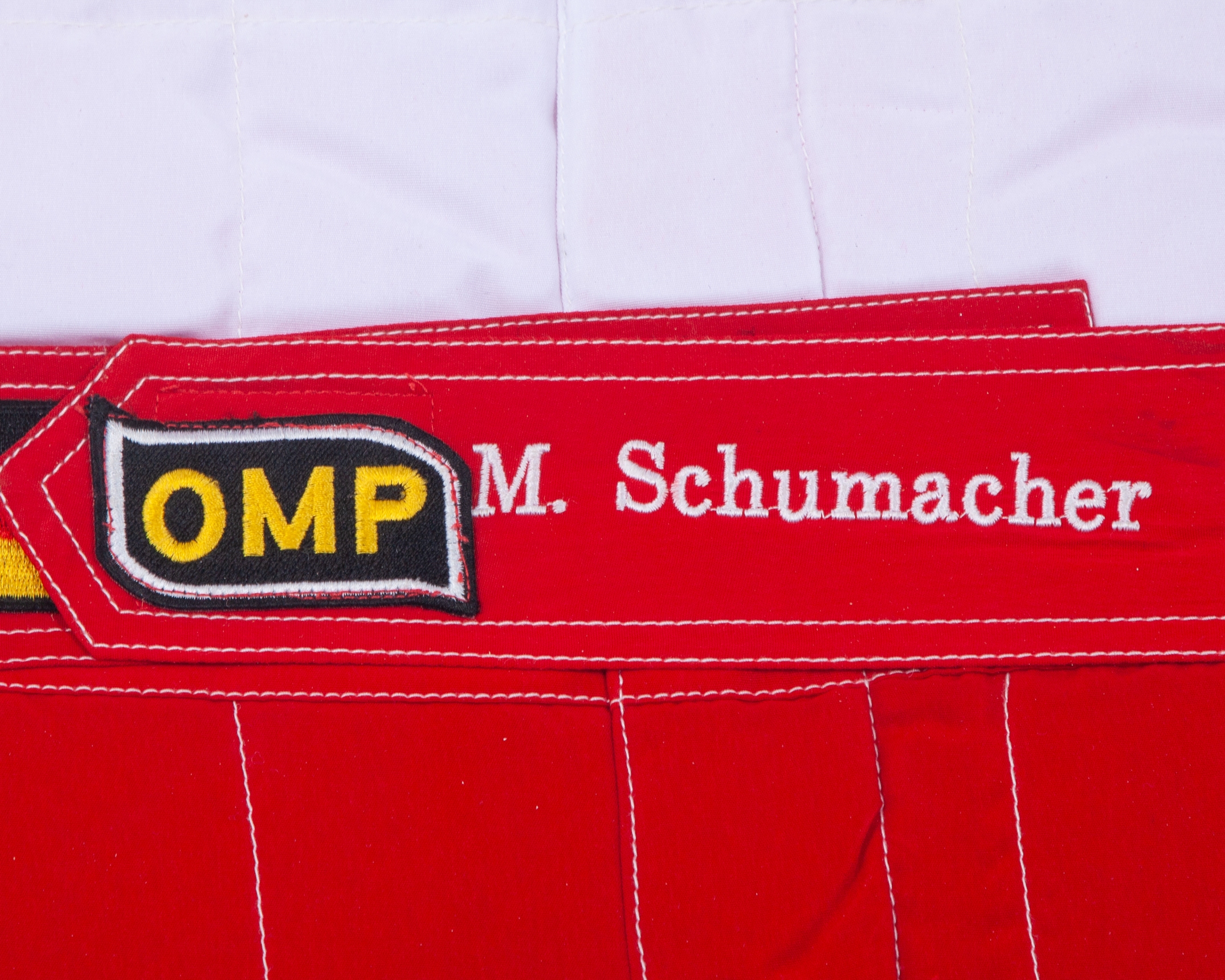 This Ferrari replica race suit celebrates the legendary career of Michael Schumacher, the 7-time Formula One World Champion and one of the most successful drivers in the history of the sport.
