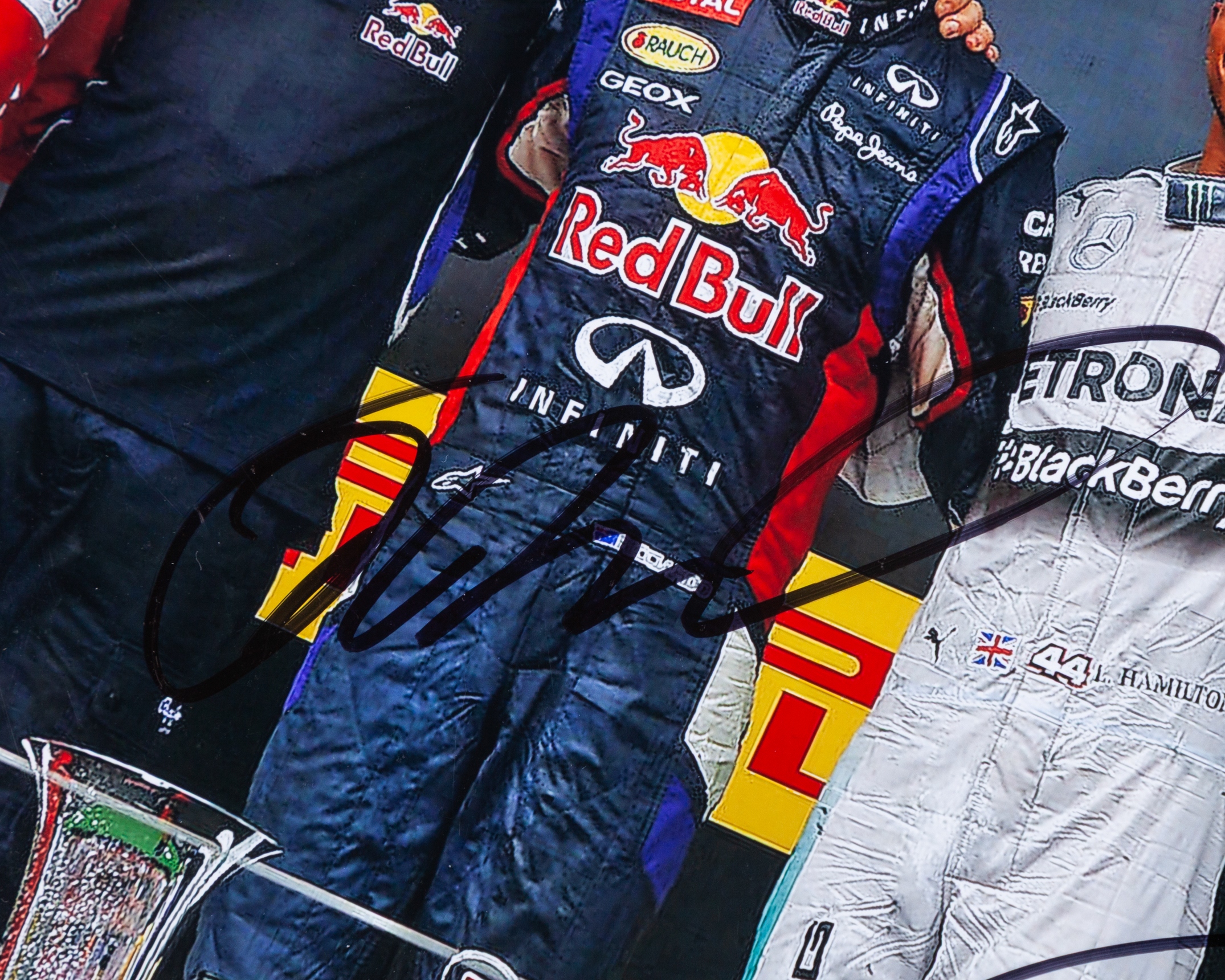 Lewis Hamilton, Fernando Alonso & Daniel Ricciardo Signed A4 Photo