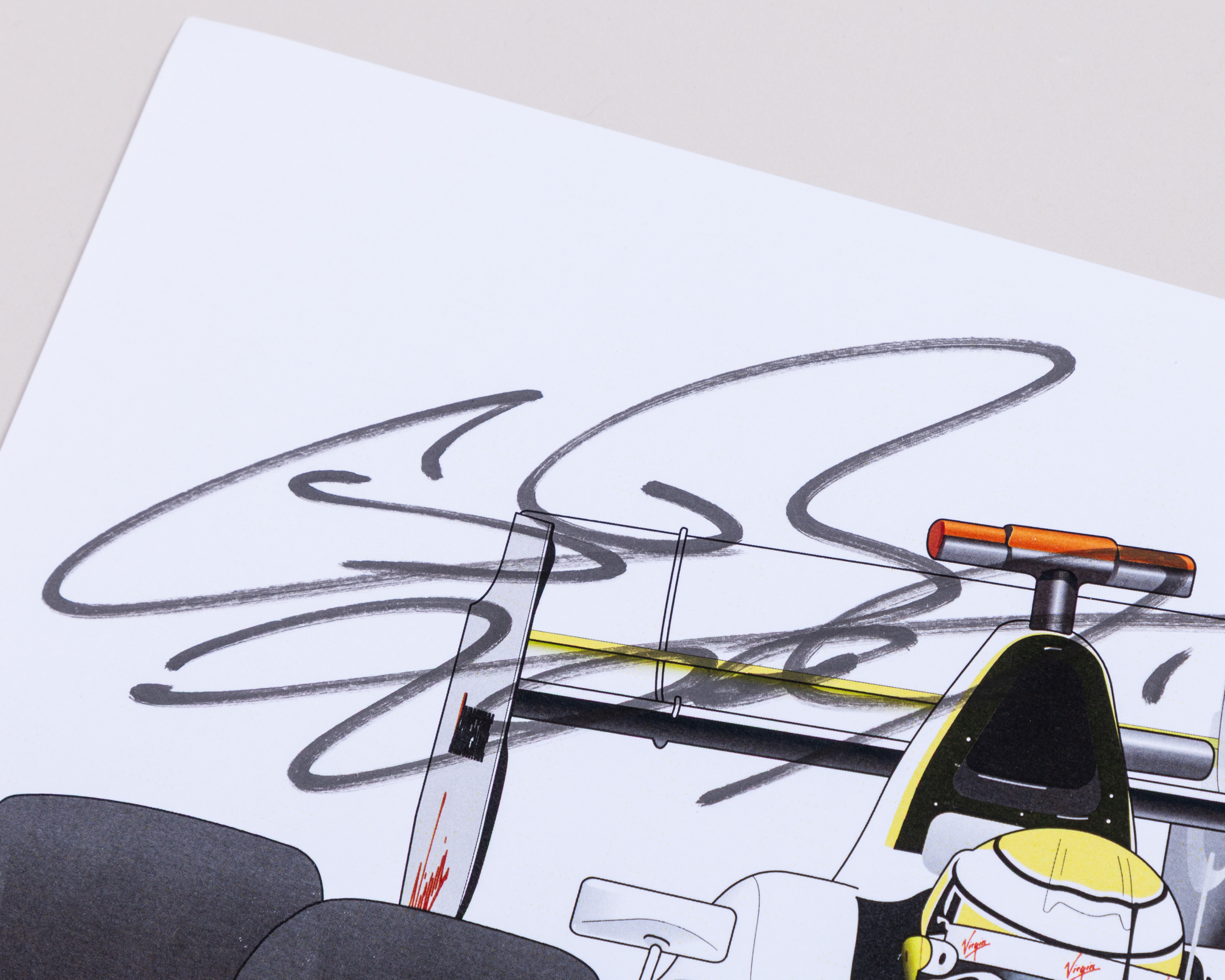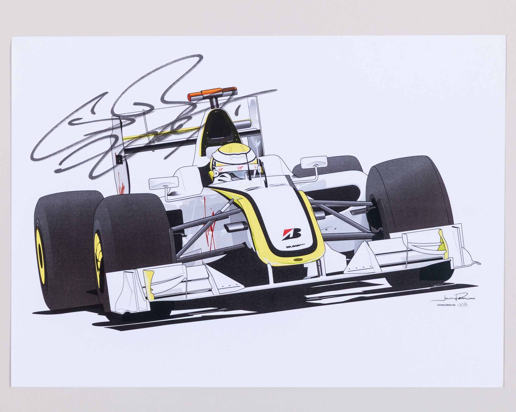 This A4 photo has been personally signed by the 2009 Formula One World Champion.