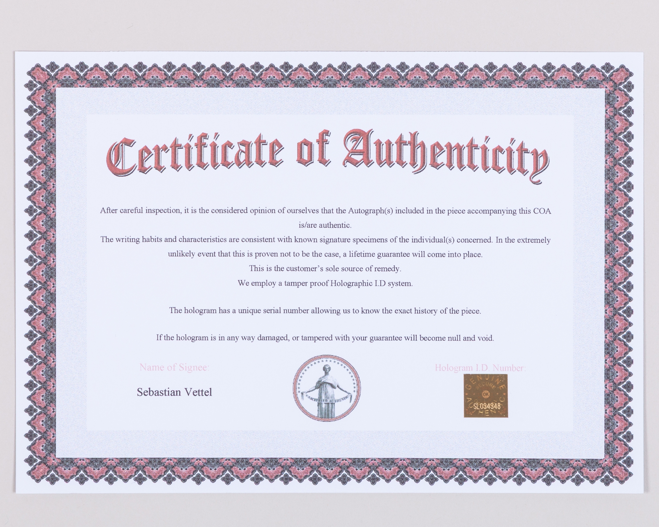 Complete with a certificate of authenticity.