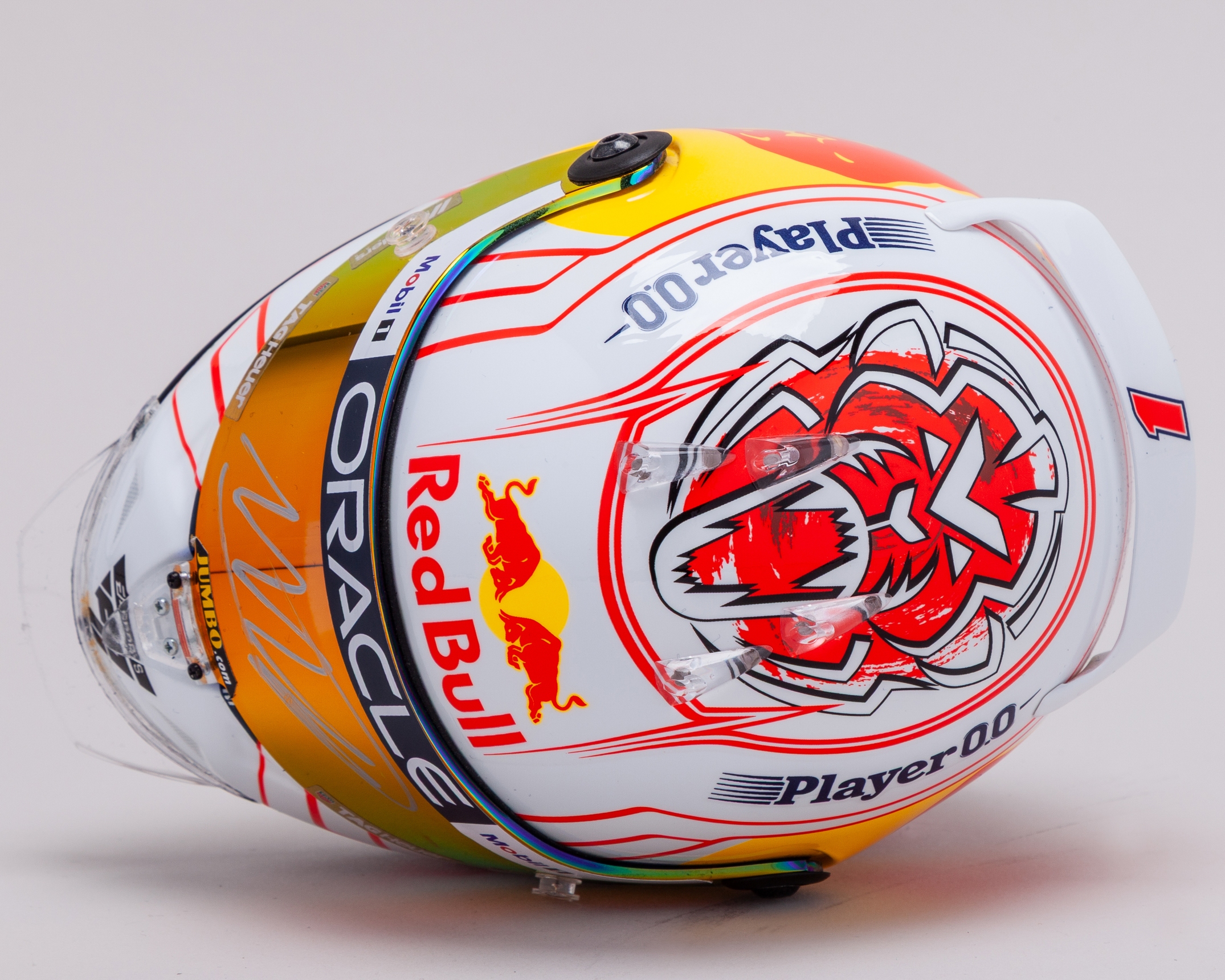 Max Verstappen 2023 Red Bull Racing Signed 1:2 Scale Schuberth Helmet – Japanese Grand Prix.