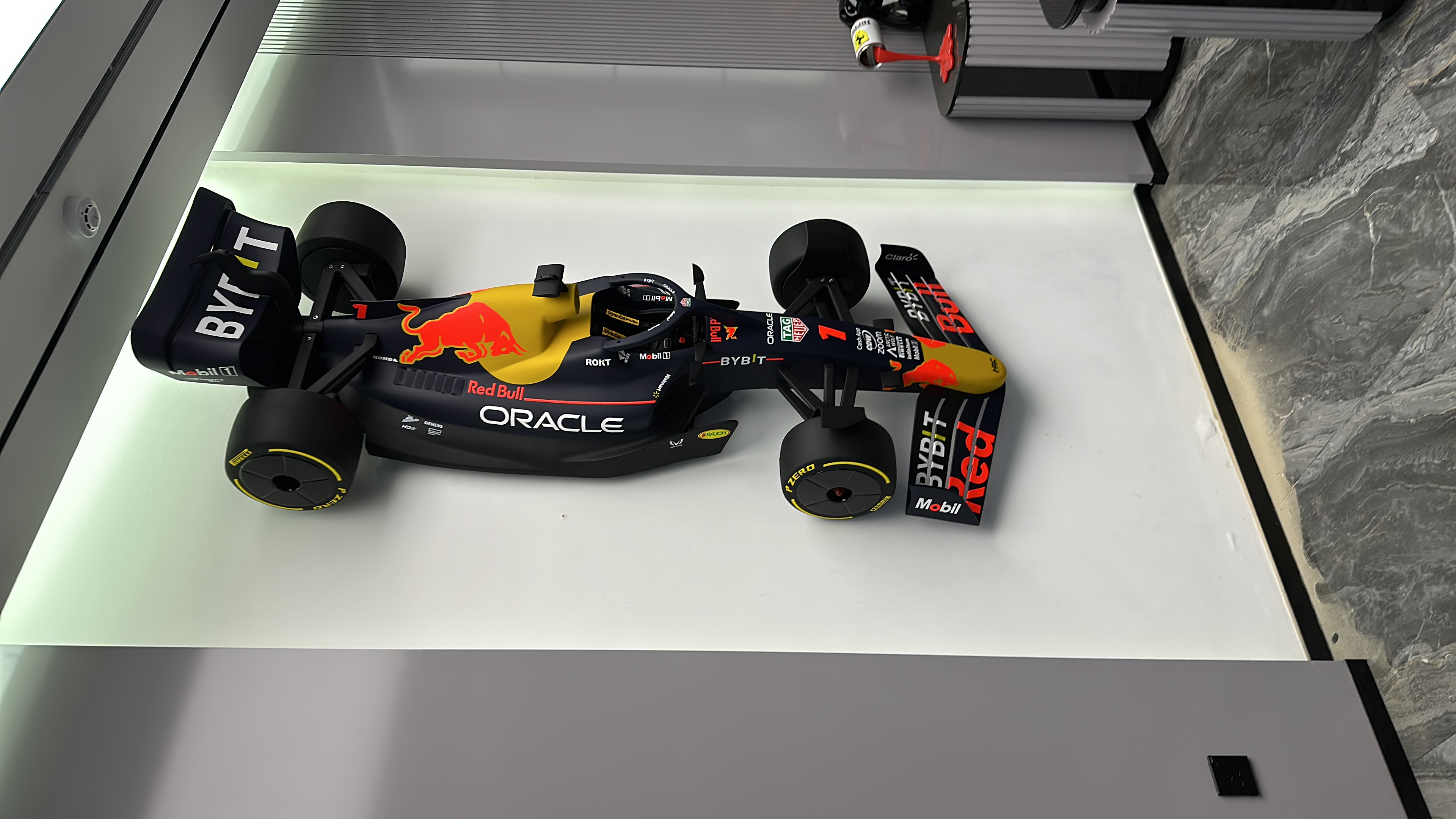 This half-scale sculpture celebrates Max Verstappen’s 2024 Red Bull Racing RB20 Championship Winning Season.