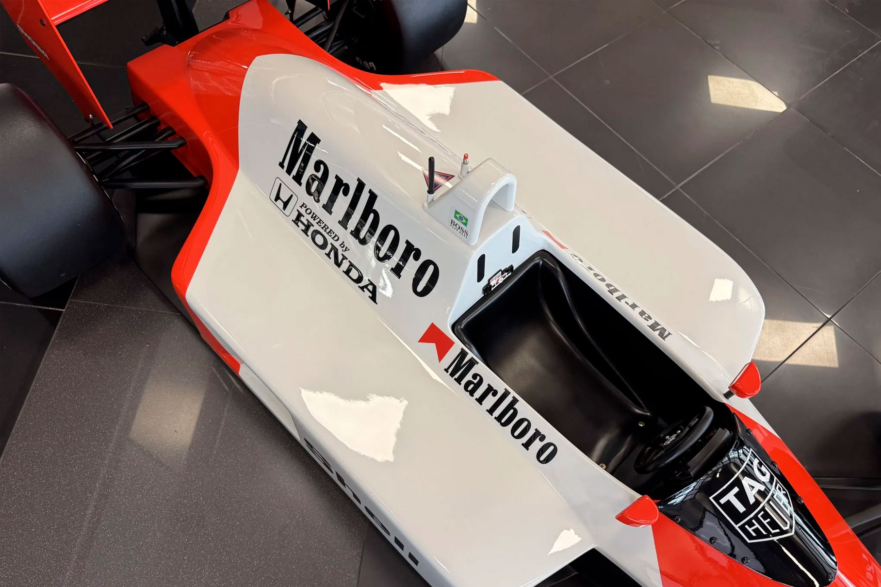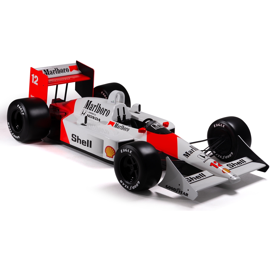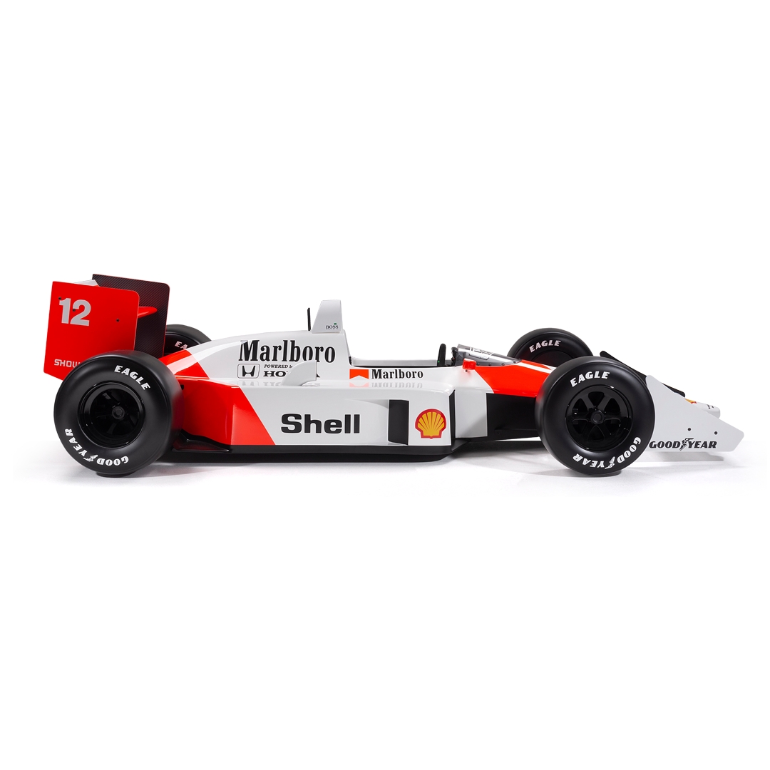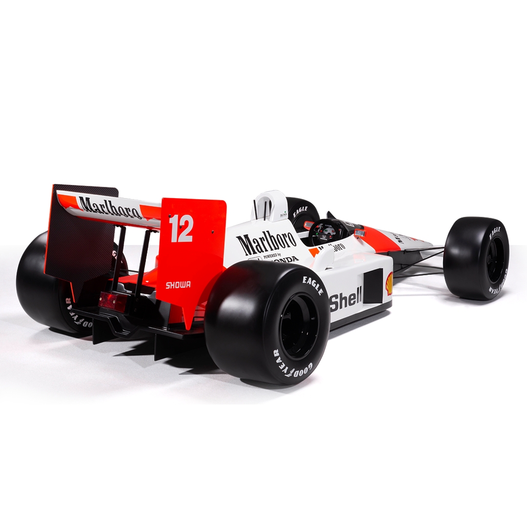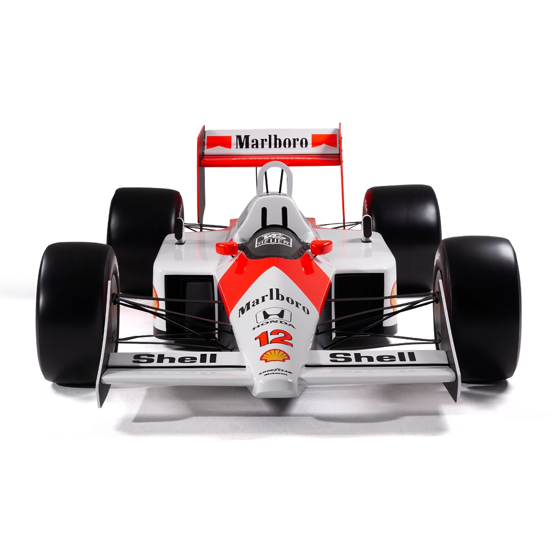 This half-scale sculpture celebrates Ayrton Senna’s legendary 1988 McLaren MP4/4. A car that defined an era and cemented Senna’s status as a Formula One great.