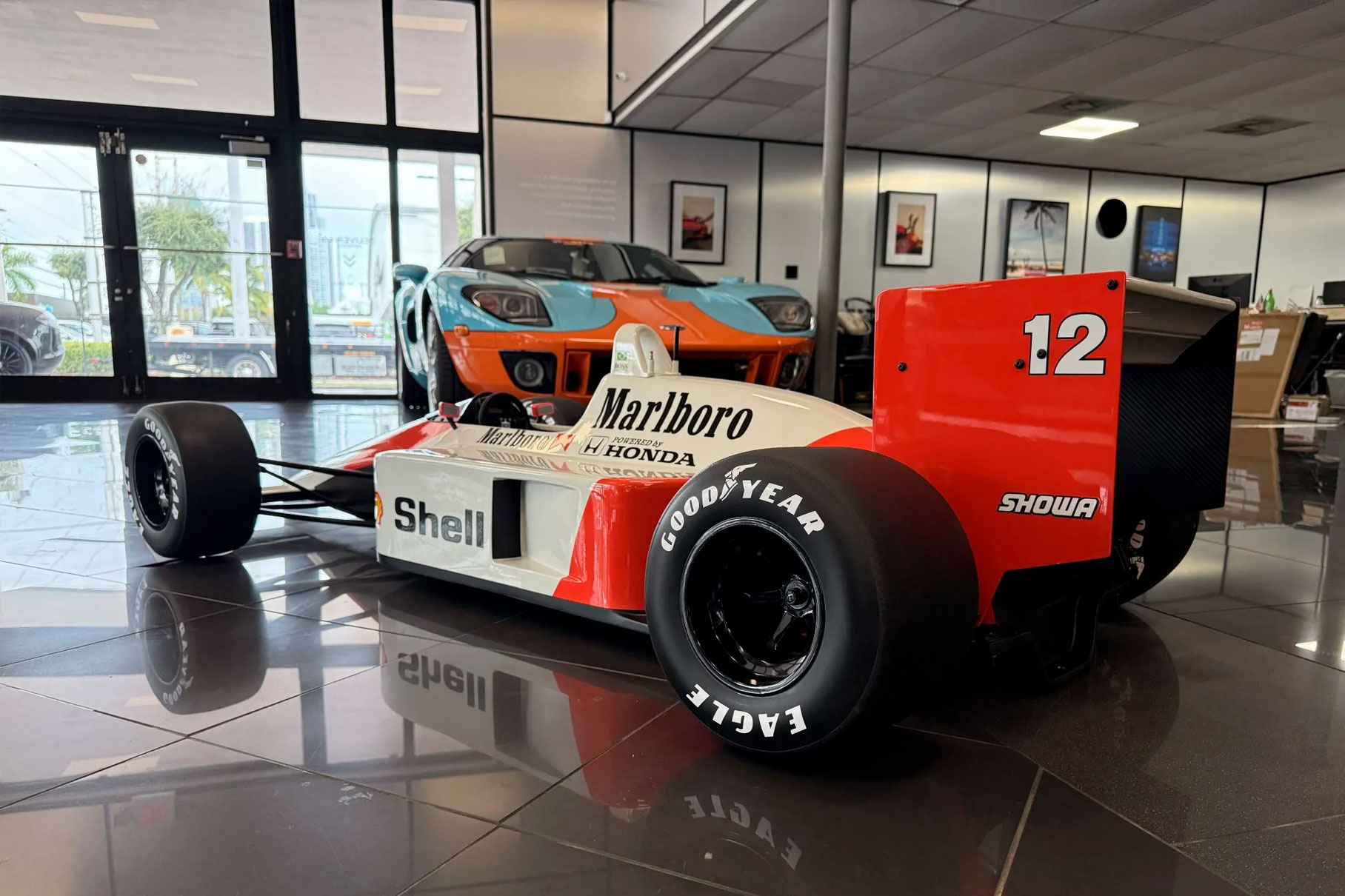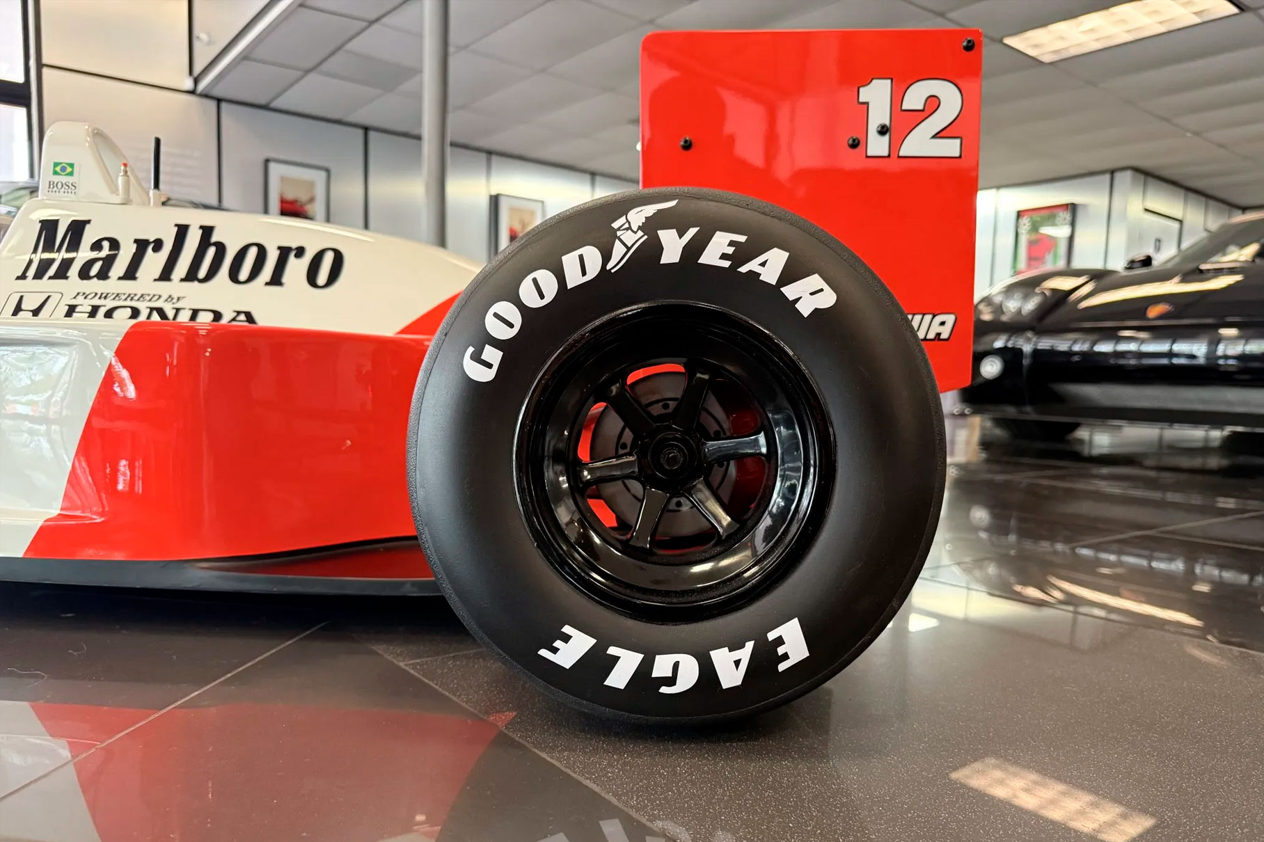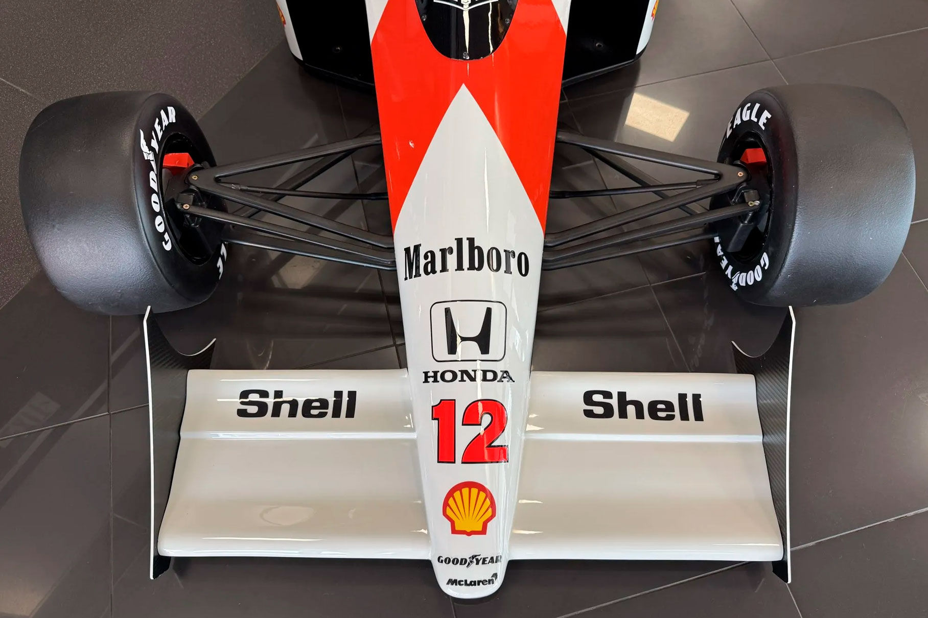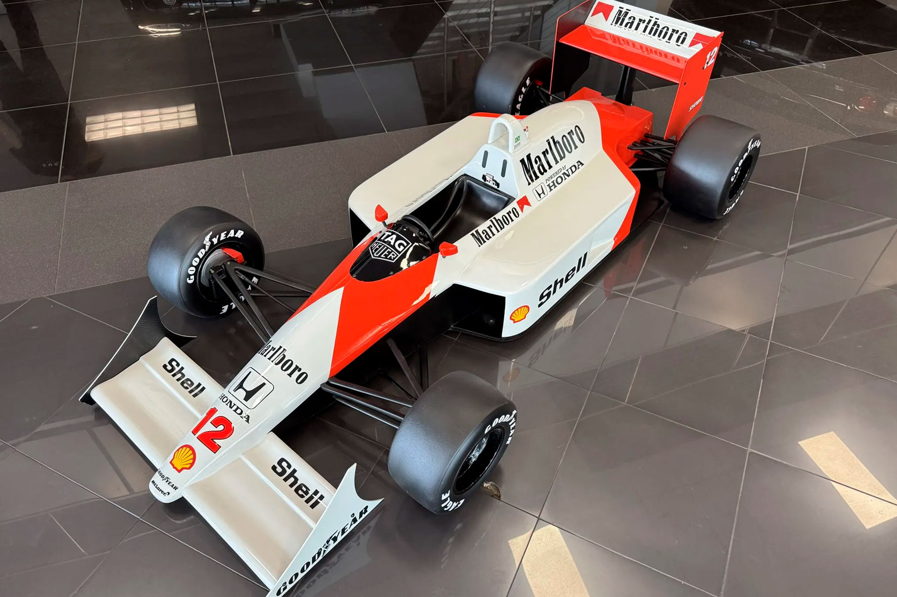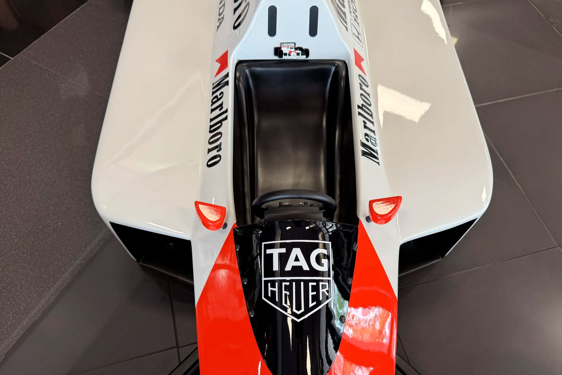 This half-scale sculpture celebrates Ayrton Senna’s legendary 1988 McLaren MP4/4. A car that defined an era and cemented Senna’s status as a Formula One great.