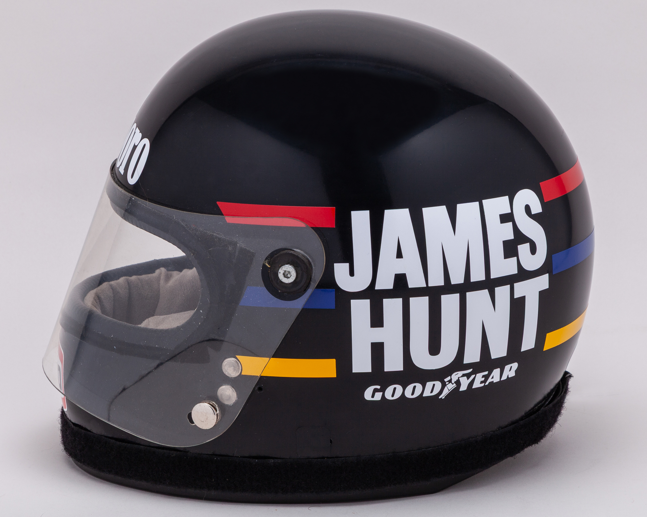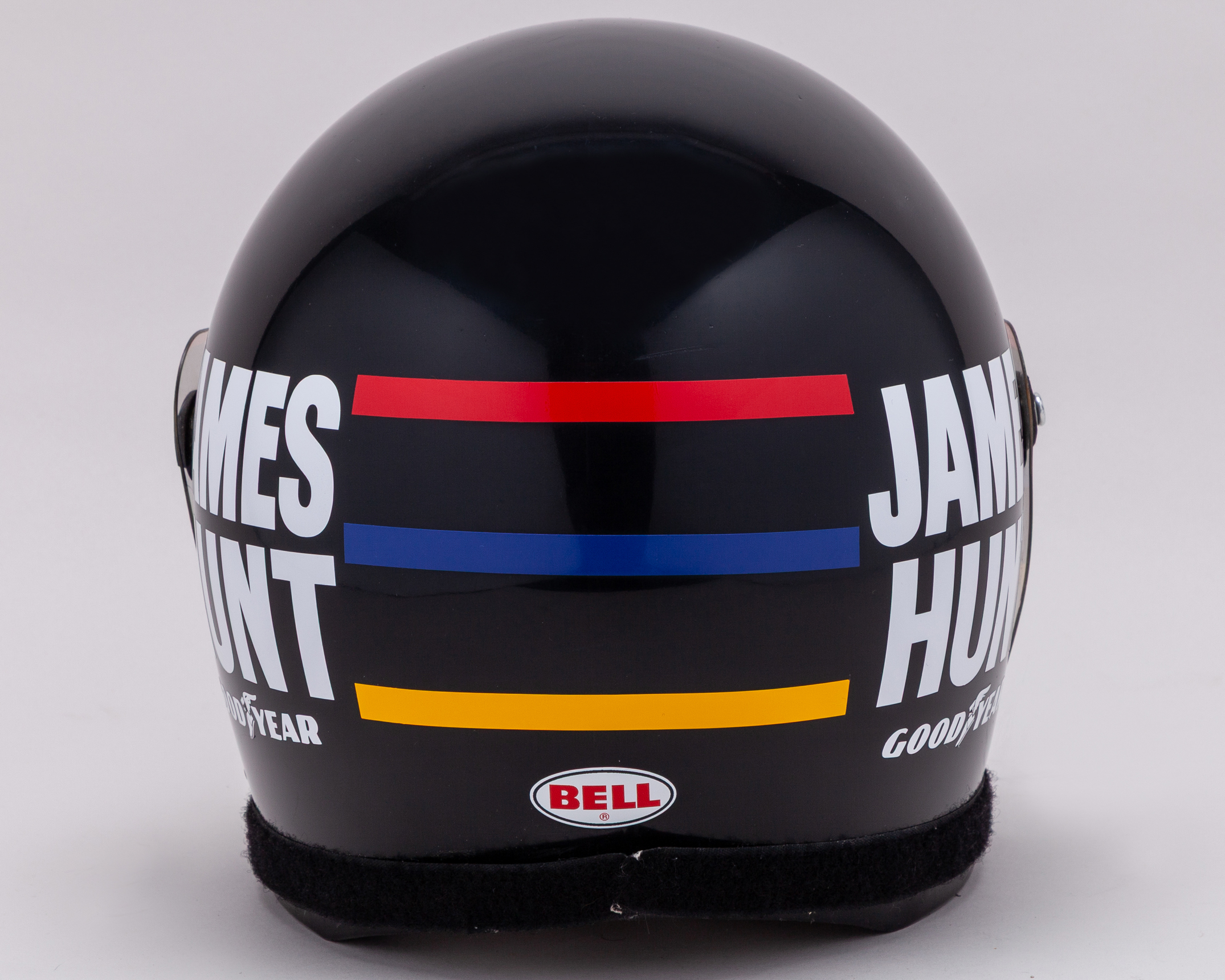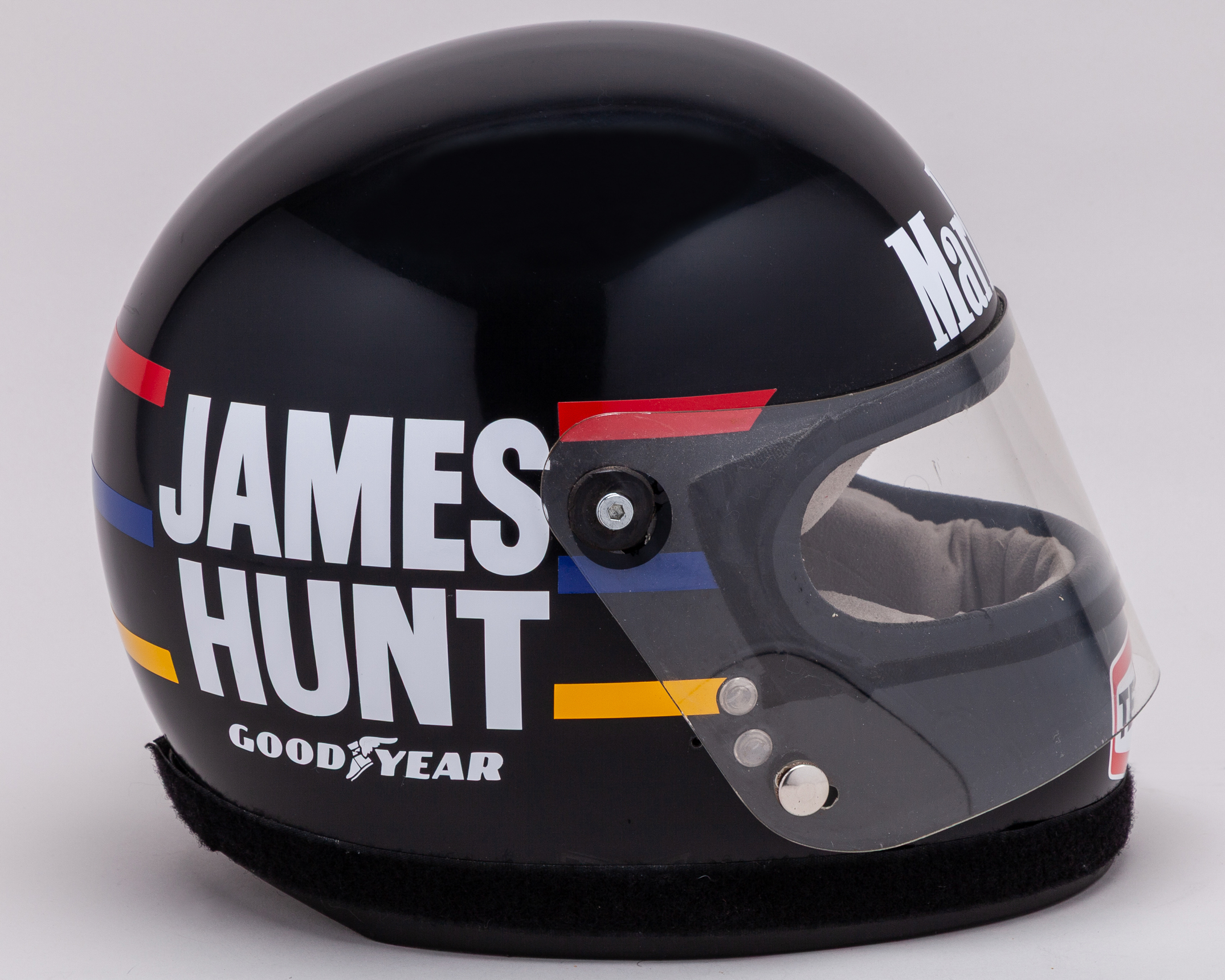 Period helmet decaled to James Hunts world championship winning design. Vintage helmet in appropriate condition.