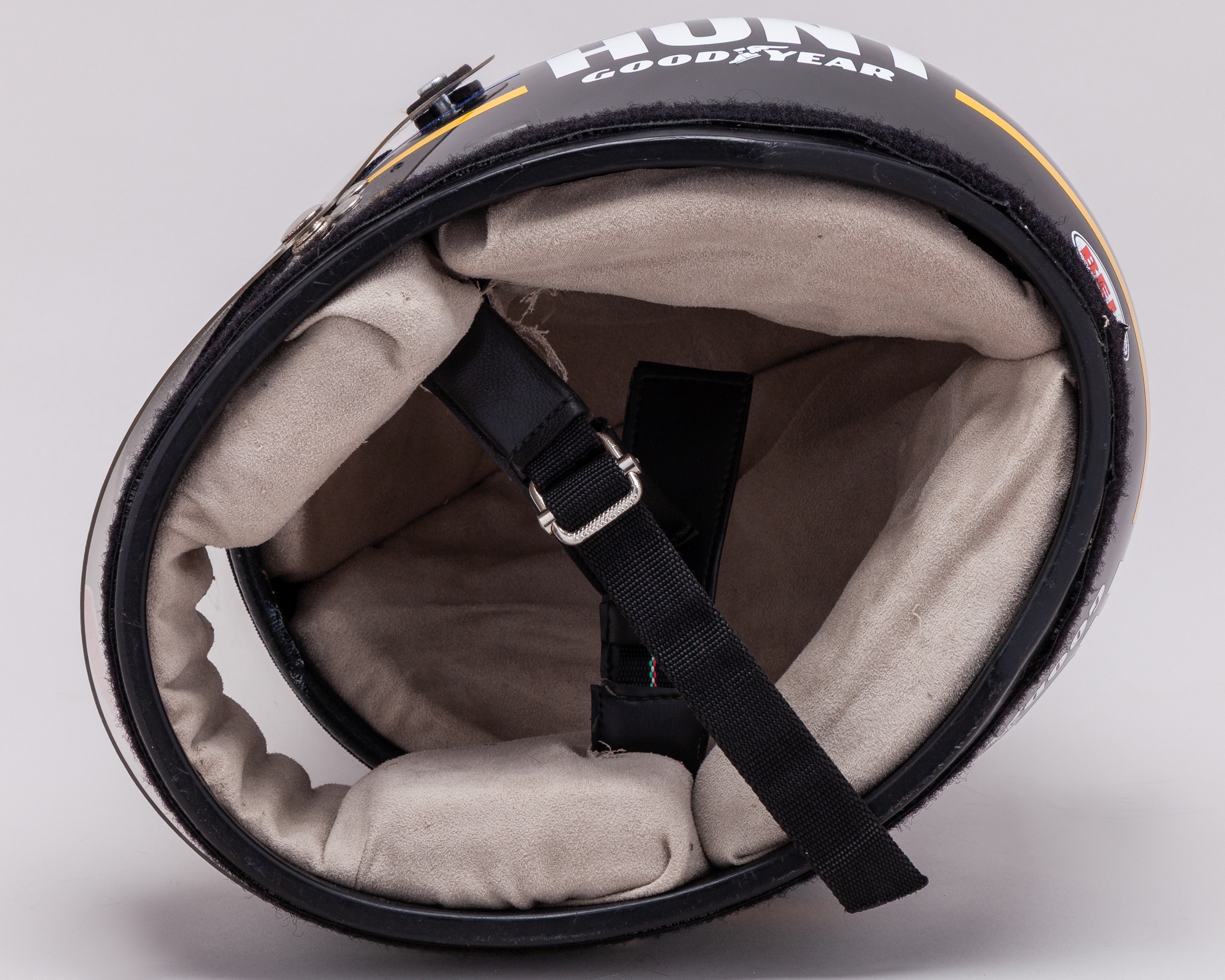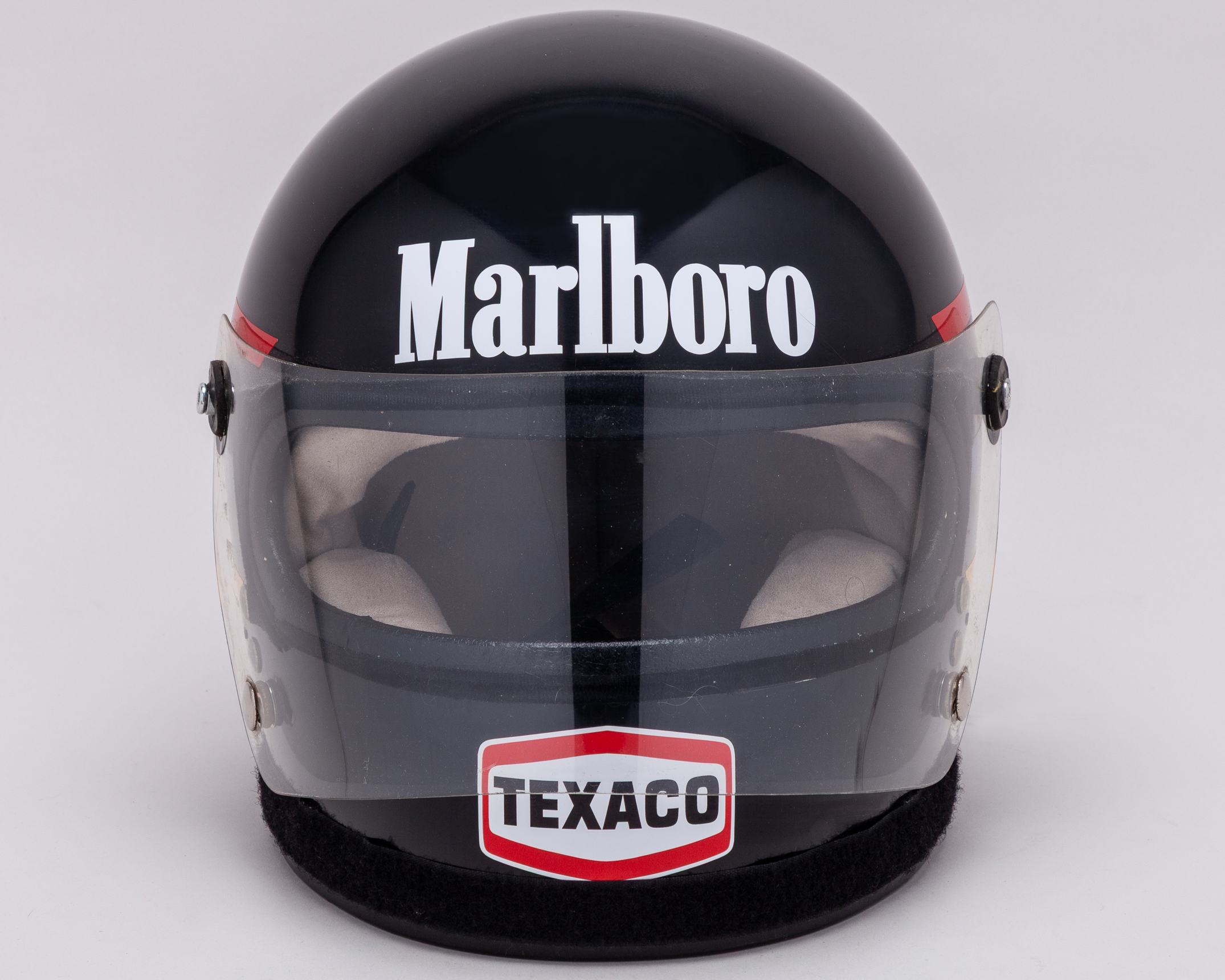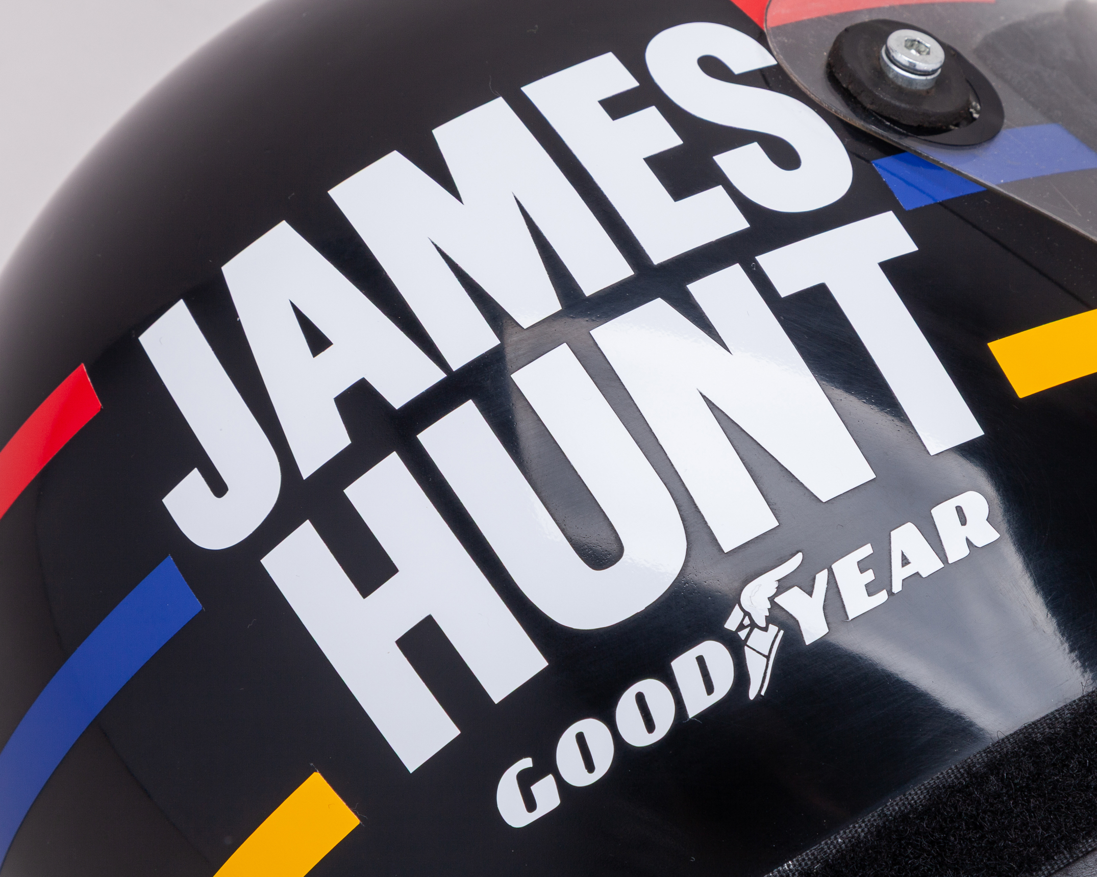 Period helmet decaled to James Hunts world championship winning design. Vintage helmet in appropriate condition.