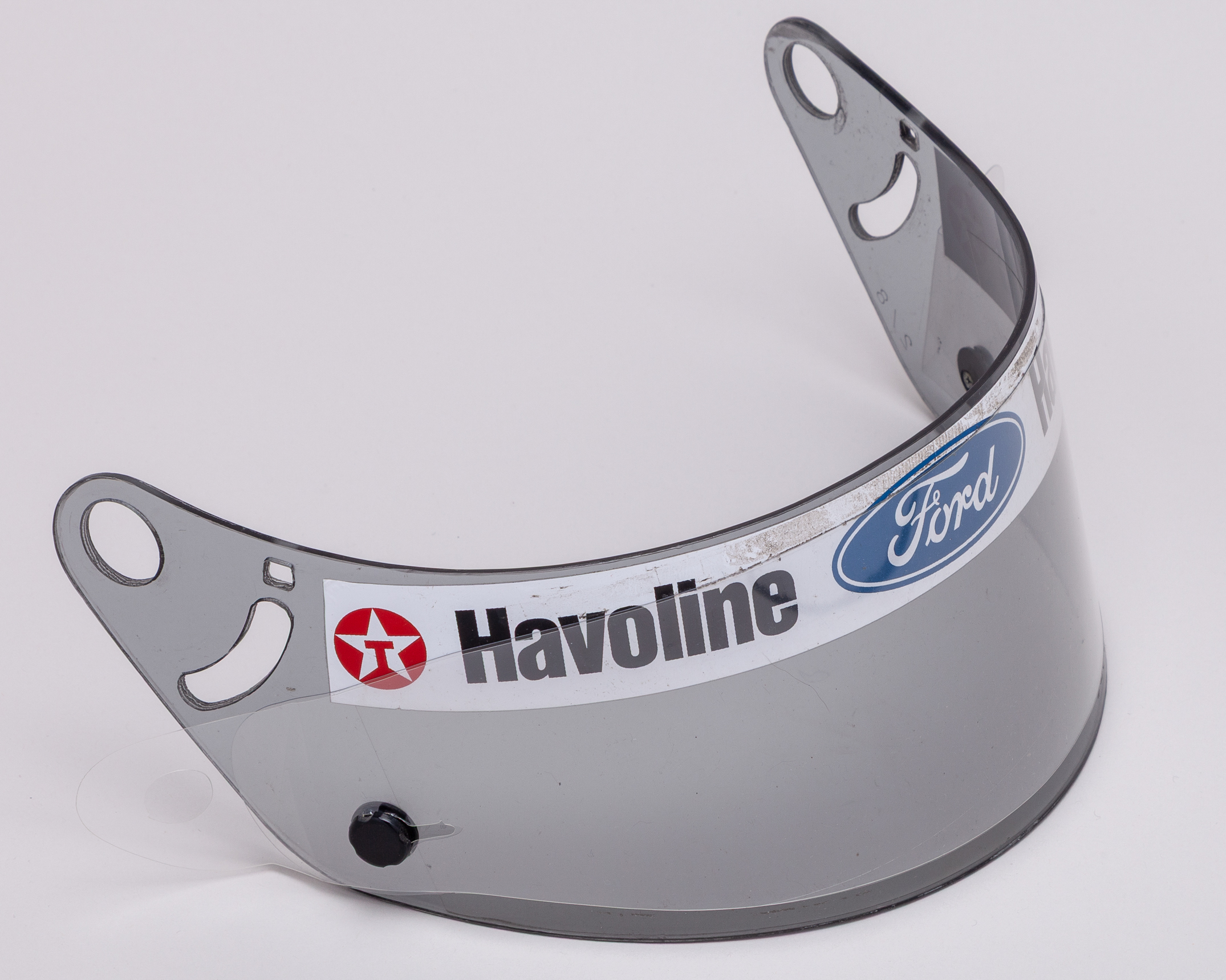 This visor has been race worn by F1 fan favourite, Rubens Barrichello. Used during the 1998 Formula One season, driving for the Stewart Ford Team. This is a spare race visor originating from a previous race-used helmet.