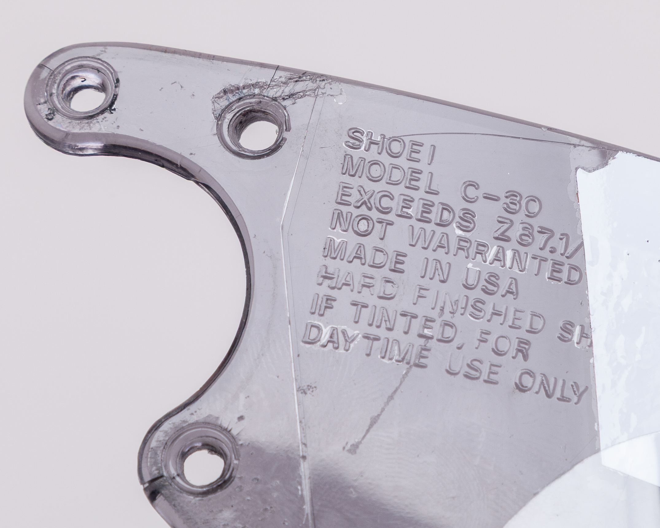 A genuine Shoei GRV-4 dark tint visor with tear-offs.