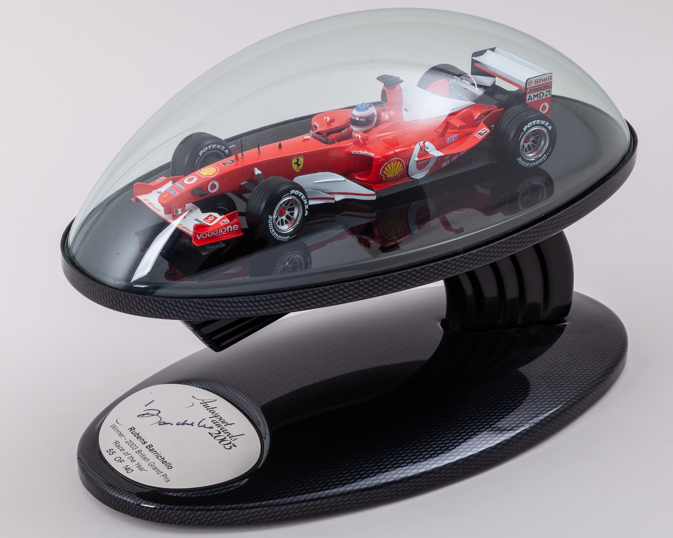 This display is limited edition number 55 of 140. Plaque inscribed Winner - 2003 British Grand Prix ‘Race of the Year’.