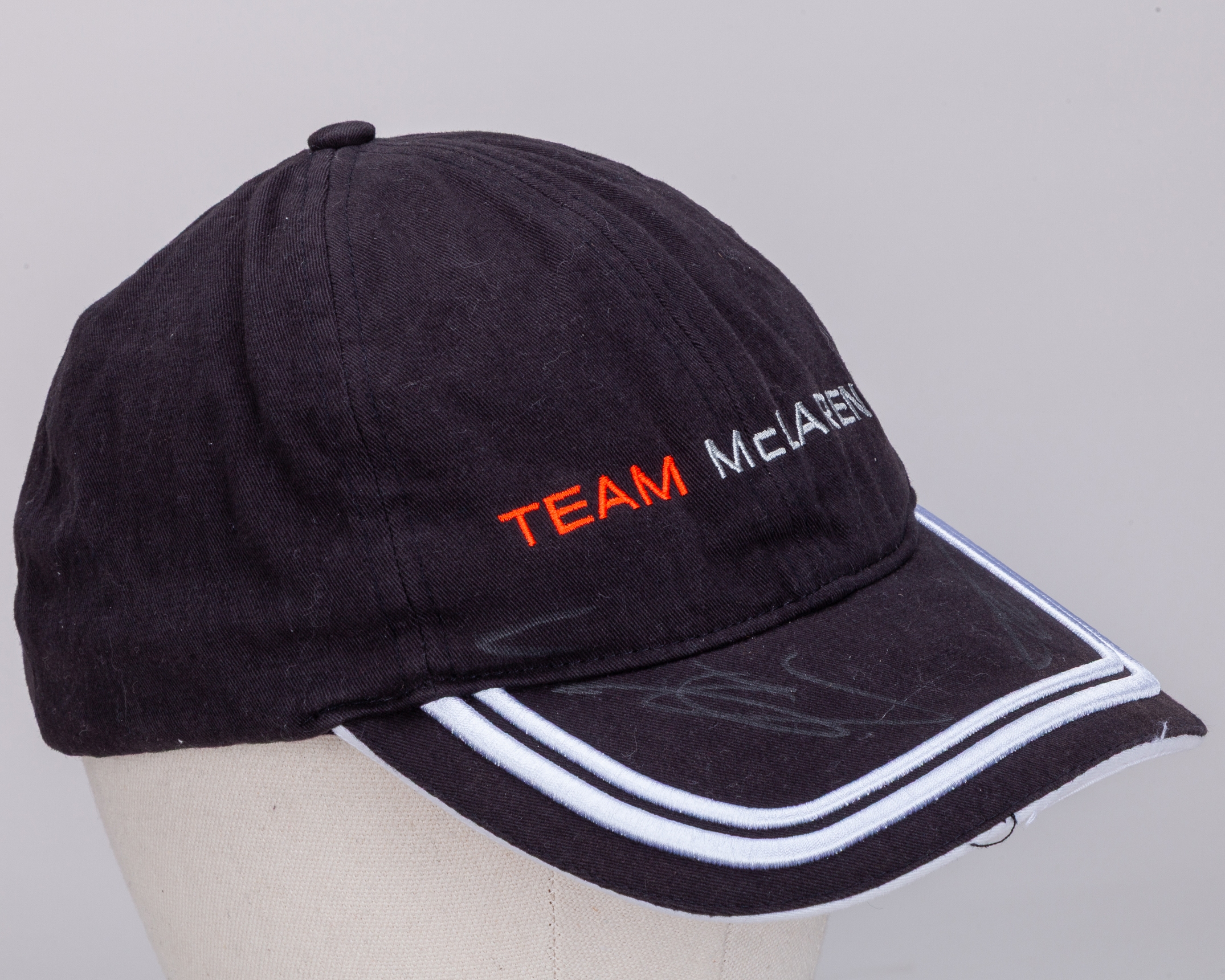 This McLaren cap has been personally signed by F1 World Champions Fernando Alonso and Jenson Button.