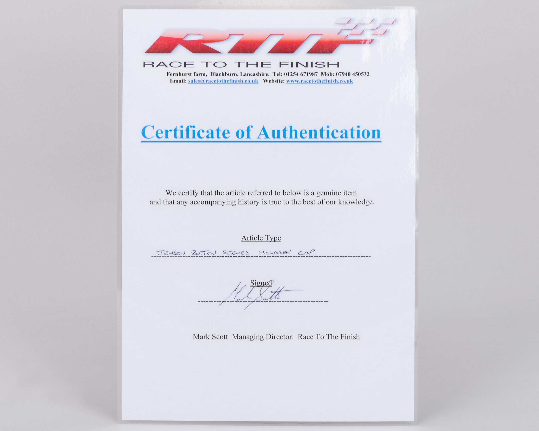 This Vodafone McLaren Mercedes cap has been personally signed by the 2009 Formula One World Champion.