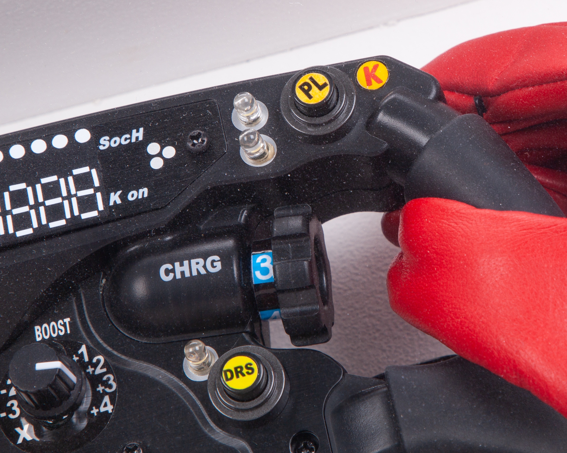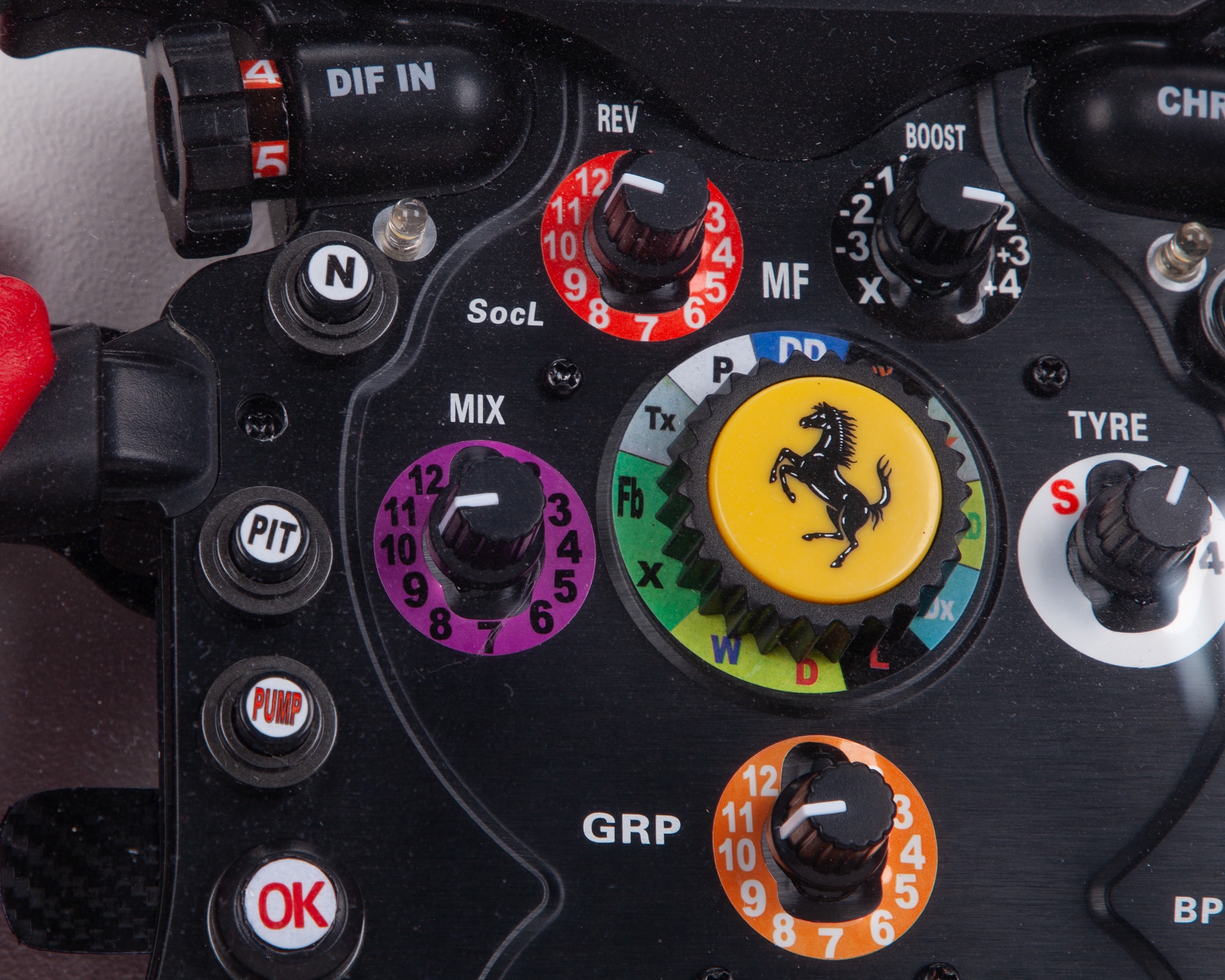 This steering wheel display is from the 2012 Formula One season, where Fernando Alonso and Felipe Massa drove for the Scuderia Ferrari Team.