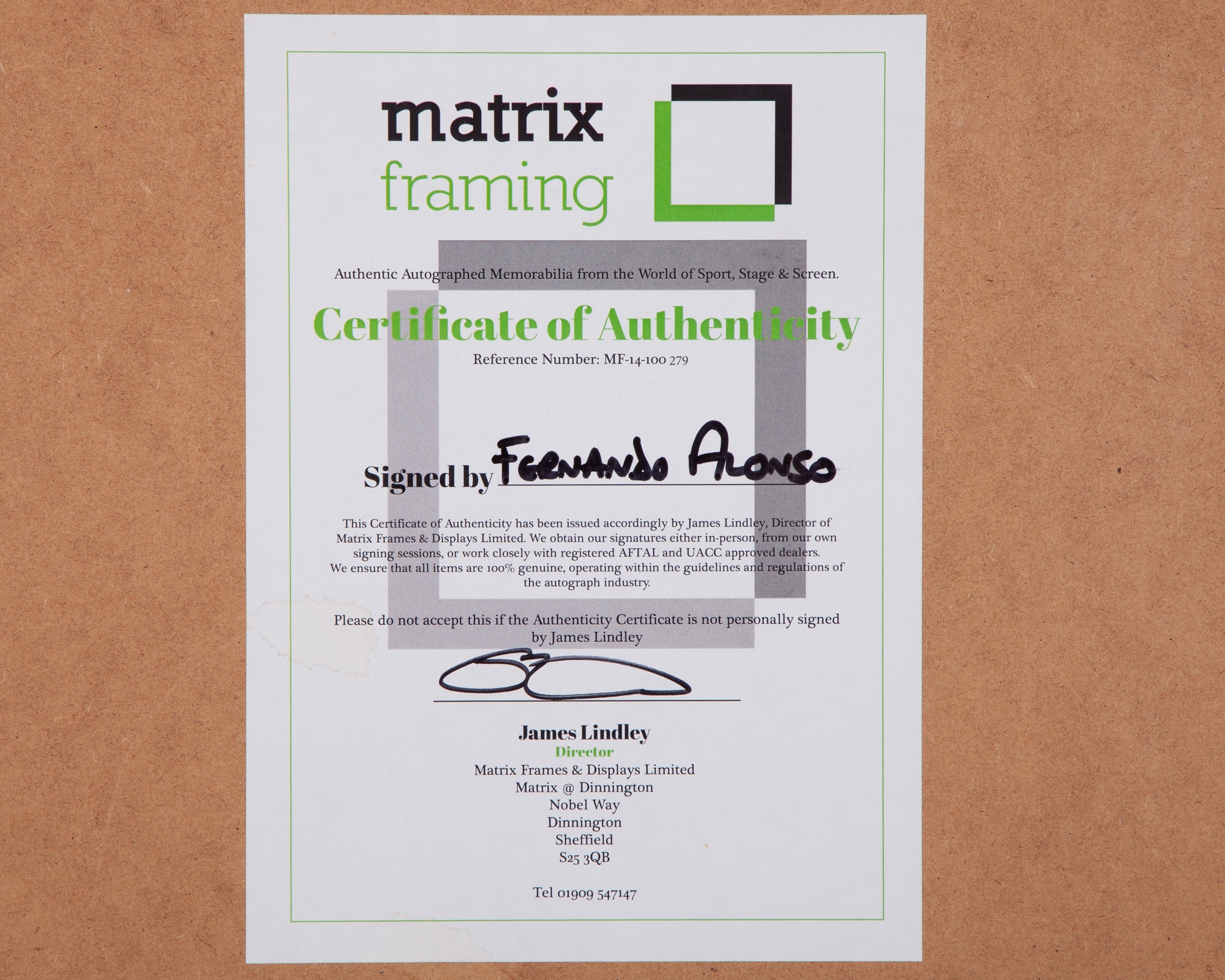 The picture has been personally signed by the 2-time F1 World Champion.