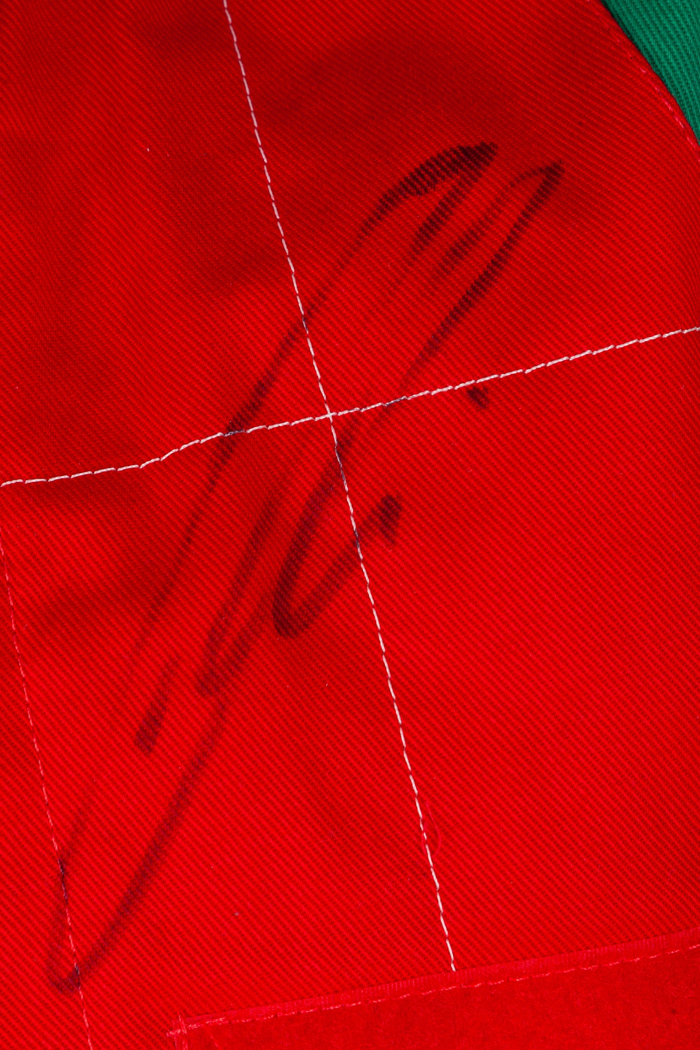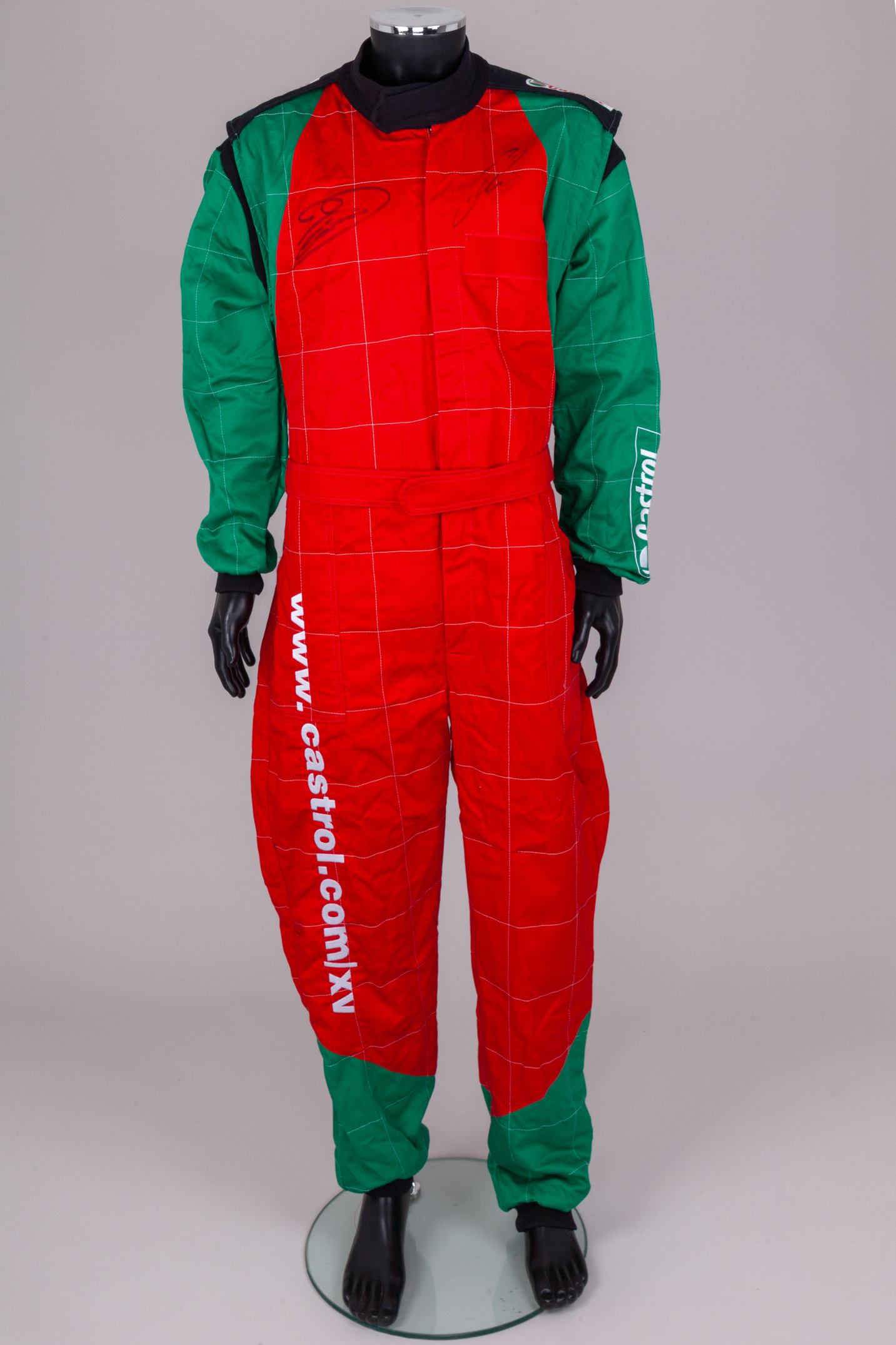 The overalls have been signed by 2 drivers, and showcase a classic late 1990's racing design and branding.