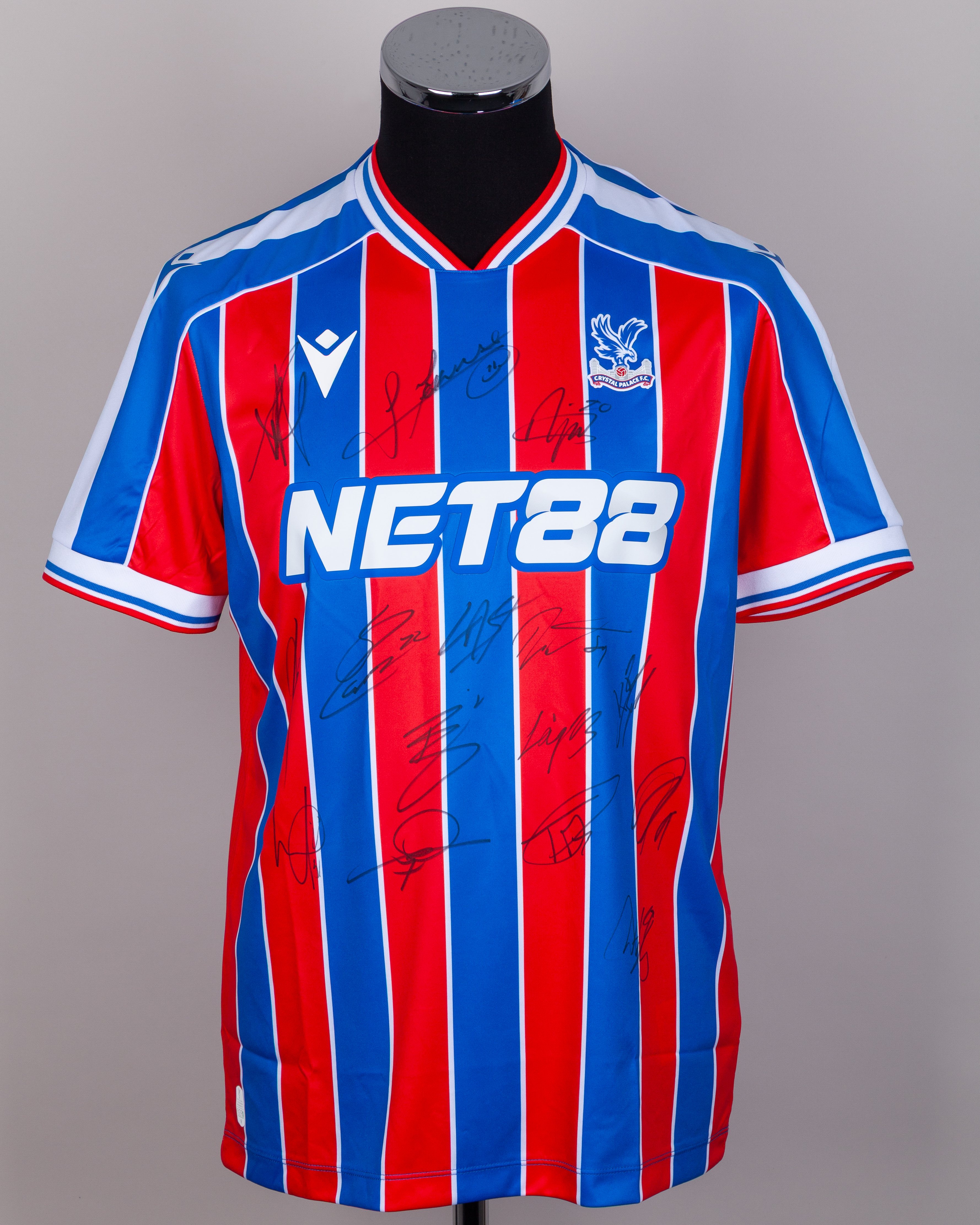 Crystal Palace v. Leeds United match issued, squad signed Premier League shirt 2026, Macron, with crew-neck collar and printed badge