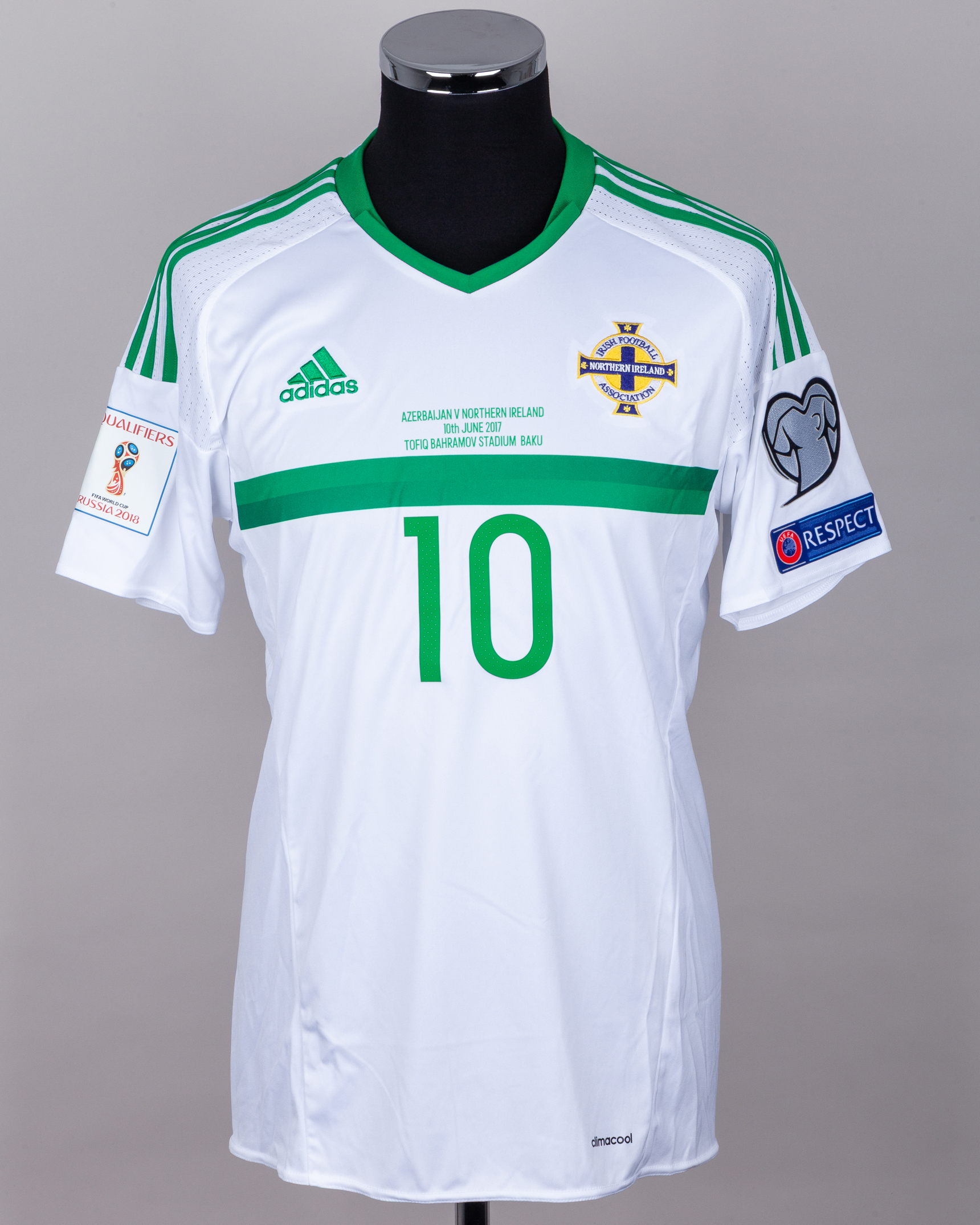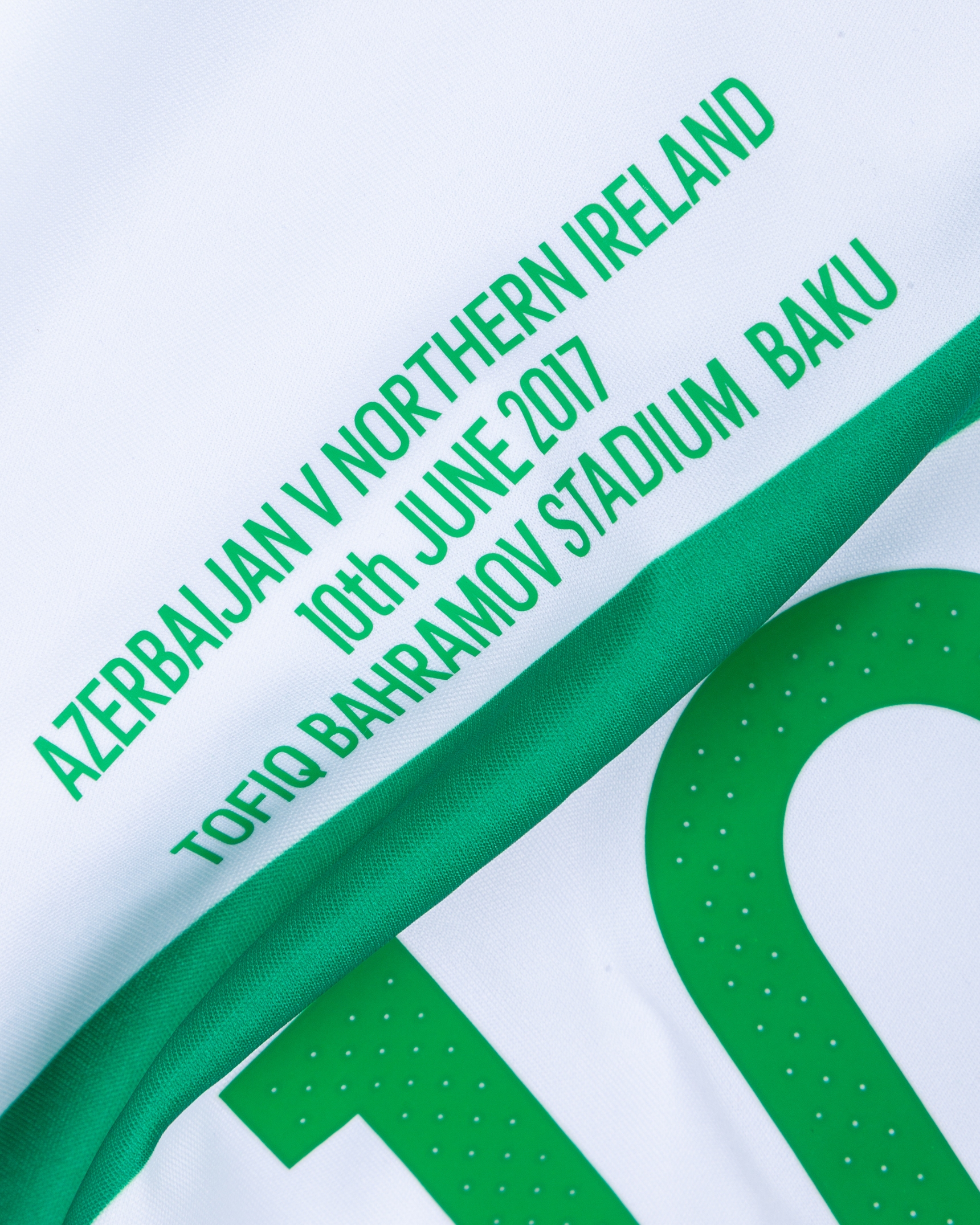 The above shirt was worn by Kyle Lafferty in the FIFA World Cup qualifier played on 10th June 2017 in Baku, Northern Ireland defeated Azerbaijan 1-0