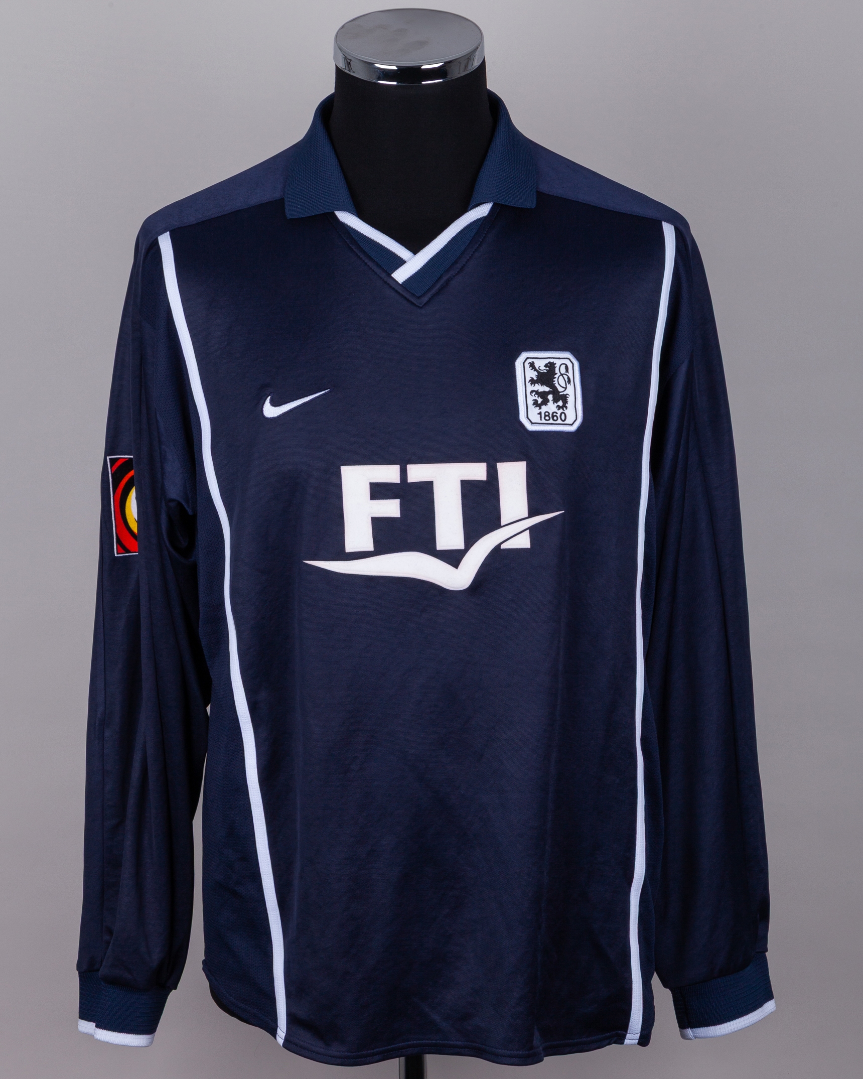 Thomas Hassler blue No.10 TSV Munich v. Energie Cottbus match worn long-sleeved shirt, 2000, Nike, L, with v-neck collar and embroidered cloth badge inscribed 1860, the reverse lettered HABLER, the right sleeve with Bundesliga flash, with letter of provenance