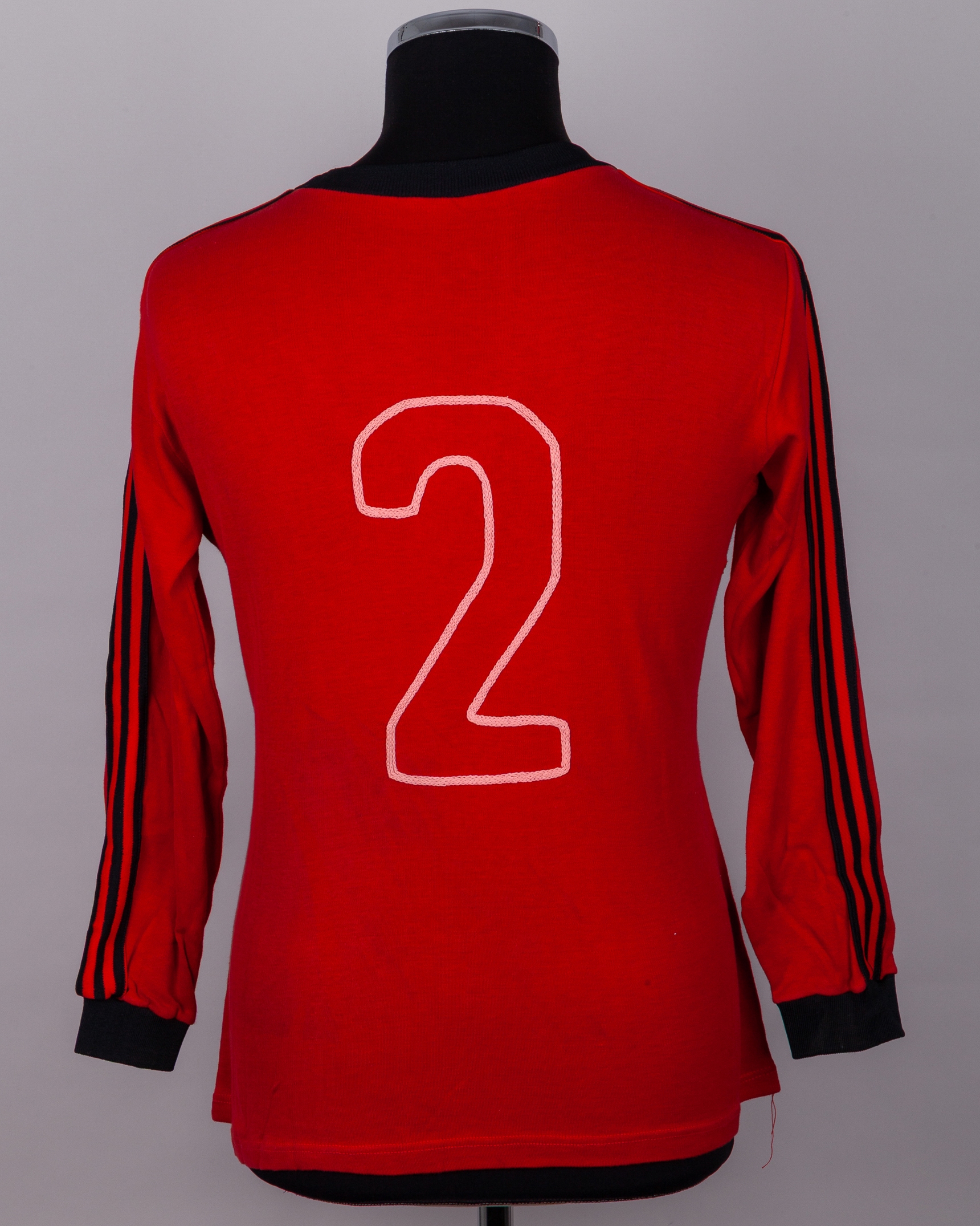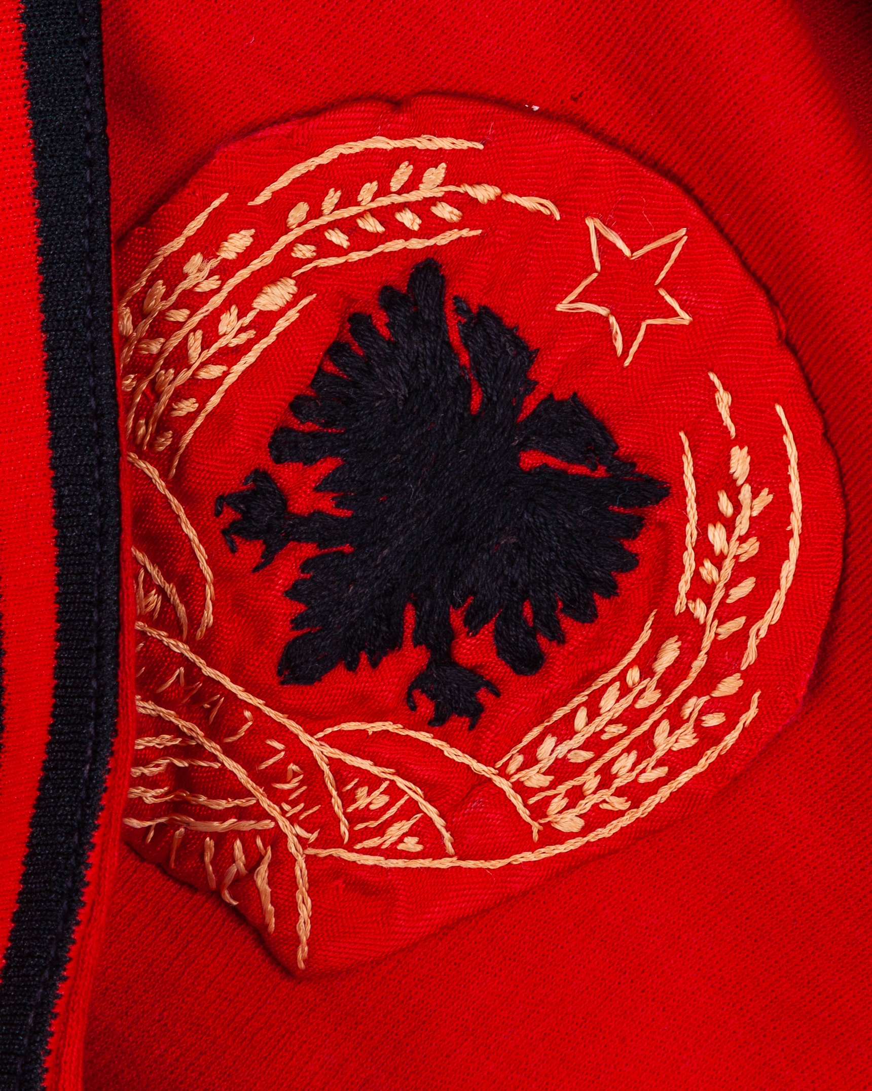 Petro Ruci red and black No.2 Albania v. Northern Ireland long-sleeved shirt, 1983