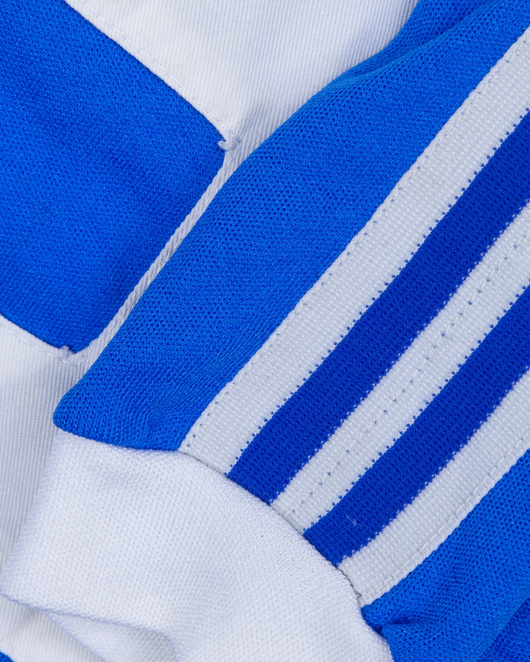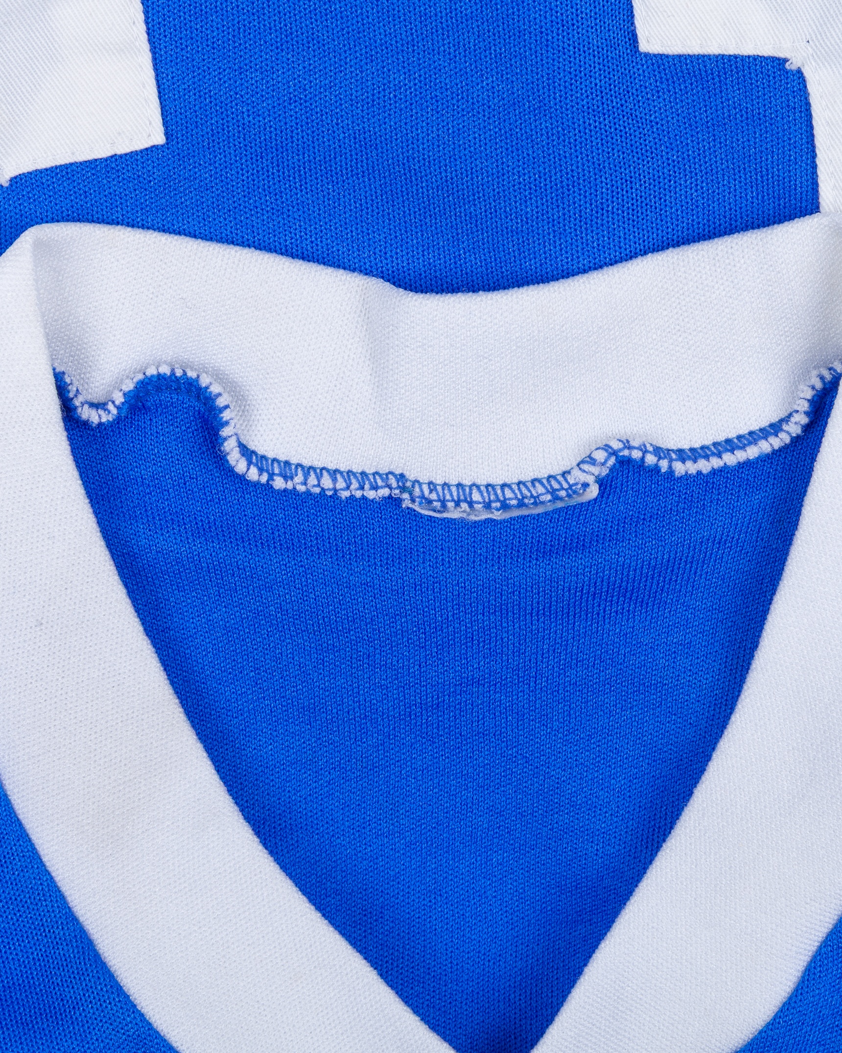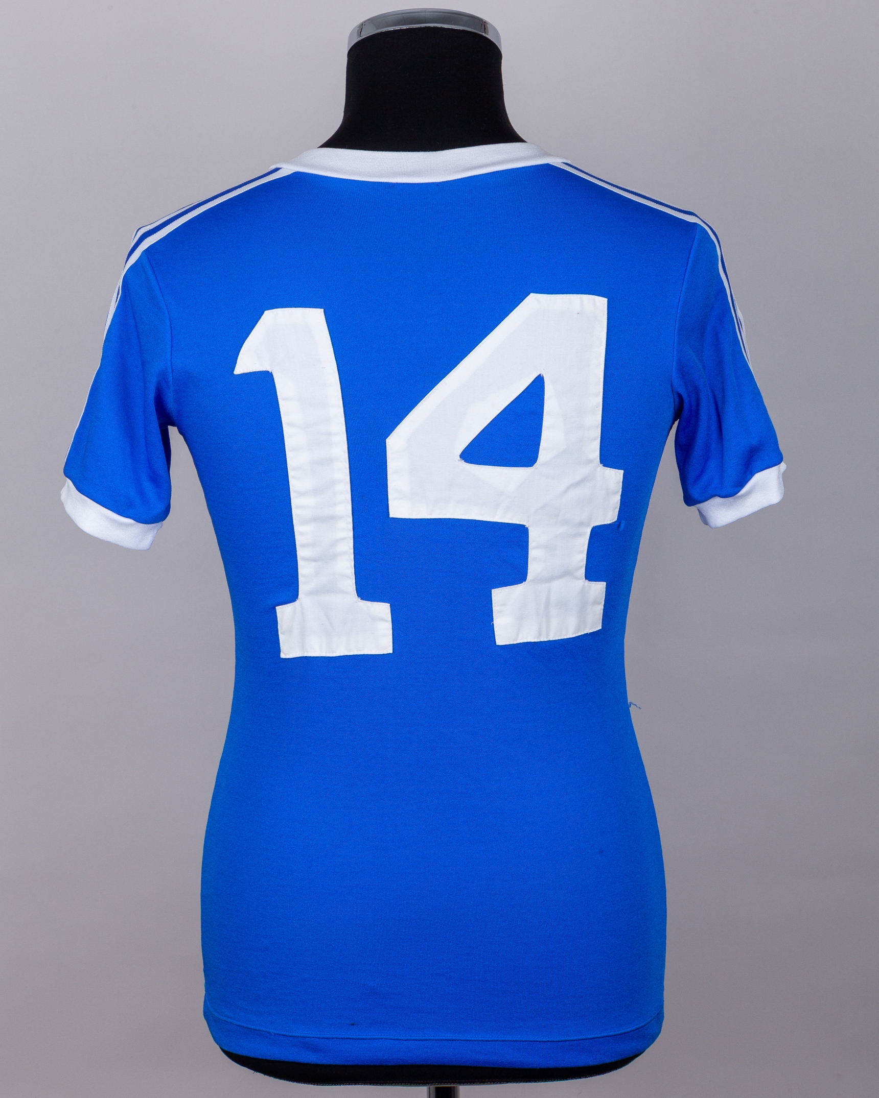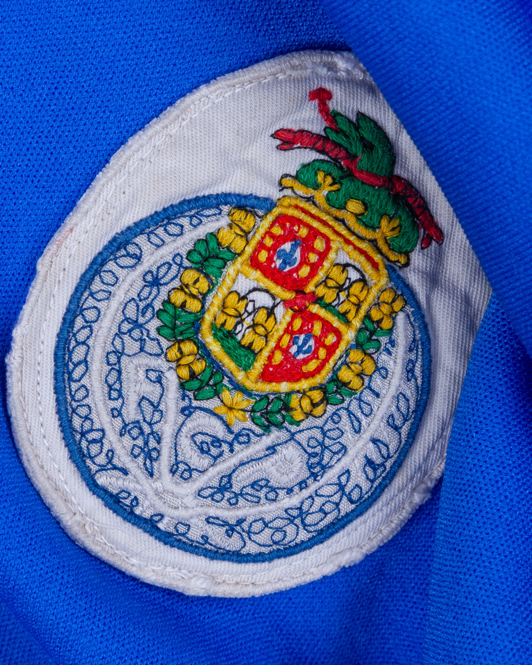 Blue No.14 Porto short-sleeved shirt, 1980s, with v-neck collar and embroidered cloth badge inscribed FCP, with some pulls