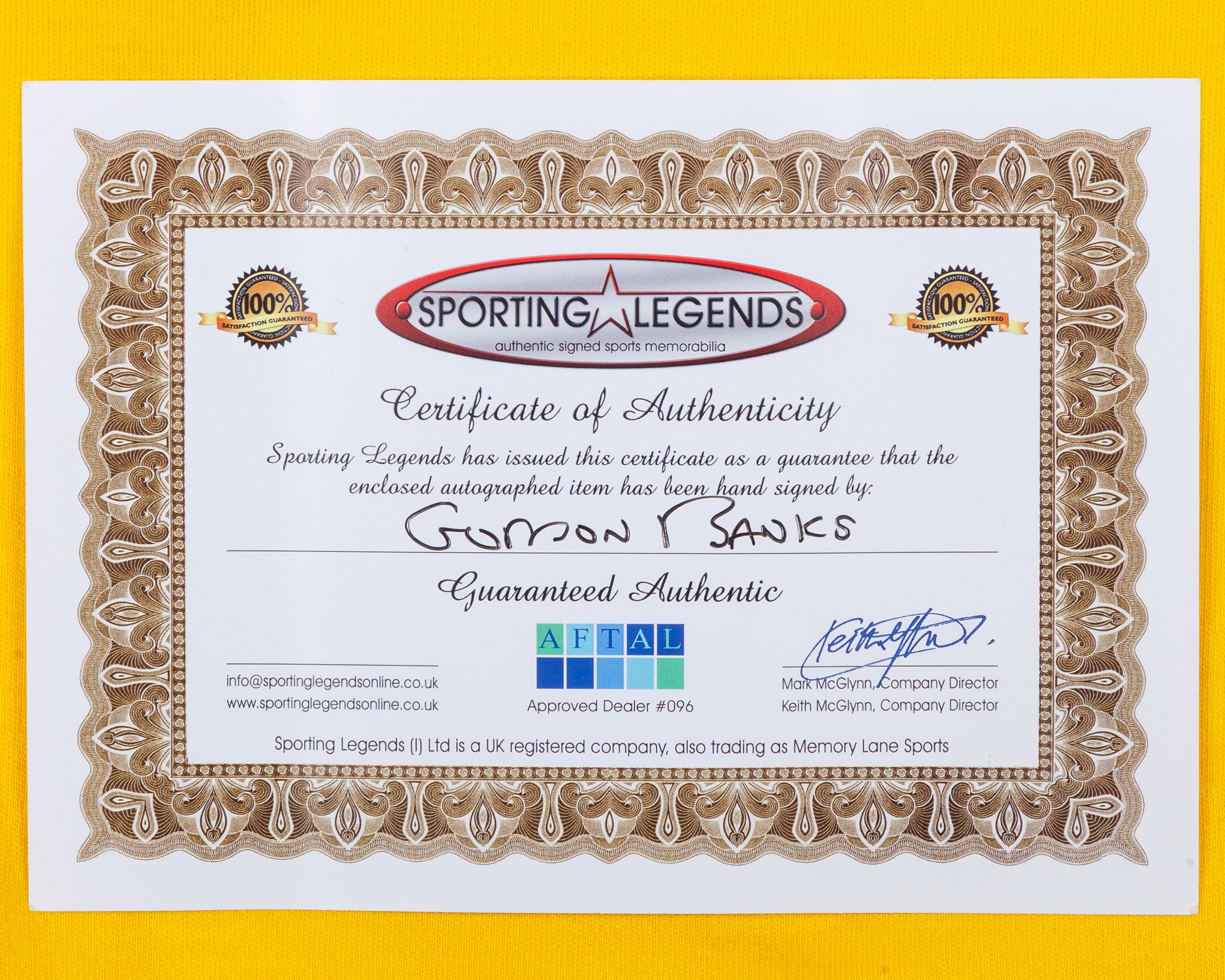 Gordon Banks autographed yellow England replica long-sleeved shirt