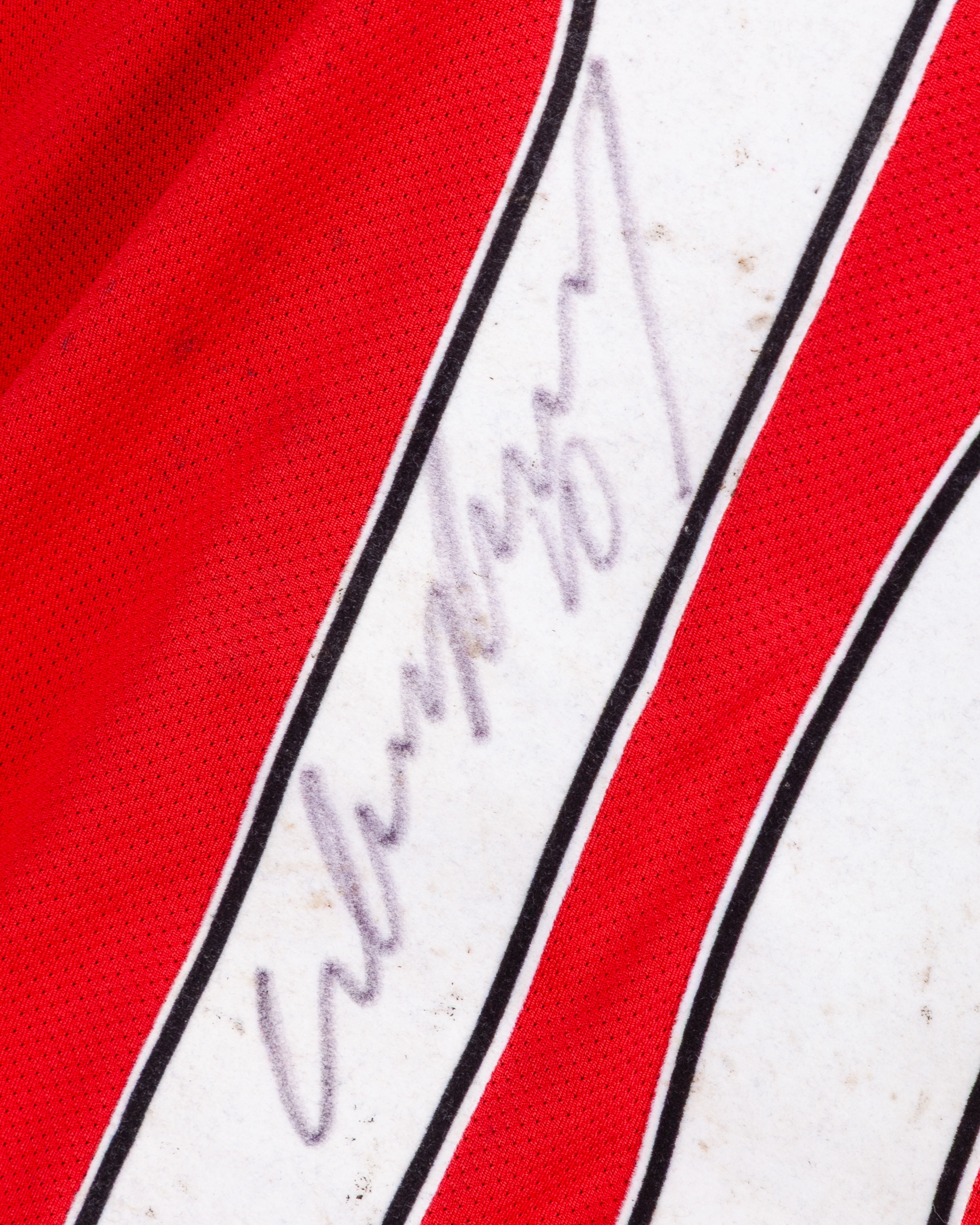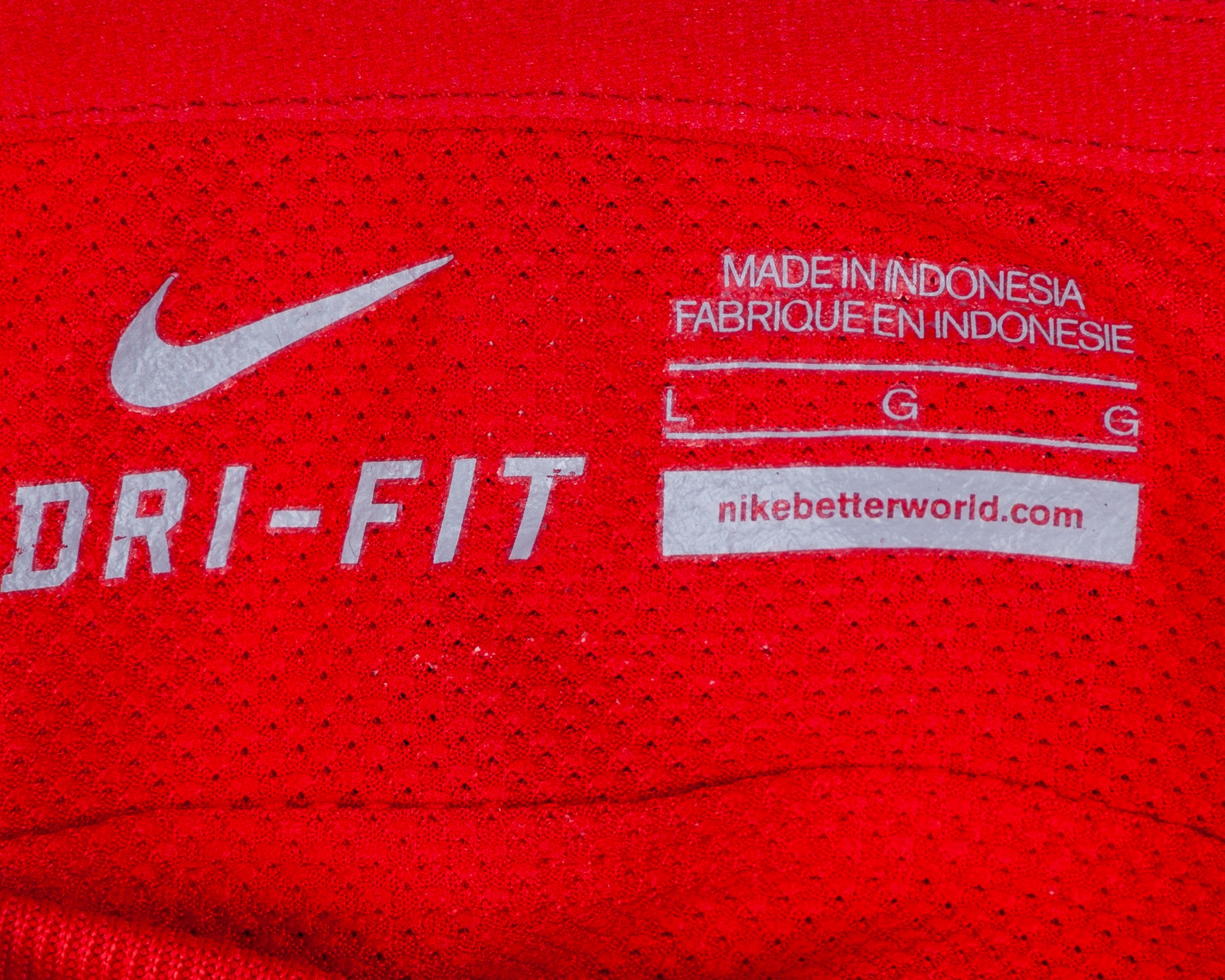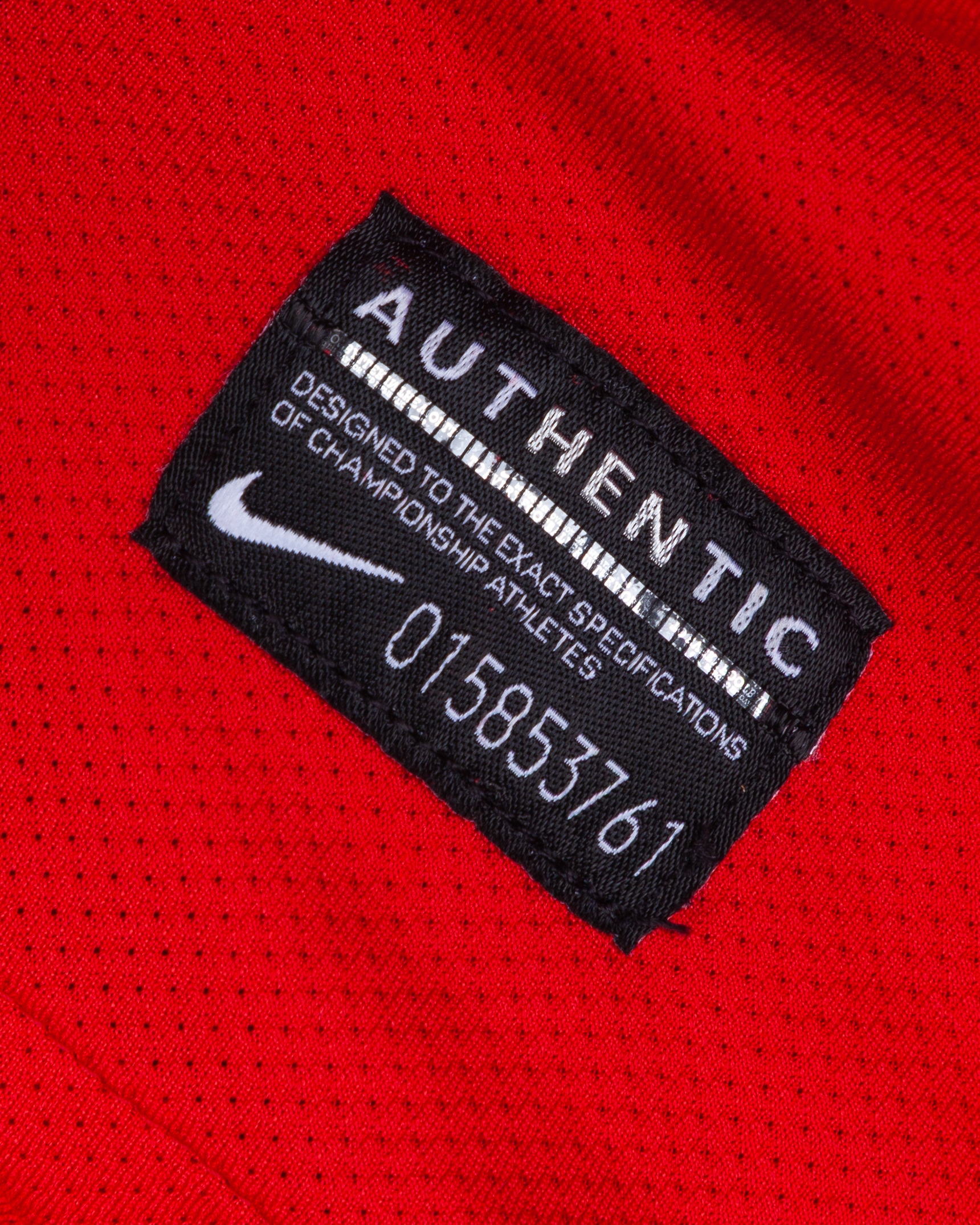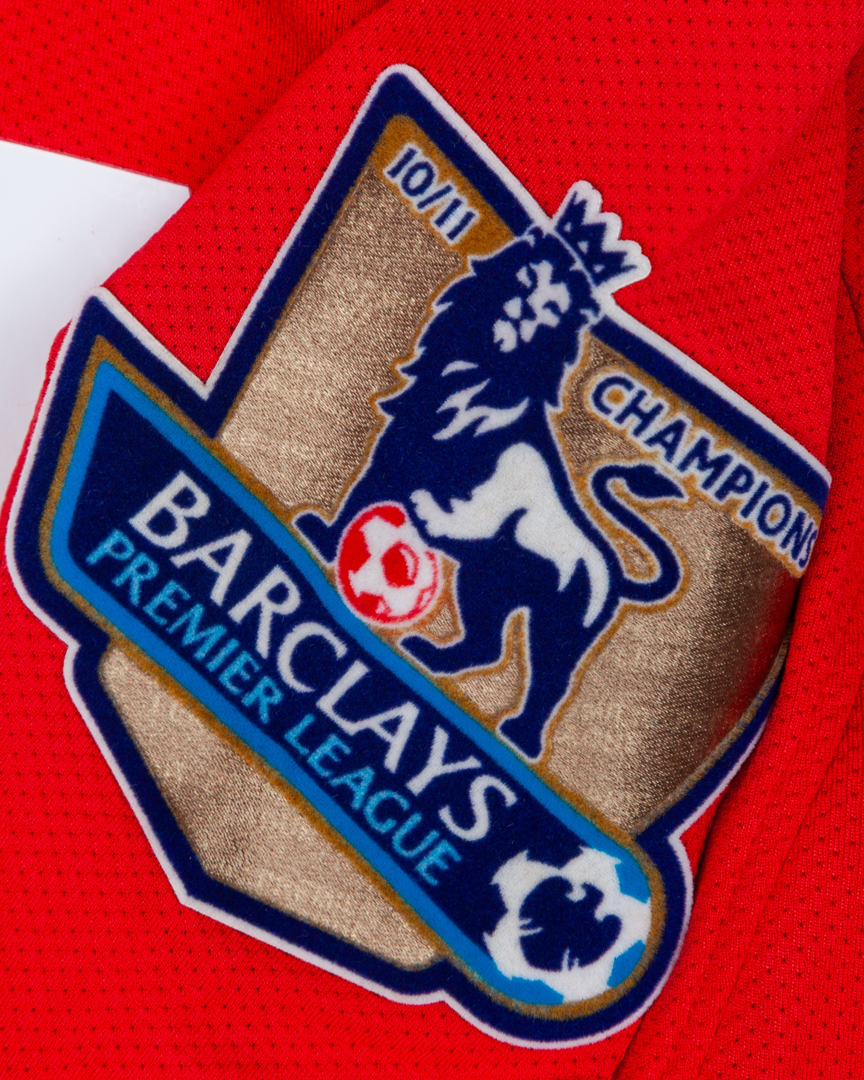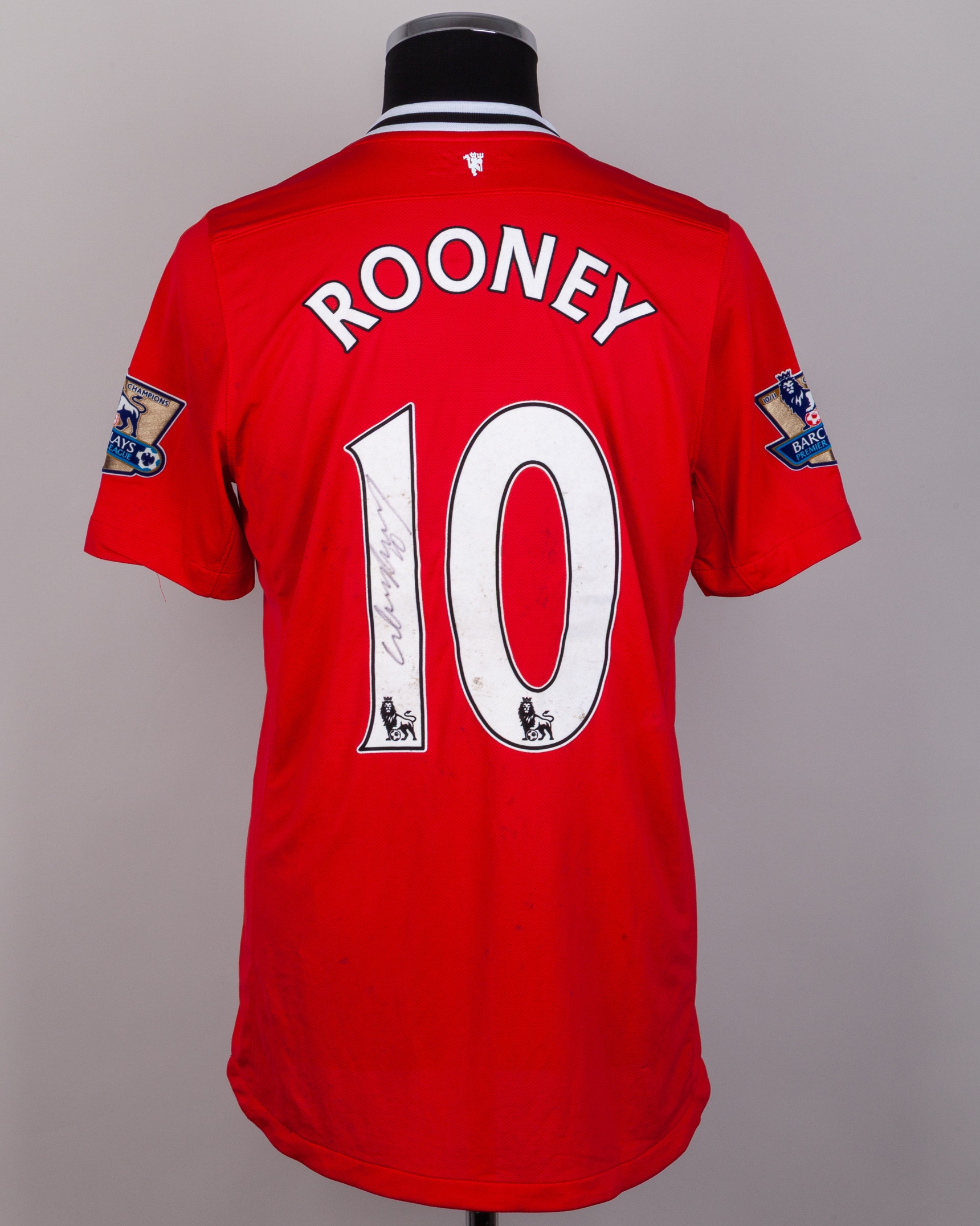 Wayne Rooney red No.10 Manchester United v. Tottenham Hotspur autographed short-sleeved shirt, 2011-12, Nike, L, with crew-neck collar and printed badge, the reverse lettered ROONEY, autographed on the number, the sleeves with 10/11 Champions Barclays Premier League flashes, with some staining