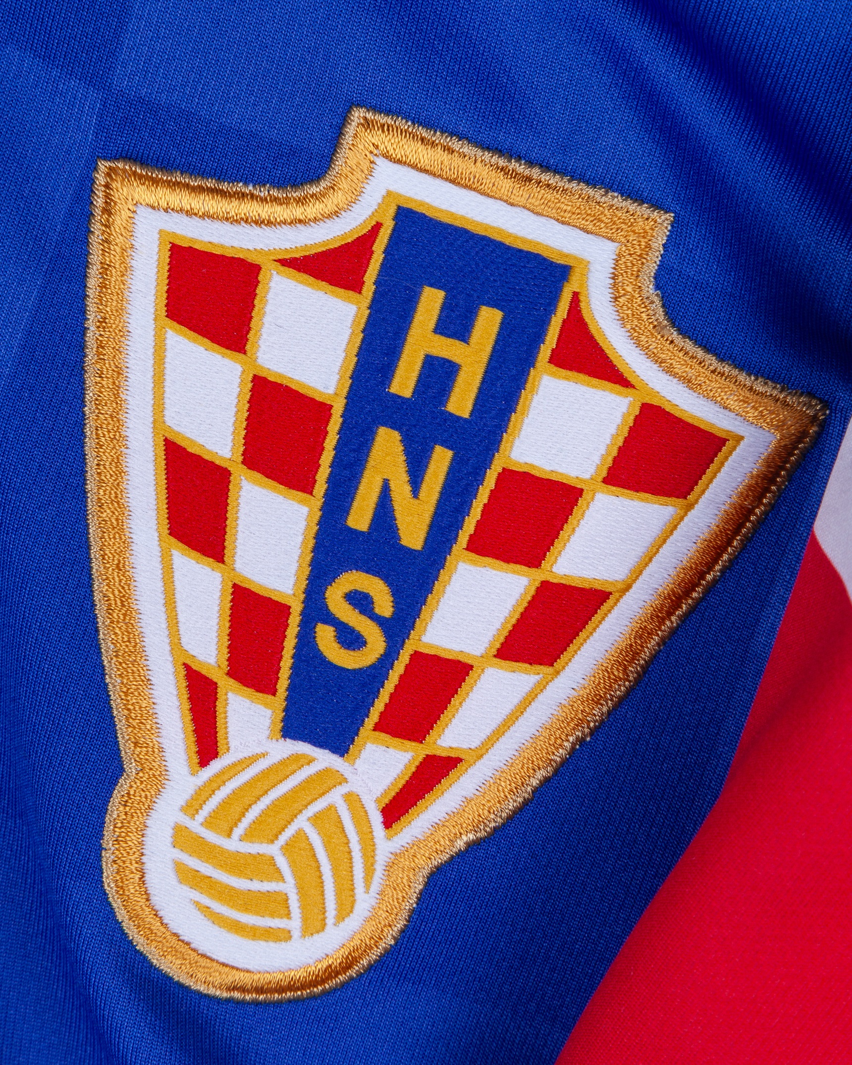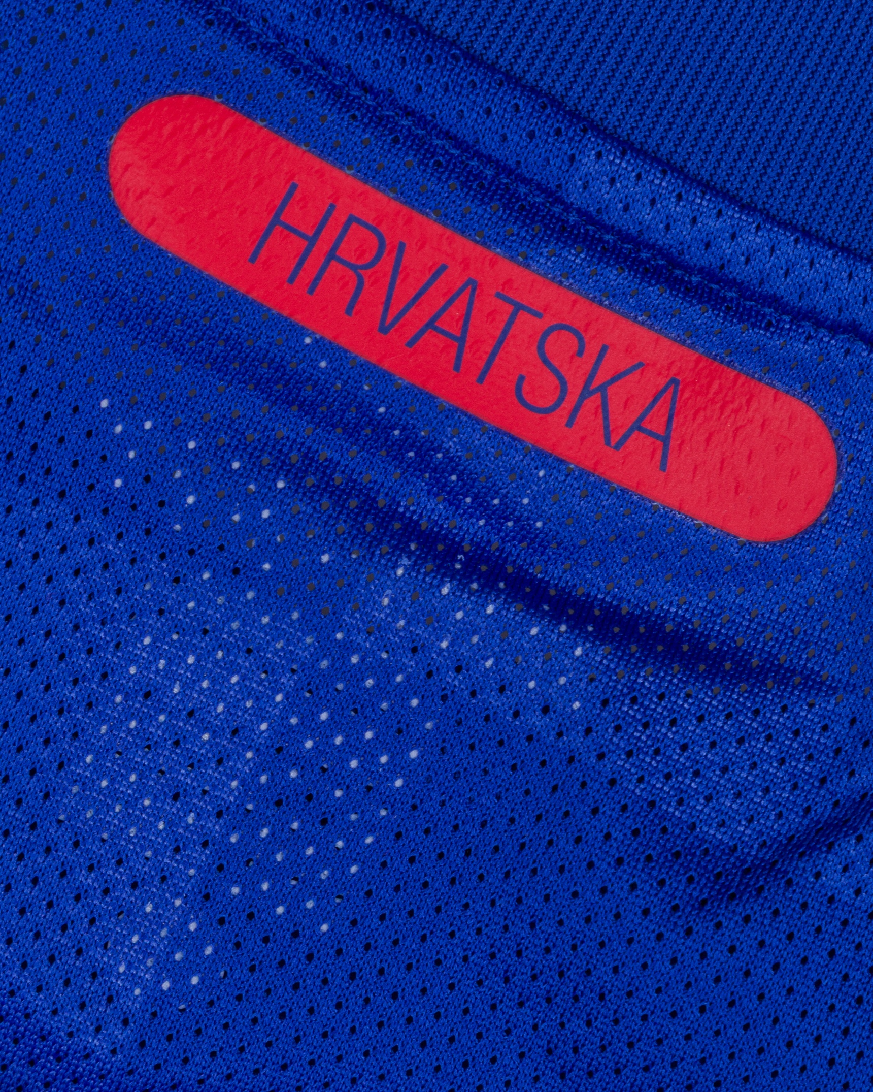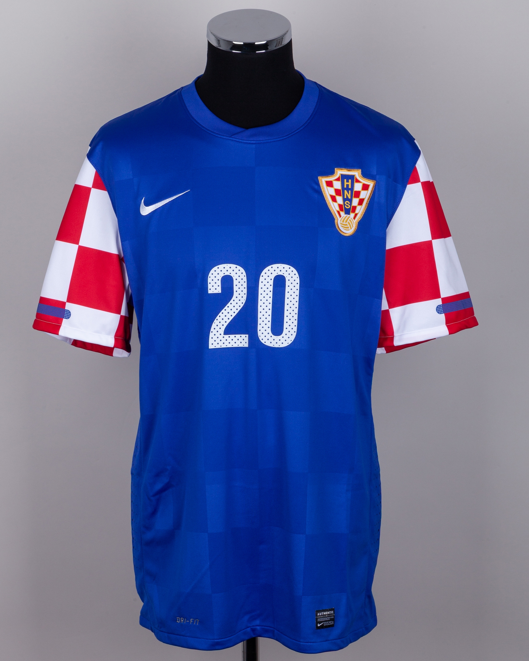 Blue, red and white No.20 Croatia v. Republic of Ireland short-sleeved shirt, 2011, Nike, XL, with crew-neck collar and embroidered cloth badge inscribed HNS