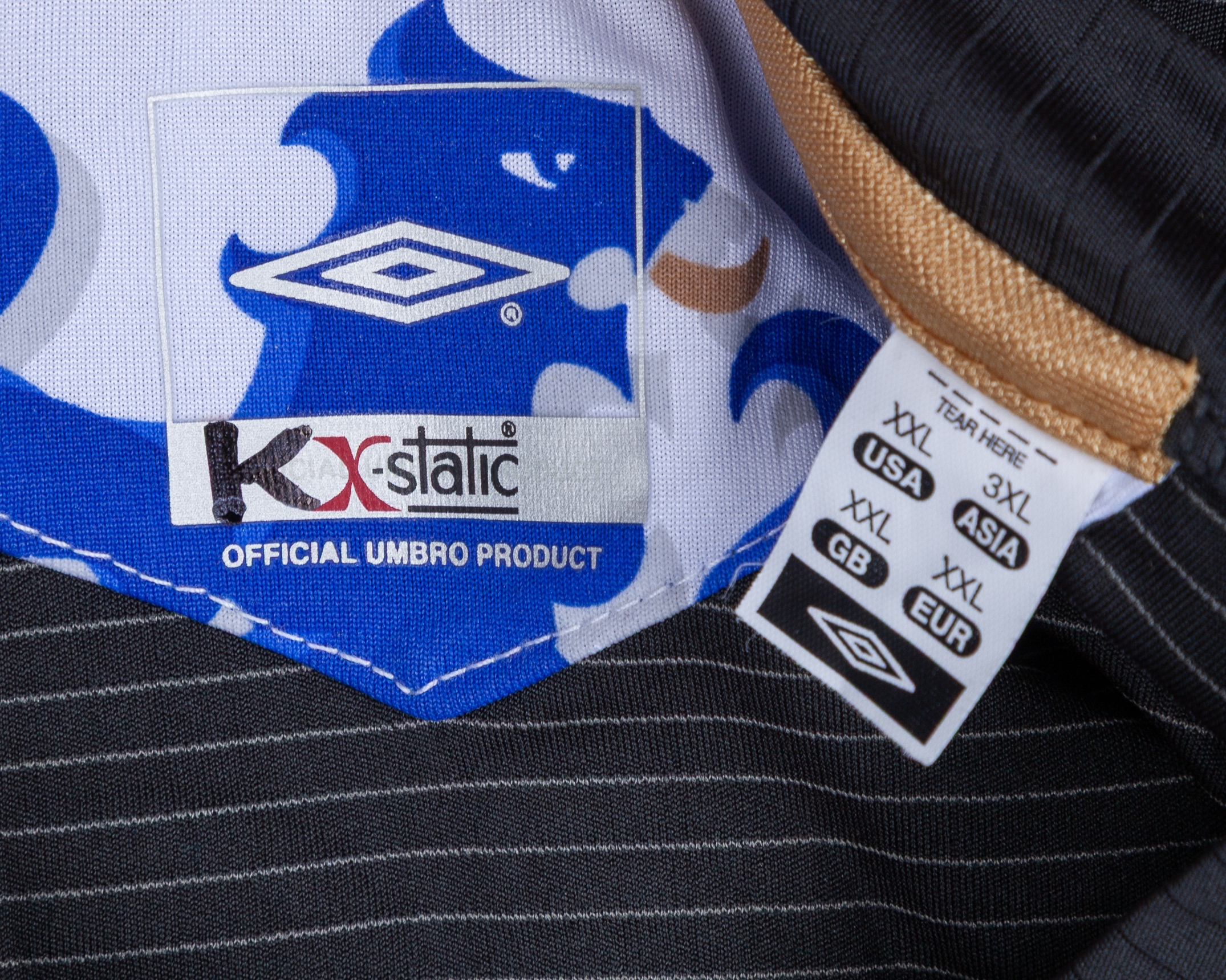 Petr Cech grey and gold No.1 Chelsea Champions League goalkeeper shirt, 2005-06, Umbro, XXL, with crew-neck collar and embroidered cloth badge inscribed CHELSEA FOOTBALL CLUB 100 YEARS CENTENARY 1905-2005, the reverse lettered CECH, the right sleeve with Champions League flash
