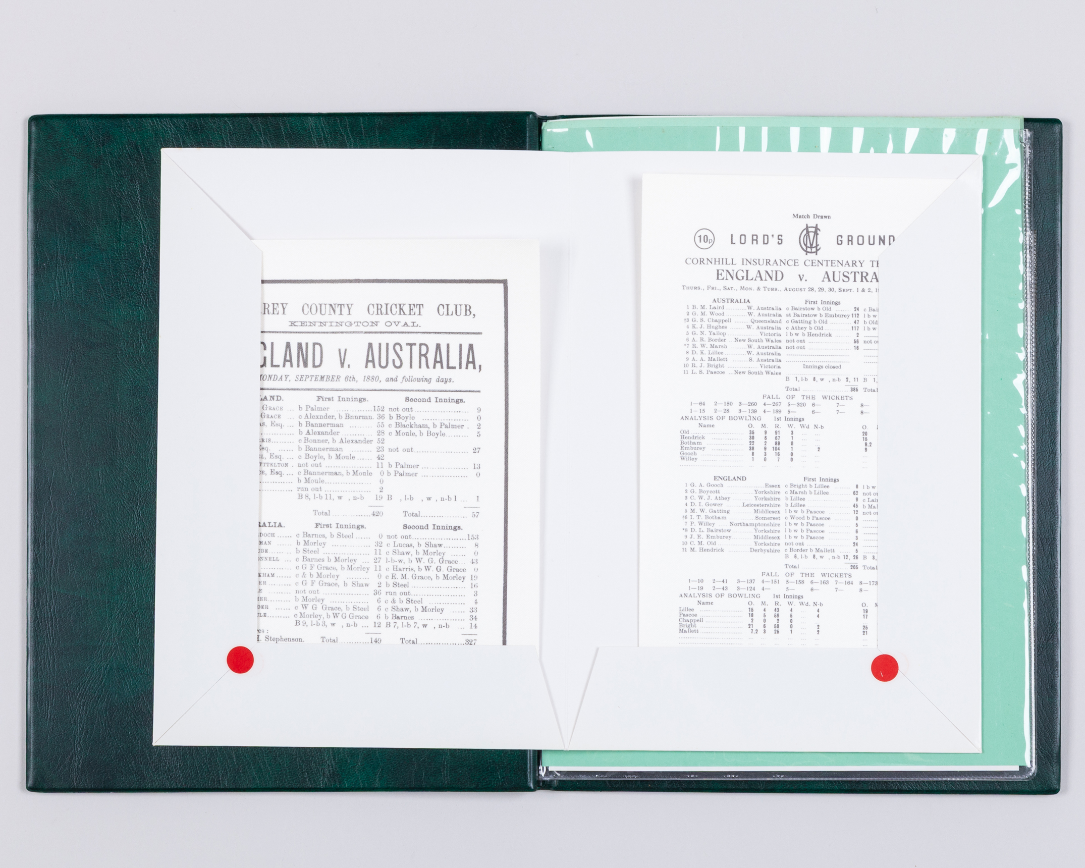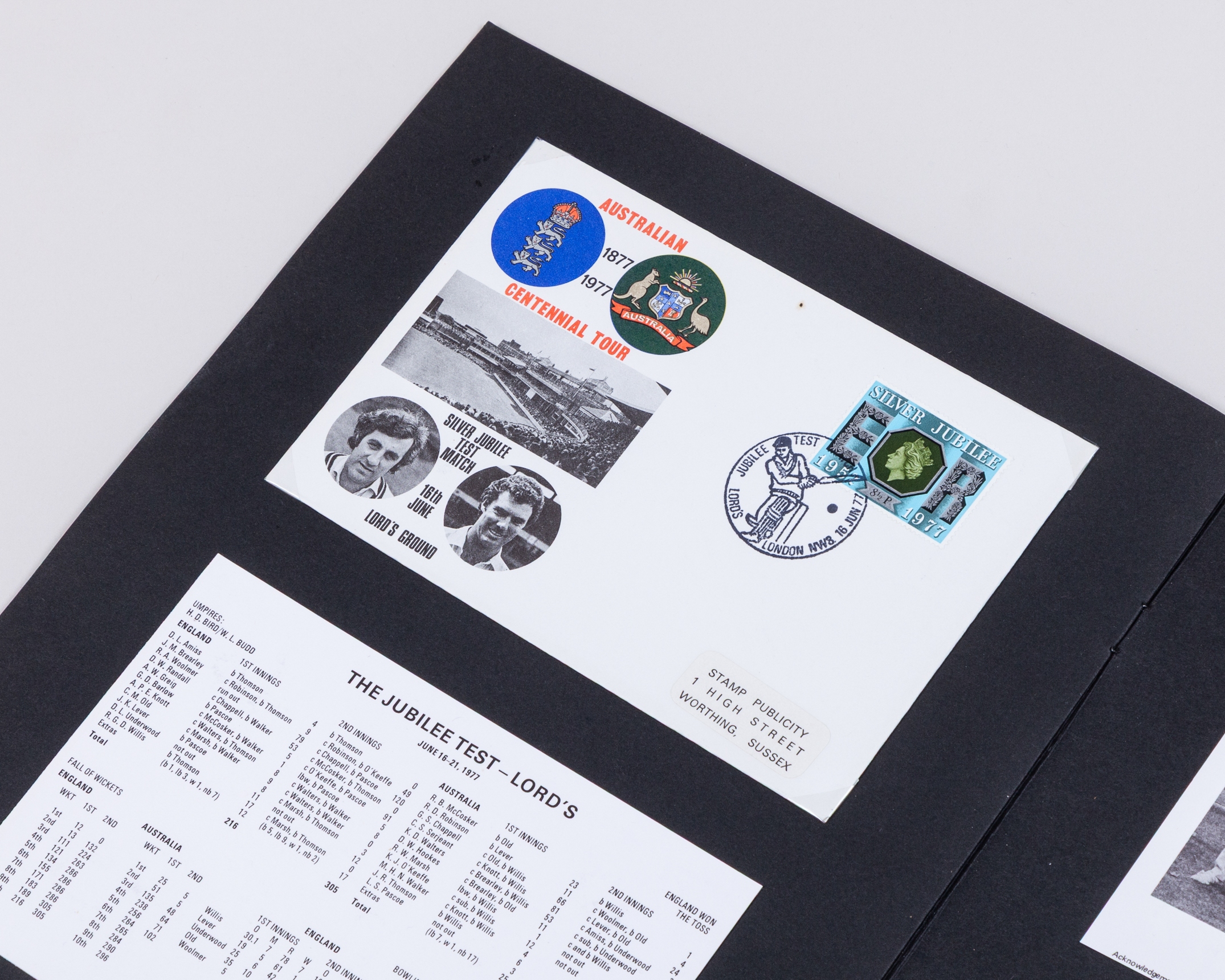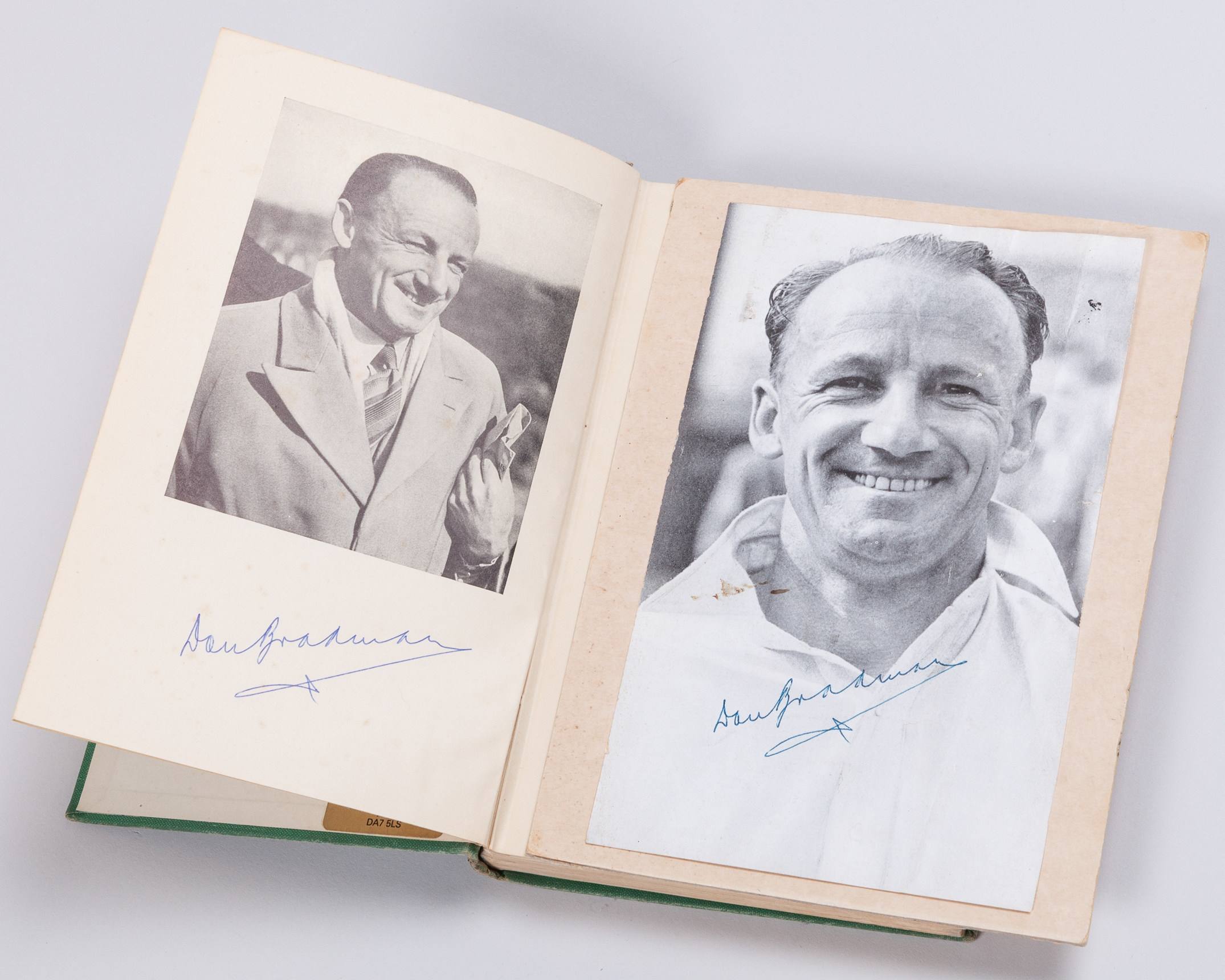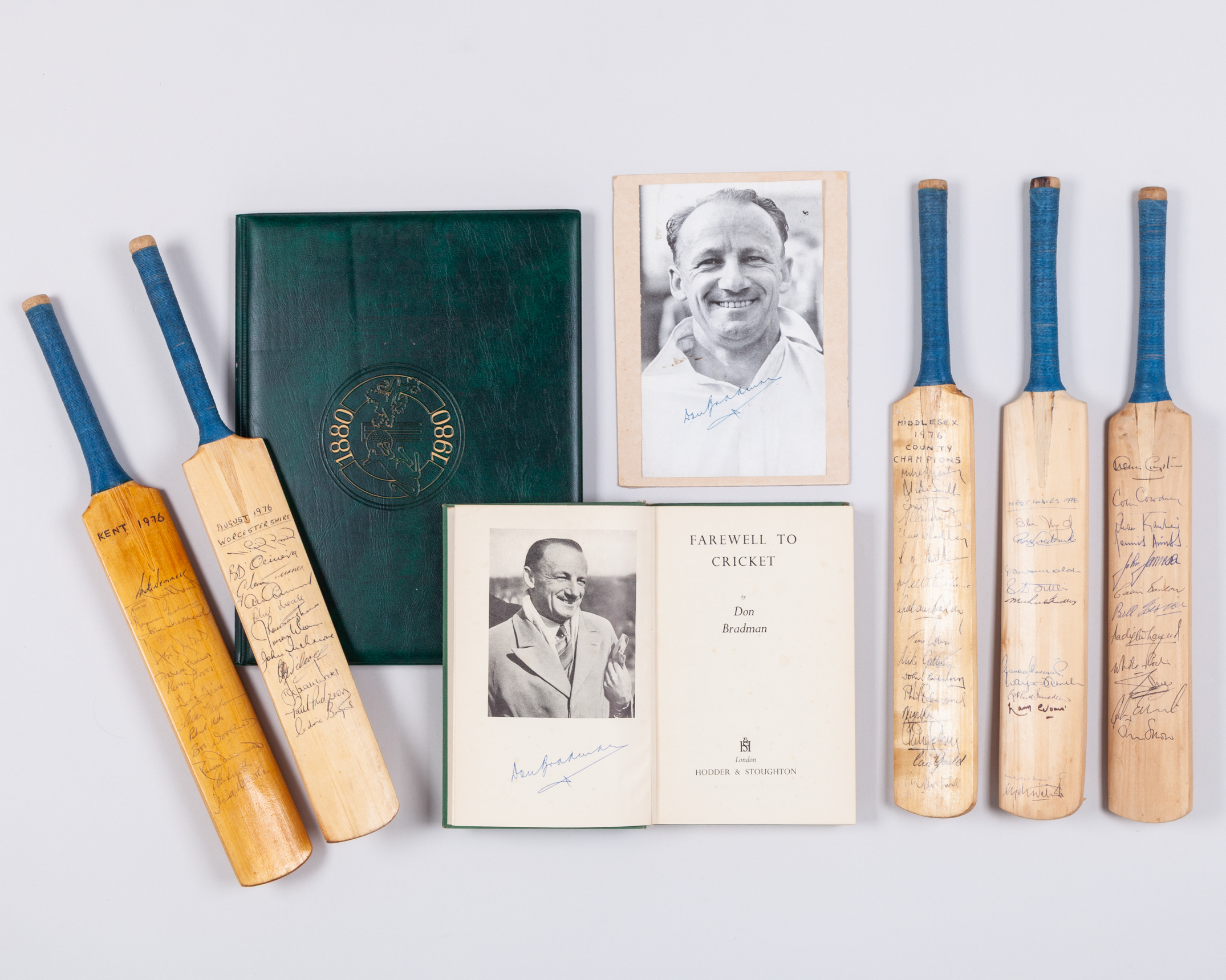 A Don Bradman black and white signed magazine signed photograph, Farewell to Cricket by Don Bradman, autographed, May 1950, commemorative pack from the 1980 England Australia centenary test with signed photos of each team and five autographed miniature bats