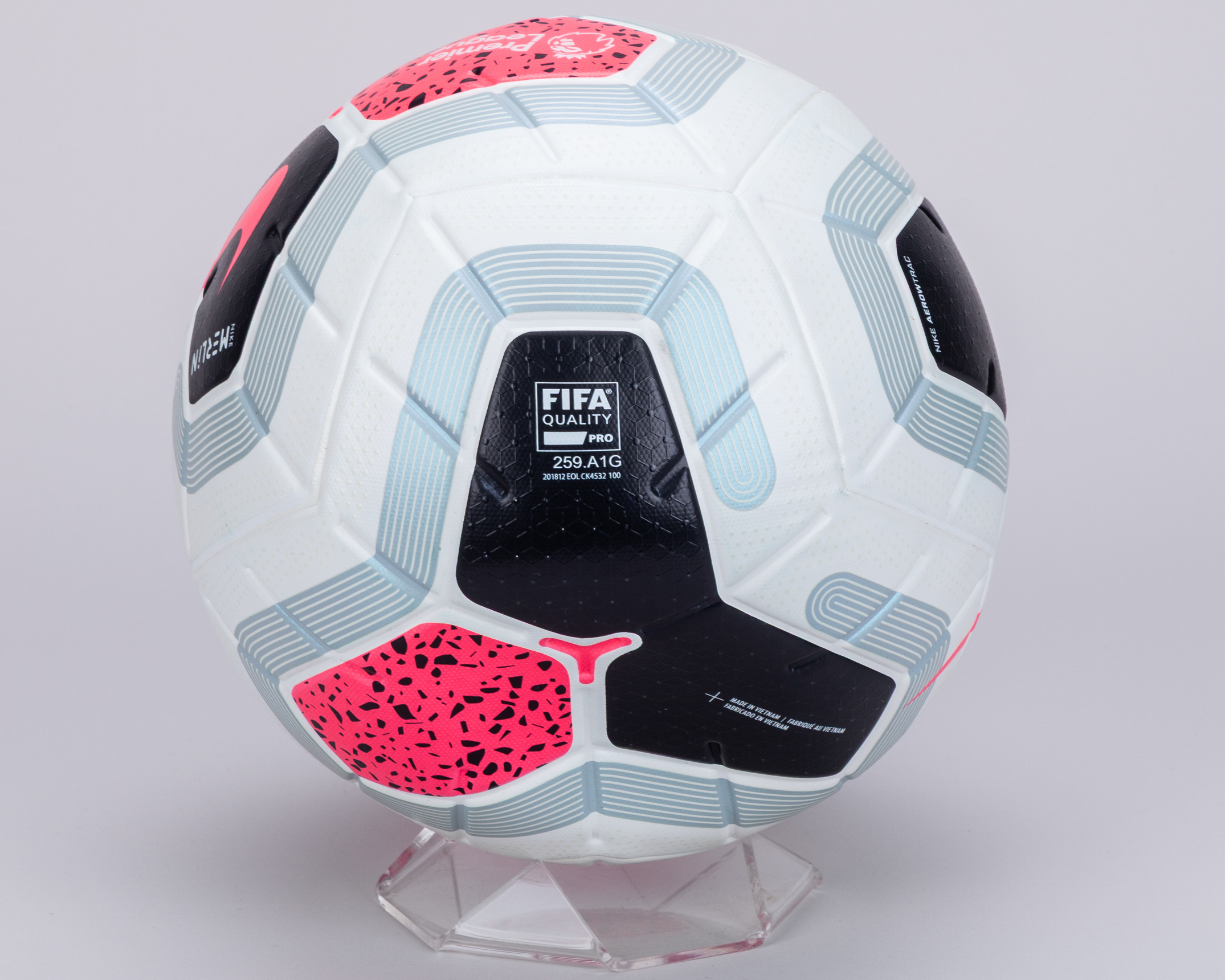 White, black and pink Nike Merlin Premier League official match ball, 2019-20