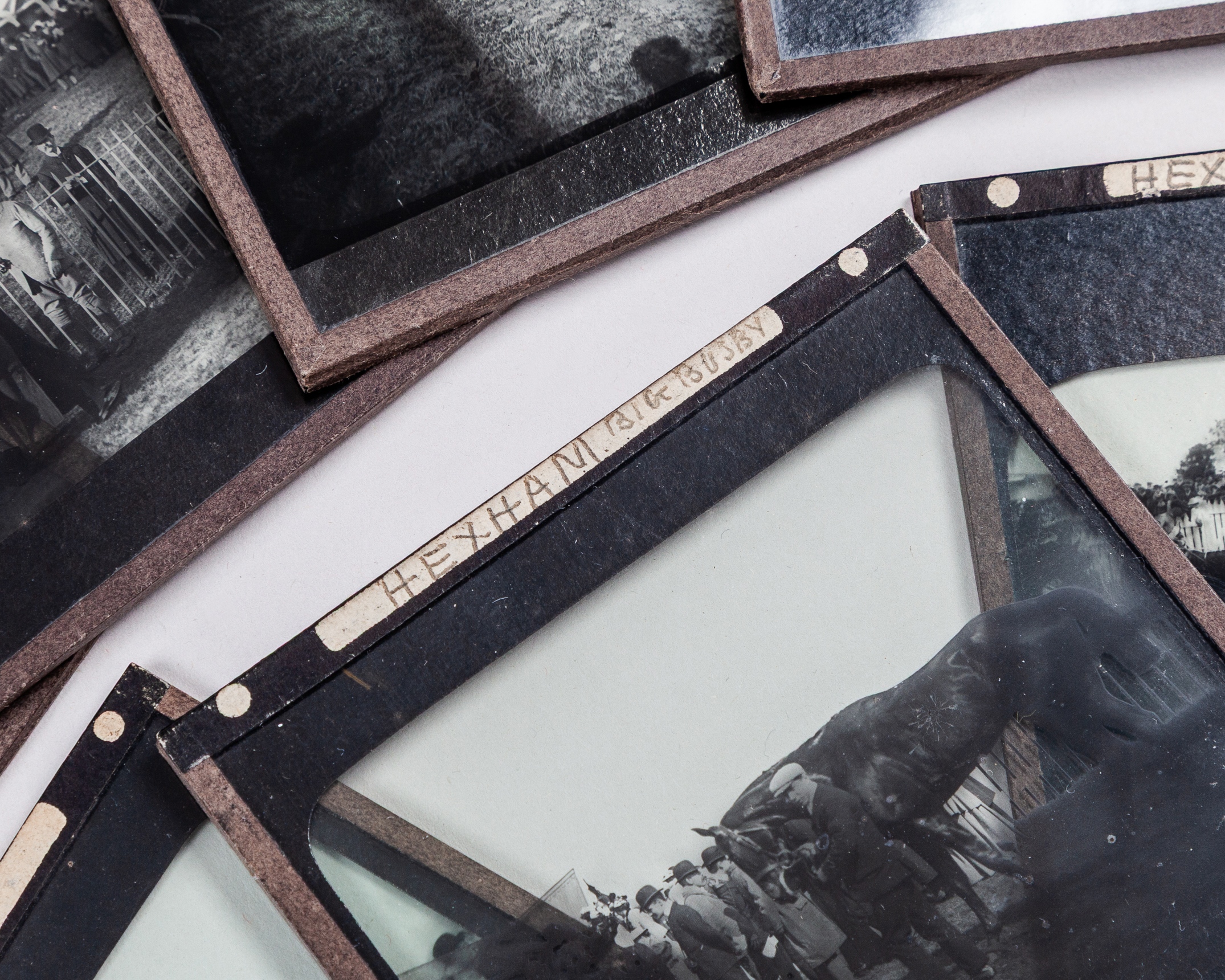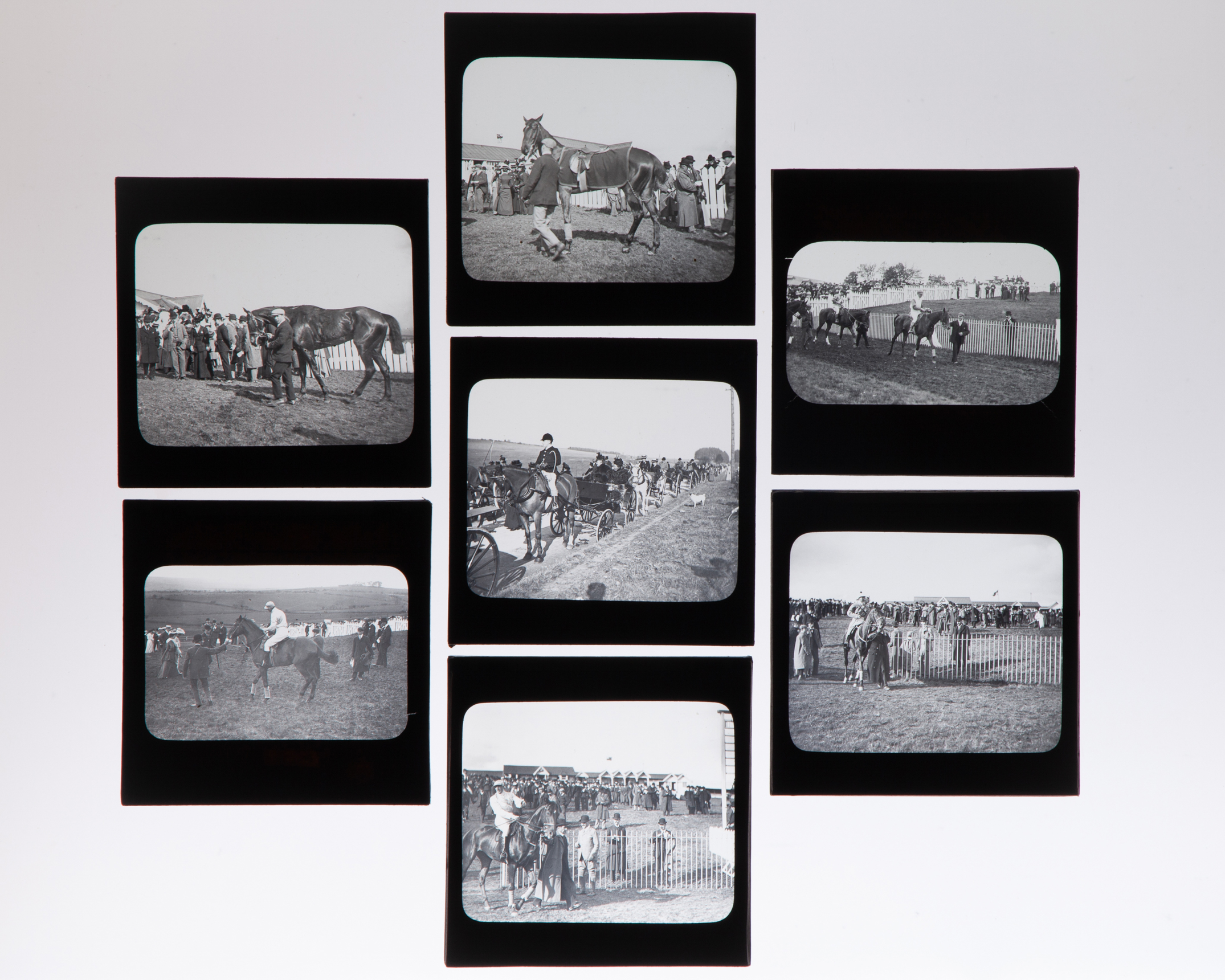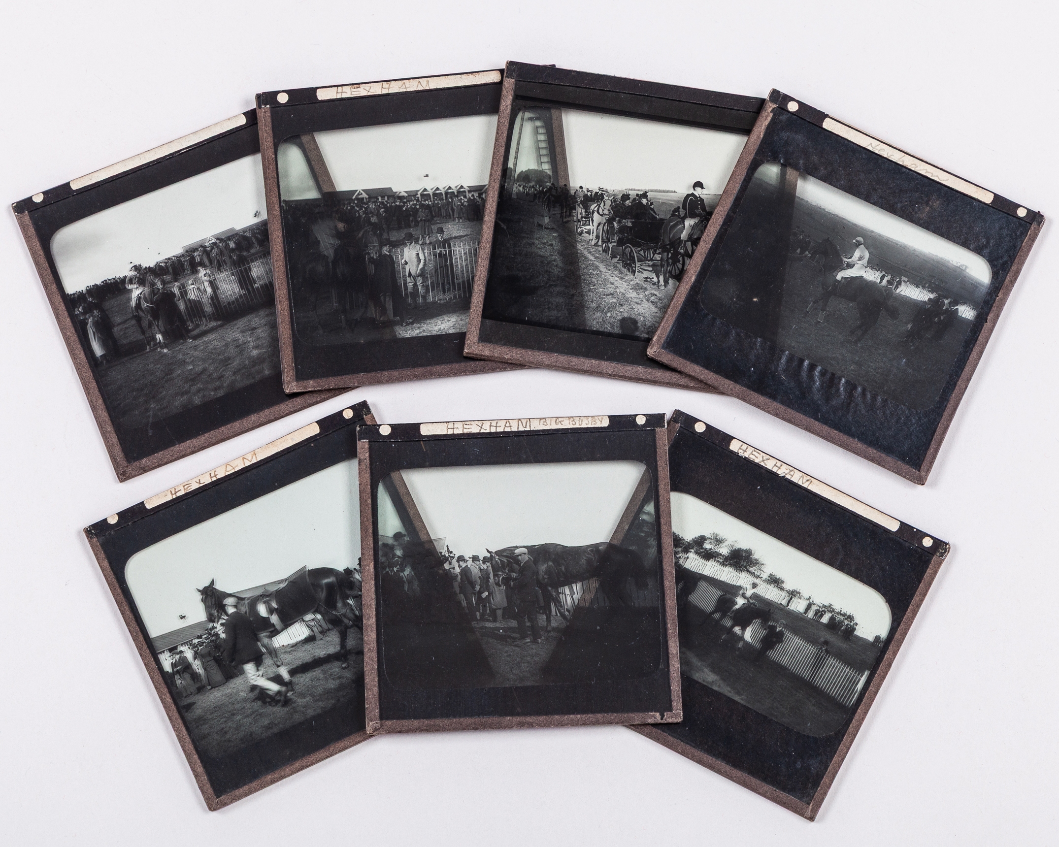 Seven equestrian Hexham Racecourse procession photographic glass slides, early 1900s