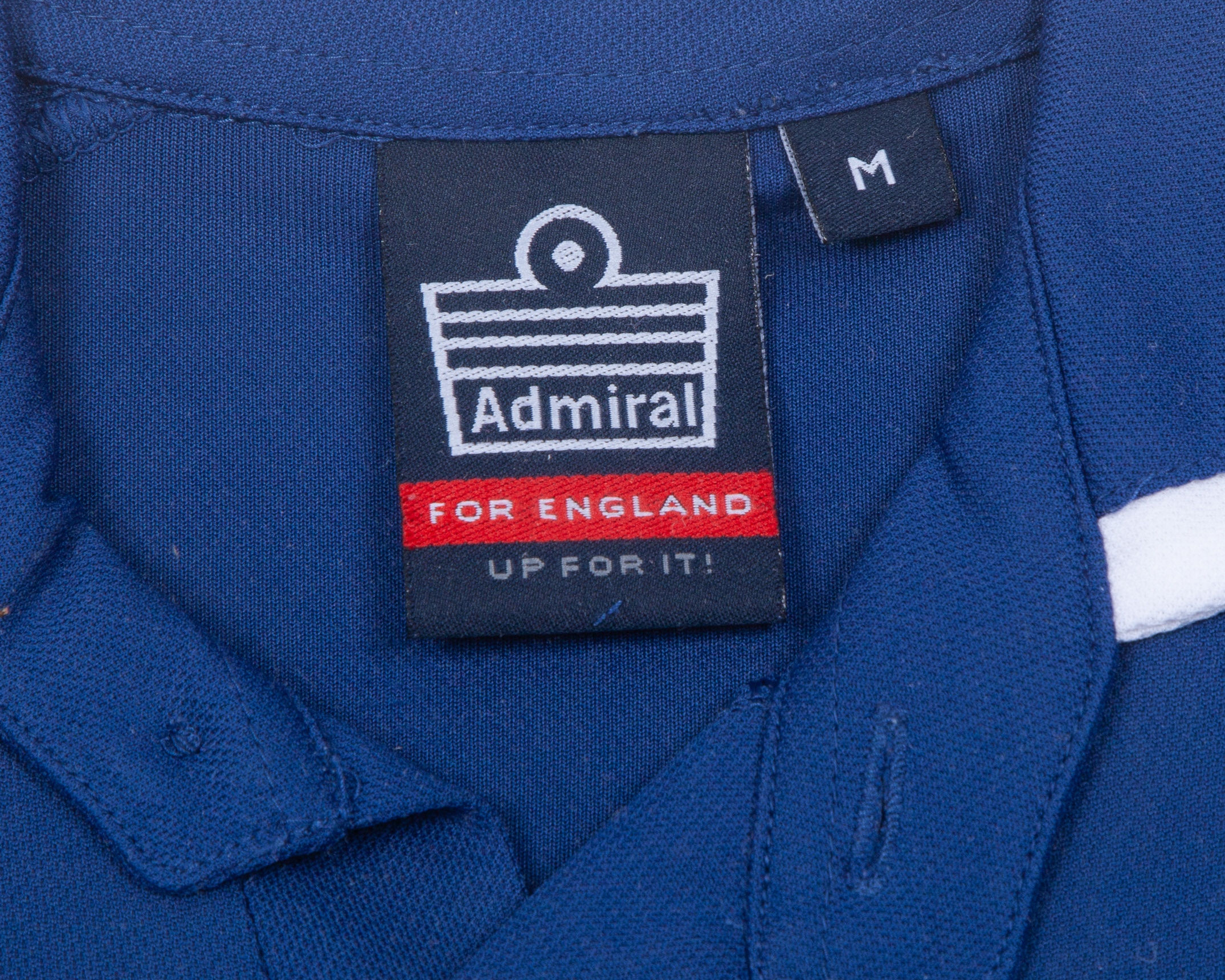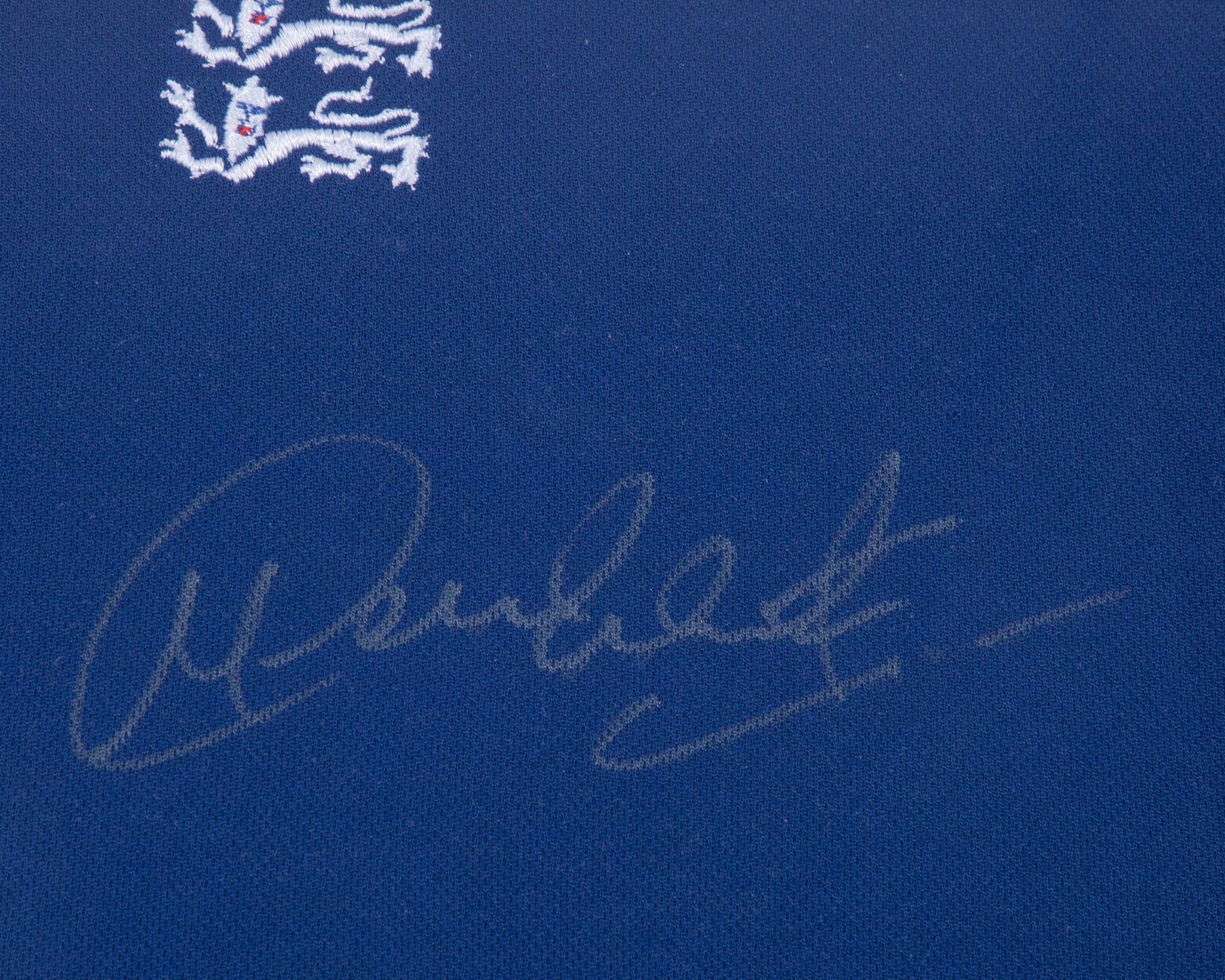 Sachin Tendulkar and Michael Vaughan autographed blue and red England cricket replica shirt, Admiral, M, with button-up collar and embroidered badge, framed and glazed, with COA in the frame, 69 x 99cm