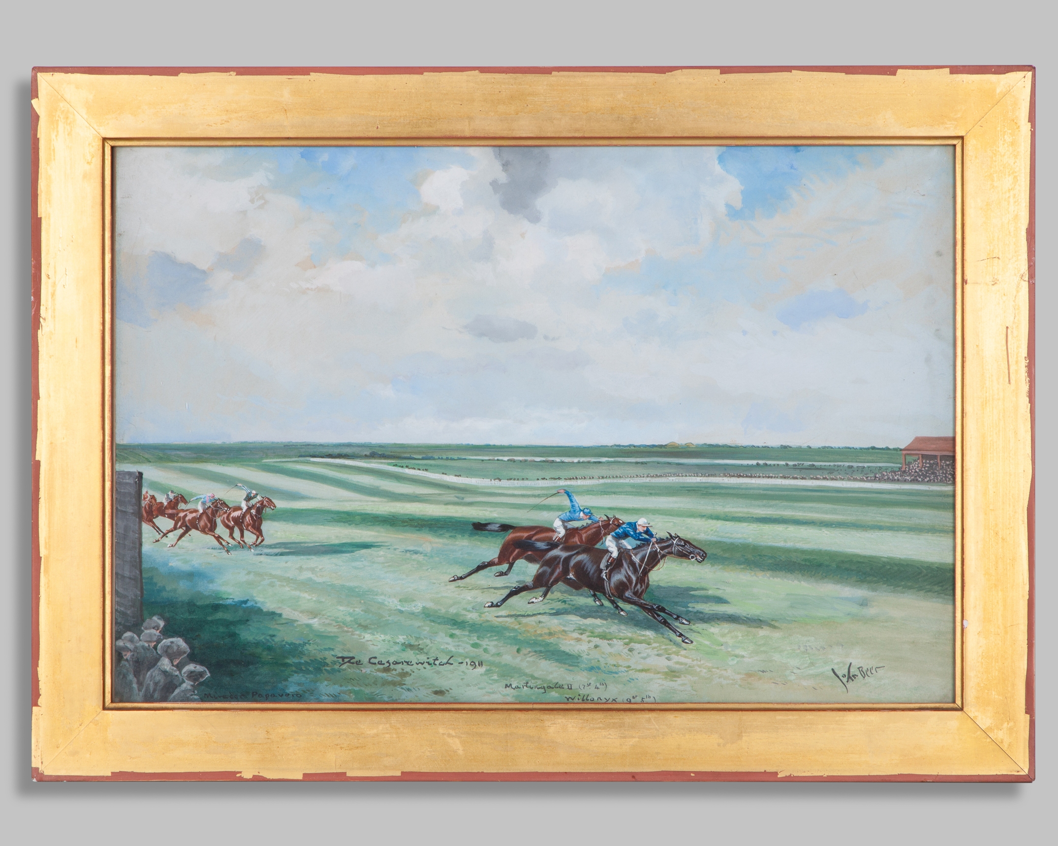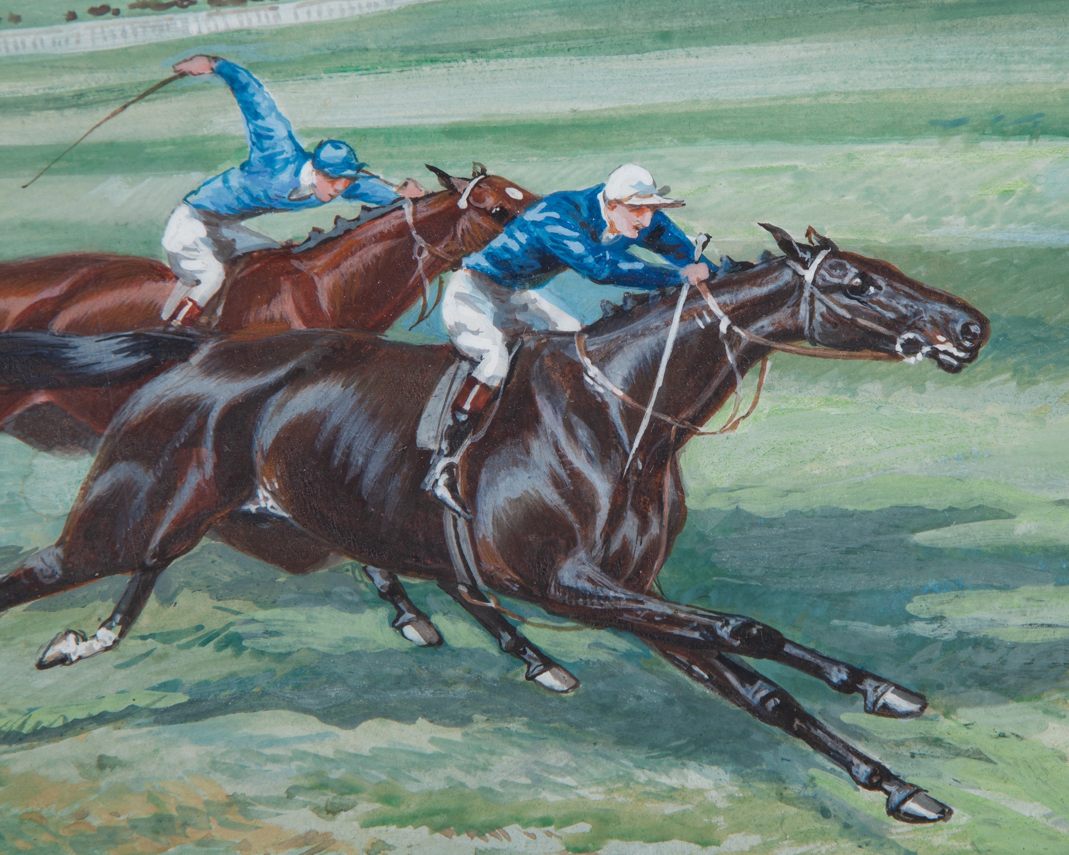 John Beer Jnr (British, 1883-1915) watercolour of the 1911 Cesarewitch at Newmarket