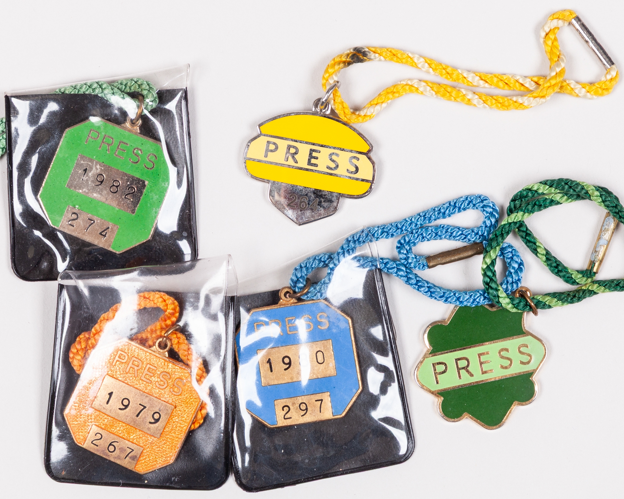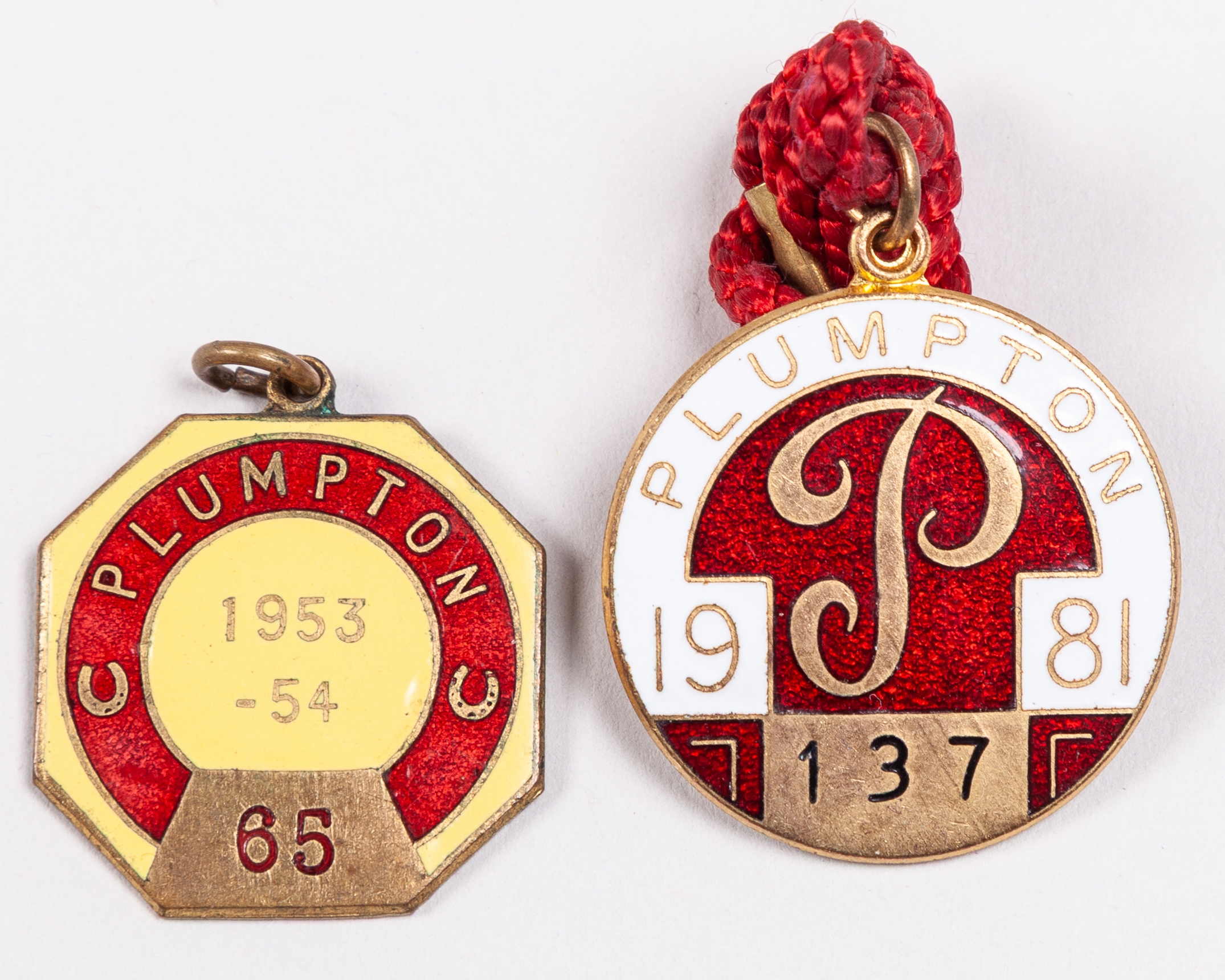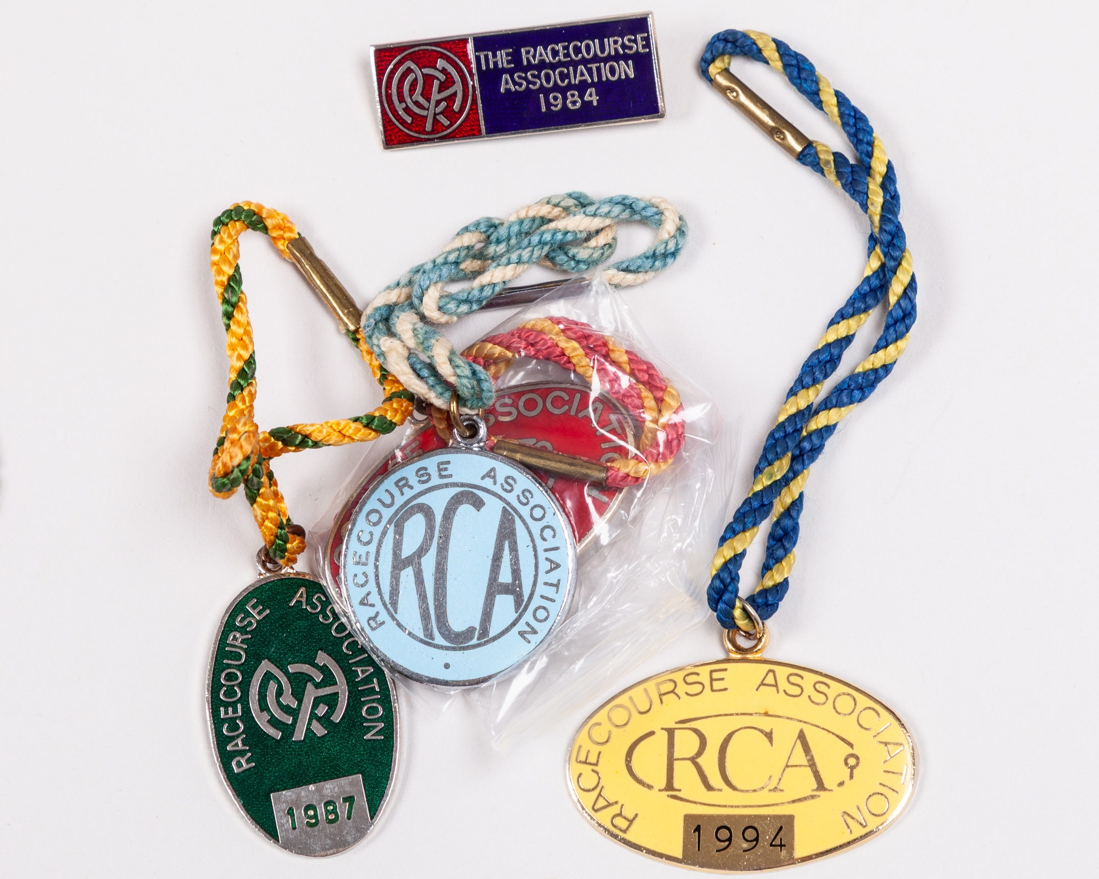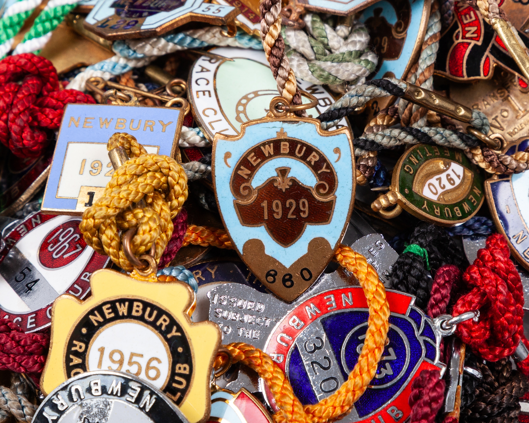 comprising: three badges for the defunct Northolt Park Racecourse, 1936, 1938 & 1939 and a cardboard member's car park badge for 1939; Lingfield Park 1895 and another for 1982-83; a large selection for Newbury 1905, 1907, 1908 (x2), 1909, 1912, 1914, 1915, 1919, 1920, 1922, 1923 (x 2), 1926, 1927 (x2), 1929 (x3), 1930, 1931, 1932 (x3), 1933, 1934 (x3), 1936, 1937, 1938, 1939 (x2), 1940 (x2), 1949 (x4), 1951, 1952, 1953, 1954, 1955 (x3), 1956, 1957 (numbered pair), 1958 (x3 including a numbered pair), 1959 (x2), 1960 (x2), 1961, 1962 (x3), 1963 (x2), 1964 (x2), 1965 (x3), 1966 (x2, one boxed), 1967 (x6), 1968 x 3, 1969, 1970, 1971 (x3 including a numbered pair), 1972 (x2), 1973, 1974, 1975 (x2), 1976 (x3 including a numbered pair), 1977 (x2), 1978 (x2), 1979 (x2), 1980, 1981, 1982, 1983, 1984, 1985, 1986 (x3 including a numbered pair), 1987, 1988 (x2), 1990, 1991, 1992, 1993, 1994, 1995 (x2), 1996, 1997, 1998, 1999, 1999-2000, 2000 (x3 including a numbered pair), 2000-01 (numbered pair), 2001 (x4 two numbered pairs), 2003, 2003-04, 2004, 2006 (x3), 2007 (x3), 2008 (x3), 2009, 2010 (x2), 2011 (x2), and 2012 (x2), plus two 1905-2005 badges, and one undated badge; Plumpton for 1947-48, 1949-50, 1950-51, 1953-54, 1954-55, 1959-60, 1963-64, 1965-66 (x2), 1966-67 (x2), 1967-68, 1968-69, 1969-70, 1970-71, 1971-72, 1972-73 (x2), 1973-74, 1974-75, 1975-76, 1976-77, 1977-78, 1979 (x2), 1981, 1982, 1983, 1984, 1985, 1986, 1987, 1988, 1989, 1990, 1991, 1992, 1993, 1994, 1997, 1998, 1999, 2000 (x2), 2001, 2004 (x2), 2005 & 2007; Newton Abbot for 1984, 1985, 1986, 1987, 1988, 1989, 1990, 1991, 1992, 1993 (x2), 1994, 1995, 1996, 1997, 1998, 1999 (x2), 2000 (x2). 2001, 2002, 2003, 2004, 2005, 2006, 2007, 2008, 2010, 2012, 2013 & 2016, plus three Shareholders badge; and 13 other badges for RCA, Press and United Racecourses dating between 1979 and 2017