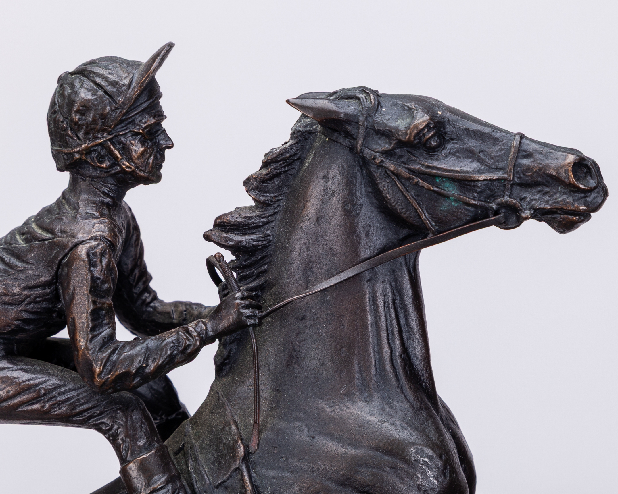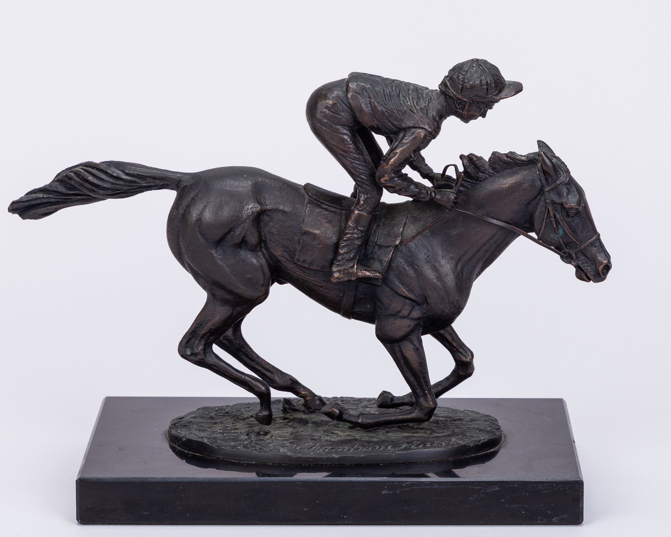 David Cornell bronze of a racehorse & jockey titled Champion Finish,