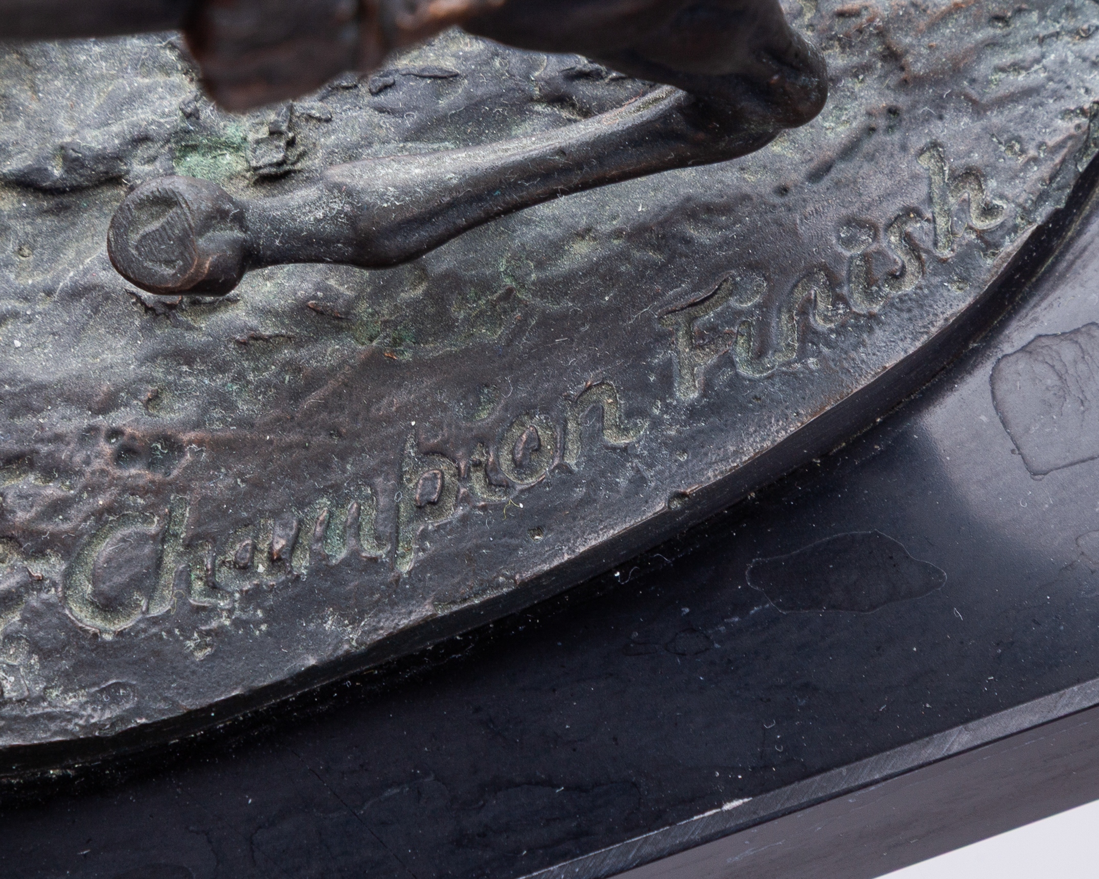 David Cornell bronze of a racehorse & jockey titled Champion Finish