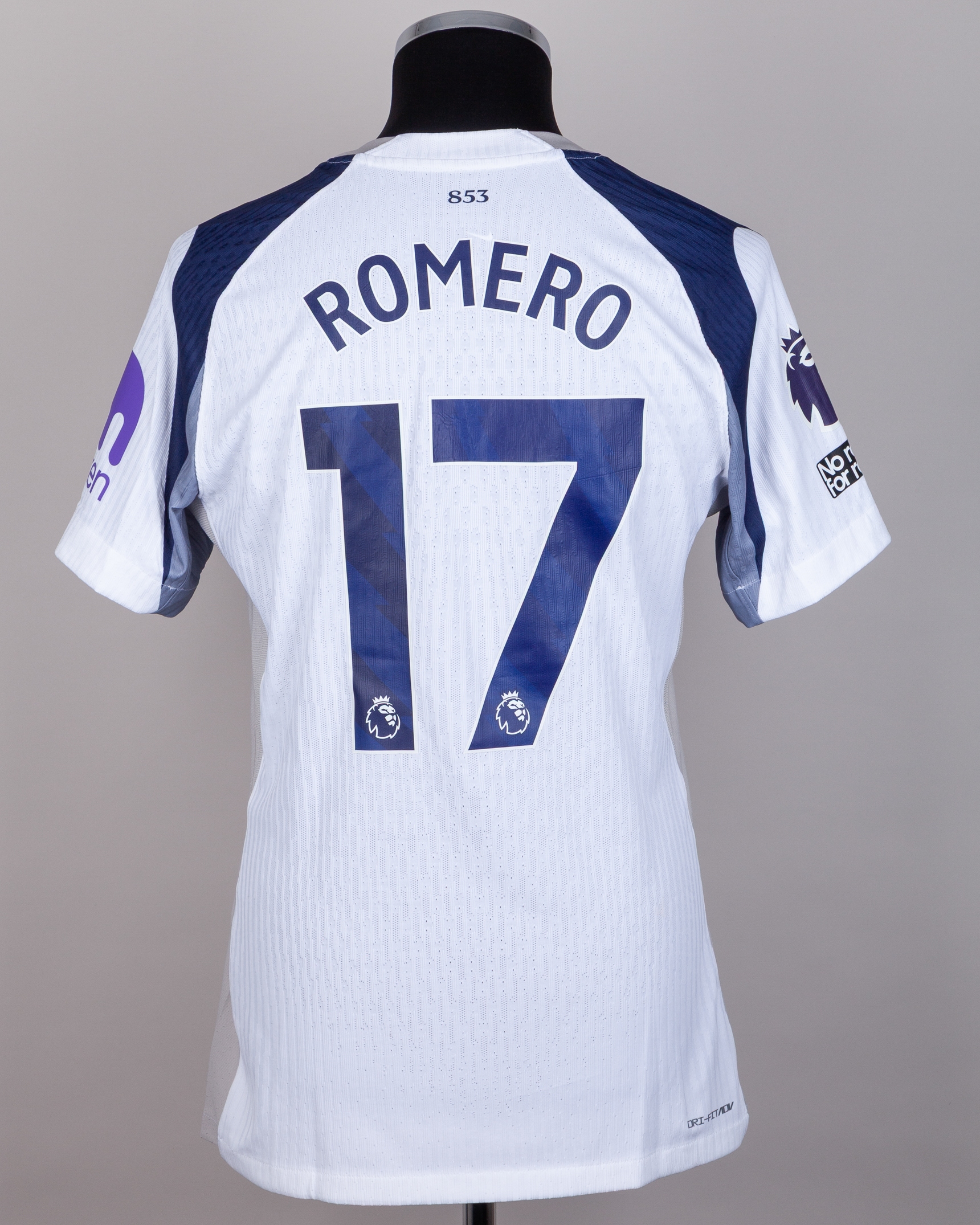 Cristian Romero white and blue No.17 Tottenham Hotspur match issued short-sleeved shirt