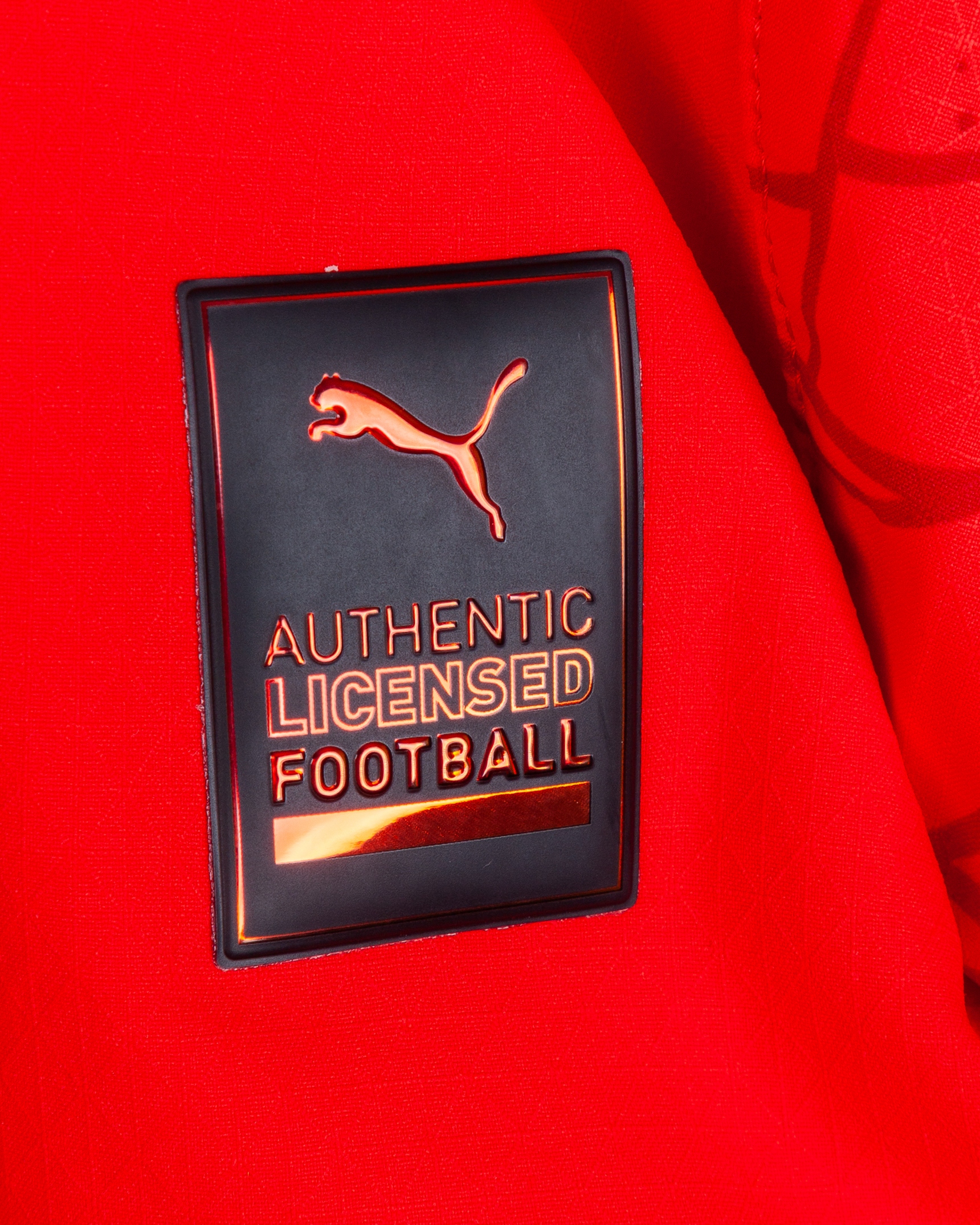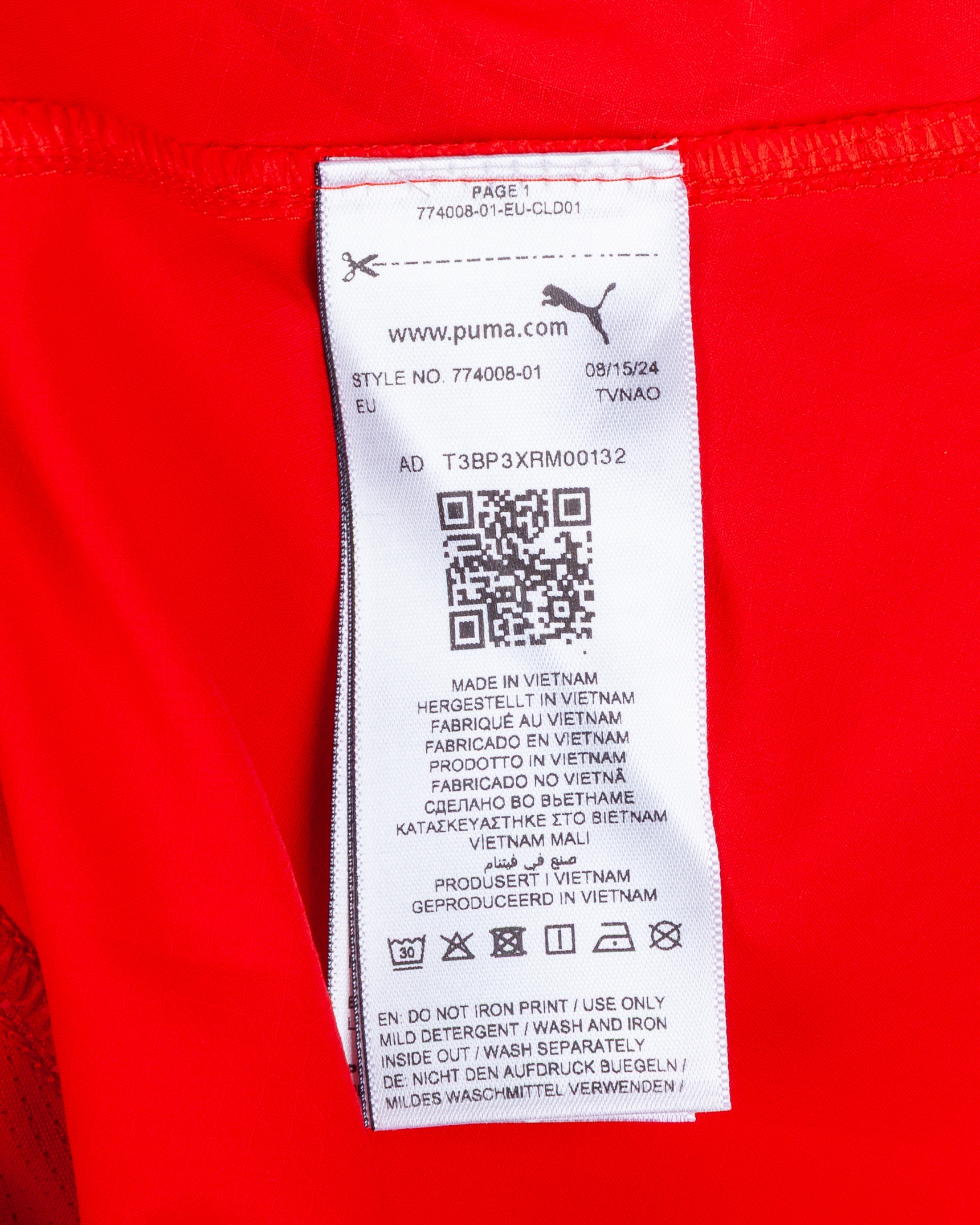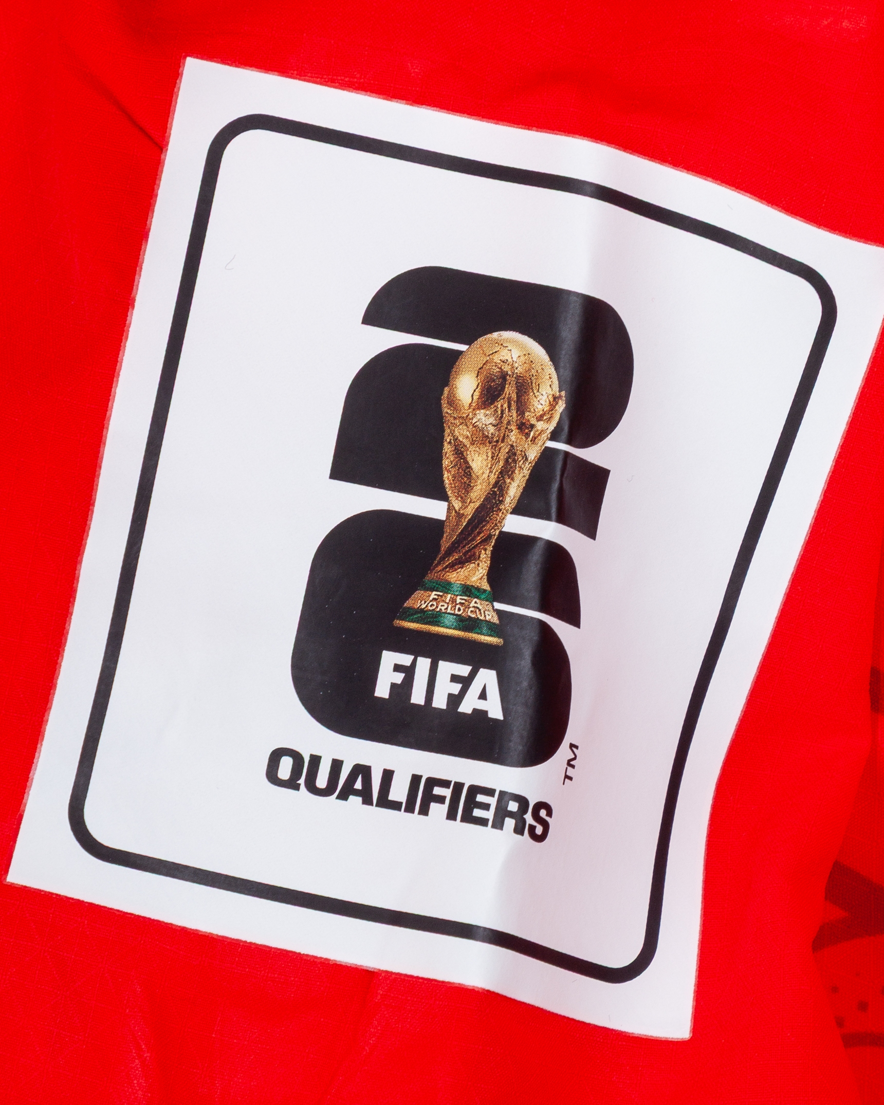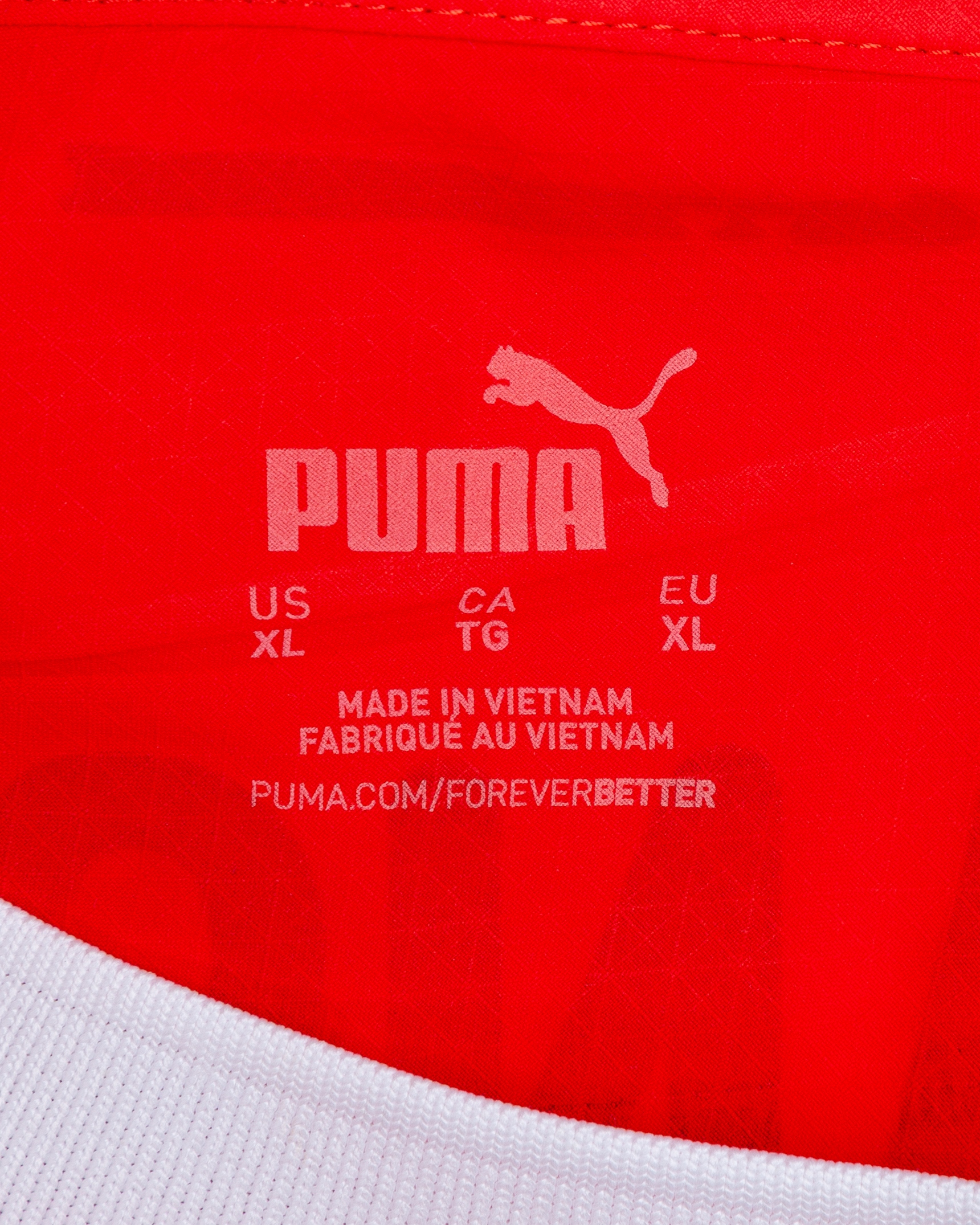 Kevin Danso red and white No.3 Austria short-sleeved shirt, 2024, Puma, size XL, with country emblem, FIFA QUALIFIERS and UEFA sleeve badges, reverse lettered DANSO