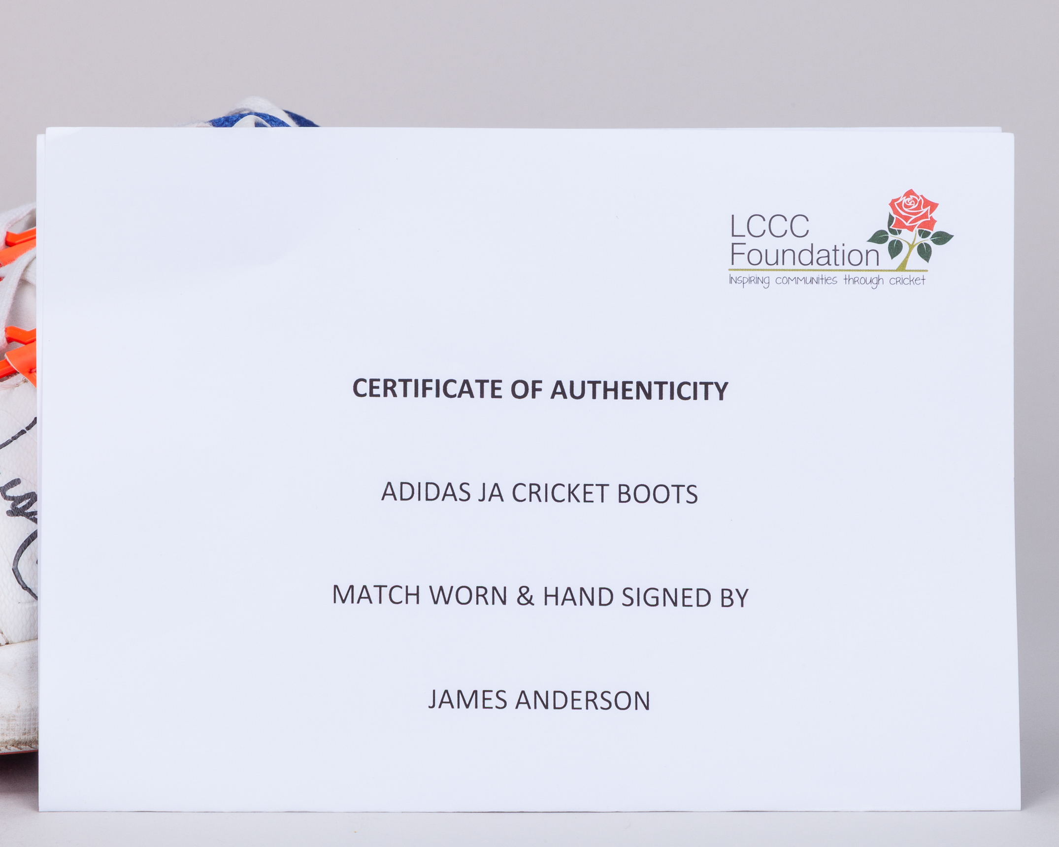 James Anderson Adidas Adipower Lancashire County Cricket match worn autographed spikes